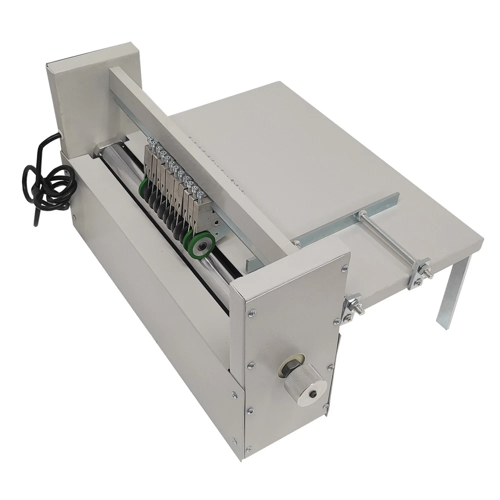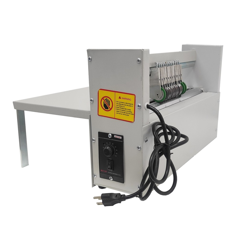 400mm Sticker Half Cutting Machine The sticker half cutting machine can be used for linearly cutting the surface layer of sticker products or cutting the sticker products into strips, and can also be used for dotting paper sheets. Stepless speed change can be conducted as required in the cutting process, the maximum feed paper width is 400mm, and the blade interval can be randomly adjusted within the width range. The machine is easy to install and operate, convenient to use and high in user experience and is widely suitable for printing adhesive roll cutting, sticker cutting, ordianary paper cutting and so on. Product Parameters Model: WD-400H Maximum Cutting Width: 400mm (15.75'') Minimum Cutting Blade Interval: 10mm (0.39'') Motor Power: 120W Voltage: 110V Rotating Speed: 50-280R/Min Blades: Dotting Blade*1, Circular Blade*8, Paper Press Wheel*3 Size: 53x37x28cm (20.87''x14.57''x11.02'') Product Features 1. The roller is subjected to thermal treatment, is not prone to deforming and is durable. 2. The tool rest bracket is processed by numerical control machining, and the stability of the tool rest bracket is ensured. 3. The circular blade rolling cutting technology is adopted, and the minimum blade interval can be 10mm. 4. One leaning ruler is arranged on the side face of the machine, the distance can be adjusted according to sheets, and it is guaranteed that cutting is orderly. 5. Three paper press wheels are arranged on the machine, can better drive the blades to work and enable the paper sheets to enter orderly. 6. The speed of the roller can be adjusted, the cutting speed can be adjusted as required, and operation is easy. 7. The machine is equipped with eight circular blades and one dotting blade, and the blades can be adjusted downwards or upwards by a wrench as needed. The roller is processed by thermal treatment, is not prone to deforming and is durable and long in service life. The speed of the roller can be adjusted, the cutting speed can be adjusted as required, and the machine is easy to operate and convenient to use. The tool rest bracket is processed by numerical control machining, the stability of the bracket is improved, the durability is improved, and the usage performance is improved. The circular blade rolling cutting technology is used, the minimum blade interval can be 10mm, the blade interval can be randomly adjusted as needed, the practicability is improved, and the user experience is improved. The leaning ruler is designed on the side face of the supporting platform, the distance can be easily adjusted according to the size of paper sheets, it is guaranteed that cutting is orderly and neatly, and the working efficiency is improved. The machine is equipped with three paper press wheels, eight circular blades and one dotting blade, the blades can be adjusted downwards or upwards by a wrench as needed, the three paper press wheels can well drive the paper sheets to enter, cutting operation can be smoothly conducted, and sticker strips which are required by the user can be easily obtained. Operation Methods 1. The 110V socket is selected, the machine is connected to the socket, the cutting speed is set, and the machine is started. 2. The sticker to be cut is pushed to the roller, and the positions and the heights of the blades are adjusted by the wrench until the quality requirements are met. When the blades are adjusted, a piece of paper can be placed below the blades, the blades are prevented from making contact with the roller, and the roller can be protected. Notes 1. The tool rest is fastened on the hexagonal rod, the screwing force needs to be proper when the blades are adjusted, and the tool rest can be damaged by excessive force. 2. The rubber wheels are installed on the left side and the right side and drive the paper to enter. 3. The cover plate on the left side needs to be opened every three months, and the tightness of the belt needs to be checked. Item Number (026059): 1 x 400mm Sticker Half Cutting Machine You can make order with no worry. Any concern just feel free to let us know, we'll reply in 24 hours in normal condition. Handling Time: Shipping is usually made in 1-3 business days after payments cleared. Orders are processed from Monday-Friday; Not on the weekends & public holidays. Warranty: 6 months' warranty for the machines, not for the consumables. We stand behind our products all the item, so even if your warranty period has expired, you can still seek for service or technical support from us with low cost. Shipping & Handling Details Default Shipping Cost or Free Shipping Information: ▲ Default shipping cost or free shipping service is only for the lower 48 United States by UPS Ground or USPS. Other areas or needs other shipping ways, please contact us. ▲ Buyers from Guam, Puerto Rico, Virgin Islands, American Samoa, Alaska, Hawaii, PO Boxes, APO/FPO addresses or other countries/areas, there WILL be extra shipping costs, please contact us for more detailed information. ▲ Please make sure your address is valid for both UPS and USPS services. Any costs incurred because of incorrect or undeliverable address should be undertaken by buyer. Handling Time: Shipping is usually made in 1-3 business days after payments cleared. Orders are processed from Monday-Friday; Not on the weekends & public holidays. Sales tax / Customs duties: Any sales taxes or Customs duties are not included. If came out, they must be undertaken by the buyer. Sales Tax of 8% will be applied for orders shipped within the state of California. Damage In Shipping: Email or call us First! We will work with you to get the case resolved in the fastest method. Return / Refund If you are not 100% happy with your purchase, please contact Us. Please don't directly opened a request or case without informing us, or else, we will do some discounts on the warranty and other sales-services later on. Hope for your understanding. Returns & Exchanges ▲ All returns must be made within 14