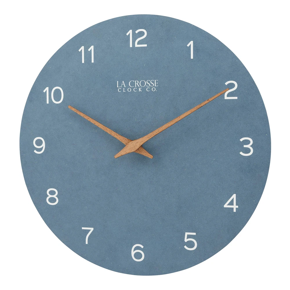 Introduce serene sophistication to your space with the Technology 12" Tahoe Quartz Analog Wall Clock (404-3630A), a stunning timepiece that perfectly balances modern design with natural elements. The distinctive wall clock combines contemporary style with versatile appeal that enhances any room's décor. The dusty blue design features a unique paper dial that creates a soft, matte finish reminiscent of lakehouse charm. The blue-gray palette provides a calming presence while maintaining sophisticated appeal, while natural wooden hour and minute hands add organic warmth to the contemporary color scheme. The open-face construction eliminates glare and reflection for optimal visibility from any angle, while precise quartz movement offers a soft ticking sound that provides a gentle reminder of time's passage. This elegant timepiece combines the grandeur of a grandfather clock with modern simplicity, working beautifully in both traditional and contemporary settings. Perfect for homes, offices, or any space deserving of sophisticated style, the Tahoe blue clock operates on a single AA alkaline battery (not included) for convenient, cordless operation. Elevate your space with this sophisticated wall clock 12 inch featuring a serene dusty blue wall clock design. The Tahoe blue clock combines eco-friendly materials with modern style, showcasing a recycled paper dial with crisp white numerals and natural wooden hands that create a perfect balance of contemporary and rustic elements. Experience the perfect blend of style and function with this gray blue wall clock that brings lakehouse charm to any room. This modern wall clock features an open-face design that eliminates glare and reflection, ensuring clear visibility from any angle while maintaining its sophisticated blue faux leather analog wall clock appearance. Transform your space with this analog wall clock blue design that perfectly captures coastal elegance. The wall clock wood hands add natural warmth against the soft matte blue-gray face, creating a timepiece that serves as both a reliable chronometer and a stunning piece of wall art. Discover timeless style with this blue and gray wall clock featuring precise quartz movement with a gentle ticking sound. The wall clock dusty blue design creates a calming presence in any room, while the eco-conscious recycled paper dial demonstrates a commitment to sustainable materials. Perfect for any room requiring sophisticated style, this grandfather wall clock inspired piece combines traditional elements with contemporary design. The 12-inch diameter provides ideal visibility while the battery-operated mechanism (requires 1 AA alkaline battery, not included) ensures convenient, cordless operation.