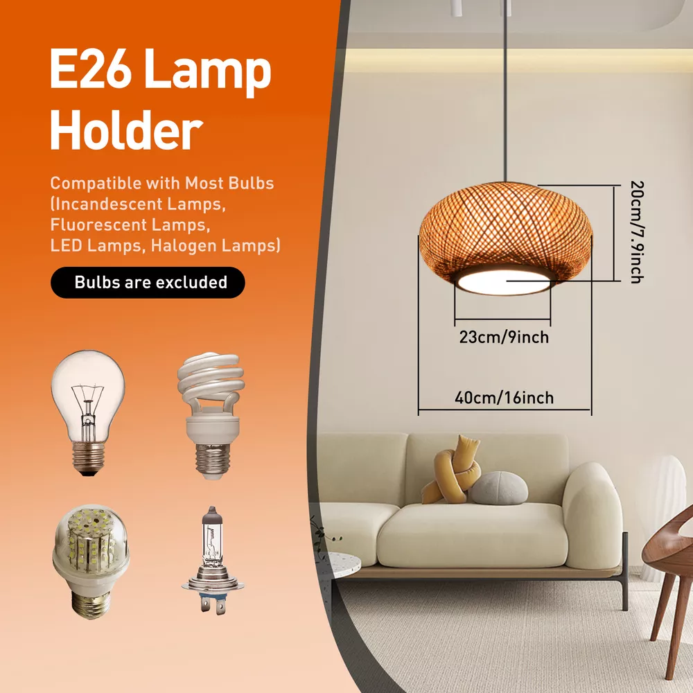 Product description: ★This is a healthy and natural artistic bamboo art lighting that we carefully create. It is easy to install, convenient and suitable for many places. ★Hand-woven bamboo, fresh materials, combined with exquisite weaving skills, perfectly reflect the toughness and natural texture of bamboo. ★Chinese style bamboo lamp, its ancient charm is natural and elegant, and the spiritual purity brought by natural bamboo lamp makes the corridor simple and pure without losing the elegance. ★With creative methods, rattan lamps and lanterns are simple and natural, but also full of modern flavor and fashionable charm. Feel the gifts of nature and experience a comfortable life. ★Suitable for corridors, living rooms, shopping malls, hotels, etc. Features: Category: Pendant Styl 40/60cm Rustic Bamboo Wicker Lampshade Rattan Pendant Light Hanging Lamp Fixture Product Description: ★This Is a Healthy and Natural Artistic Bamboo Art Lighting That We Carefully Create. It Is Easy to Install, Convenient and Suitable for Many Places. ★Hand-woven Bamboo, Fresh Materials, Combined with Exquisite Weaving Skills, Perfectly Reflect the Toughness and Natural Texture of Bamboo. ★Chinese Style Bamboo Lamp, Its Ancient Charm Is Natural and Elegant, and the Spiritual Purity Brought by Natural Bamboo Lamp Makes the Corridor Simple and Pure Without Losing the Elegance. ★with Creative Methods, Rattan Lamps and Lanterns Are Simple and Natural, but Also Full of Modern Flavor and Fashionable Charm. Feel the Gifts of Nature and Experience a Comfortable Life. ★Suitable for Corridors, Living Rooms, Shopping Malls, Hotels, Etc. Features: Category: Pendant Style: Country/Chalet Light Direction: Downlight Special Shape: Cage Type Lamp Base: E26 / E27 Whether to Include Bulbs: Not Including Bulbs Bulb Type: Led/Incandescent/Fluorescent Chain/Cord Adjustable or Not: Chain/Cord Adjustable (1m) Lamp Width: 16"(40cm), 23.5"(60cm) Number of Lights: 1 Light Power per Bulb: 40w The Package Includes: 1x Pendant Bamboo Lamp ( Not Including Bulb ) Payment Delivery details Terms of sales About us Contact us Payment We accept ebay payment 。 Fees such as import duties, taxes are not included in the item price or shipping costs. These charges are the buyer's responsibility. Delivery details Shipping: 2-9 working days to: USA Terms of sales We maintain high standards of excellence and strive for hundred percent customer satisfaction. Feedback is very important to us. We hope that you contact us immediately before you give neutral or negative feedback, so that we can address your concerns. It is impossible to address issues if we do not know about them! About us Your satis faction is our ultimate goal. We work hard to earn your trust and future business. Our certified technicians have tested each item before shipping. The unit comes with 1 year limited warranty on all manufacturing defects. a) If you receive a defective item, you may return it or ask for a discount. Please contact us within 14 days after you receive the package. b) What you returned must be intact and in its original packaging as re? u. Customer is responsible for shipping costs of the returned item. c) We will cover the cost of shipping back t with the shipping rate indicated in the registration page. We will send you a new unit or refund the full payment you paid. Thank you. Contact us Business Hour Business Hour: Monday To Friday: 8:30 AM to 5:00 PM (Beijing China time) Due to time zones, our reply to your questions may not be immediately. But within above working time, we will reply your email within 24 hours. If it's non-workdays, please kindly be patient and wait till Monday. Please contact us with ebay message. Please feel free to contact us if you have any questions. Monday To Friday: 8:30 AM to 5:00 PM (Beijing China time) Due to time zones, our reply to your questions may not be immediately. But within above working time, we will reply your email within 24 hours. If it's non-workdays, please kindly be patient and wait till Monday. Please contact us with ebay message. Please feel free to contact us if you have any questions. Item location CA /NJ /Austell Shipping Notice Cann't ship to Puerto Rico, Alaska/Hawaii Brand Unbranded Type as description Color as description Material Bamboo Room Bedroom, Dining Room, Kitchen, Living Room Number of Settings Ceiling Fixtures Light Color Ceiling Fixtures Power Source Ceiling Fixtures MPN Does not apply Installation Area Indoor Department Adult Control Style Ceiling Fixtures Sensor Type Ceiling Fixtures Cord Color Ceiling Fixtures Manufacturer Ceiling Fixtures Theme Ceiling Fixtures Style Modern LED String/Strip Type WS2812 Features Ceiling Fixtures Shade Shape Ceiling Fixtures Finish Ceiling Fixtures Lighting Technology Ceiling Fixtures Light direction downlight Special shape cage type Lamp base E26 / E27 Whether to include bulbs not including bulbs Bulb Type LED/Incandescent/Fluorescent Chain/cord adjustable or not chain/cord adjustable (1m) Lamp width 16"(40CM), 23.5"(60CM) Power per bulb 40W Energy Star A EC Range A - G