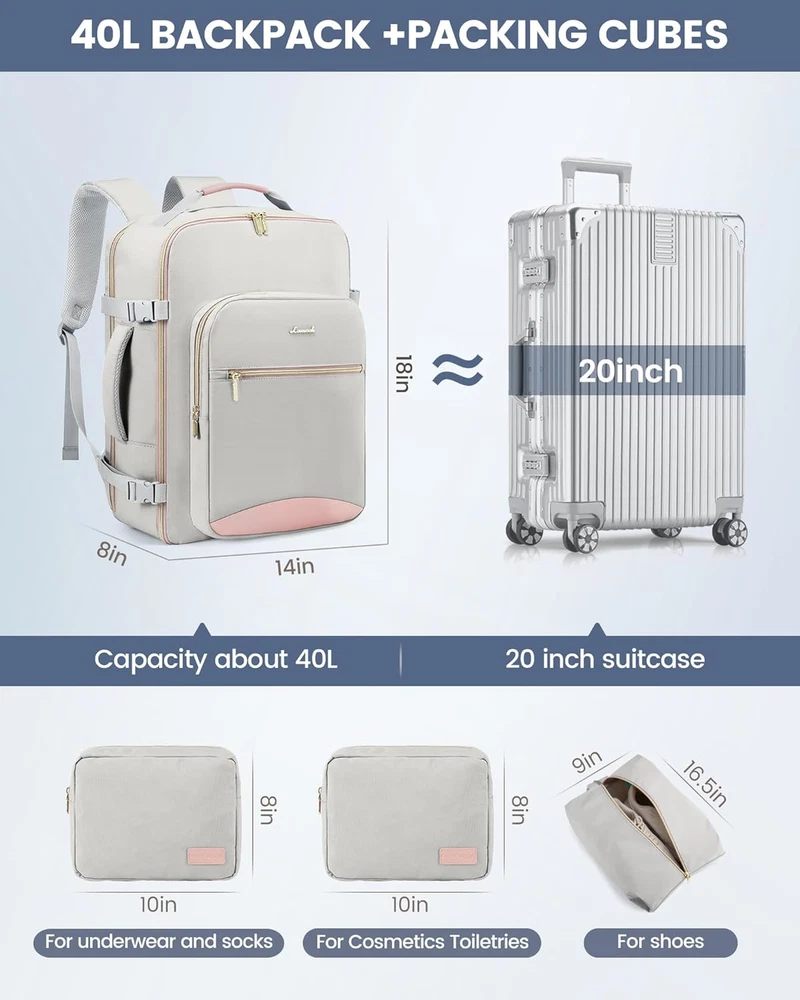 This backpack is a game-changer for travelers! The 40L capacity fits everything I need, and the waterproof material keeps my 17in laptop and essentials safe. Love the included packing cubes—so organized! Flight-approved and super comfortable to carry. Shipping was lightning-fast, and the customer support team was incredibly helpful. Highly recommend for hassle-free trips! Satisfaction guaranteed, and it absolutely delivers. Worth every penny!