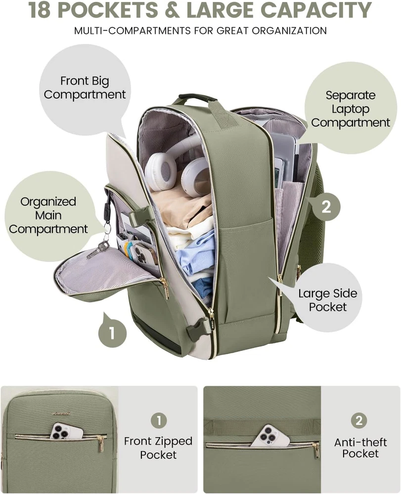 Fast Shipping Great Customer Support Satisfaction Guaranteed DESCRIPTION Shipping Shipping Shipping All domestic packages are shipped for Free (Unless other shipping method was selected during the checkout) Most items ship and arrive much sooner than the estimate delivery date. Usually within 2-3 days from payment. However, we have longer estimates to compensate for the occasional delay or supply chain breakdown. We do not accept P.O. BOXES - PLEASE PROVIDE A PHYSICAL ADDRESS Return Return Return In the event that you would like to return your purchase, we allow returns that are processed within the defined return date (the return date is to be found in the return policy/shipping and handling section) Please contact us for a return authorization and the return shipping address. Payment Payment Payment PayPal is our preferred method of payments it's the quickest, easiest and most secure way to pay for your goods or services online. PayPal offers buyer and seller protection should there be a problem. If you do not have a PayPal account, to get started and buy your first item with us is very easy. Simply click on the 'Buy It Now' button and follow the eBay checkout steps. Select PayPal as the payment method you then will be given the chance to enter your card details in to PayPal's secure checkout in order to pay for your order. Once the payment has been made, you will then be given the opportunity to make your own PayPal account to make paying for your items in the future very easy. Should there be a problem with payment please do let us know. Feedback Feedback Feedback Customer satisfaction is very important to us. If you have any problem with your order,please contact us and we will do our best to make you satisfied, please do not leave a negative feedback before we resolve your problem. We guarantee that your issue will be solved quickly. As long as you are happy with your purchase of , please leave us a positive feedback. Your feedback is very important to us it affects our search placement on eBay. We will leave a positive feedback for you in return automatically once we receive your feedback. Contact Us Contact Us Contact Us If you have any queries, please contact us via ebay. We usually respond within 24 hours on weekdays. Thank you for visiting our ebay store! 【Airline Approved & Convenient】Our carry on backpack measures 18*14*8 inches, meeting the requirements of budget-friendly airlines like Spirit, Frontier, and JetBlue. It easily fits under the seat or in the overhead compartment, making it the perfect personal item for air travel. 【Spacious & Organized】With a capacity of 40L, 4 compartments, and multiple pockets, this travel backpack allows you to easily separate and organize your belongings. Pack 3-7 days worth of travel essentials with ease. 【Smart Packing Features】Our carry-on bag includes 3 extra packing cubes for effortless organization, as well as a wet compartment to keep your wet clothes and toiletries separate from your dry items. Say goodbye to leaks and protect your belongings! 【Long-Lasting & Comfort】Built to withstand the rigors of travel, our carry-on backpack is made from tear-resistant, water-resistant, and abrasion-resistant materials with adjustable shoulder straps and padded back panel for comfort during long trips. 【Secure & Practical】The suitcase-style opening offers easy access to your belongings at security checkpoints, while the padded electronics compartment and side pockets provide secure storage for your items. A luggage strap on the back adds convenience for your journey. 40L Travel Backpack for Airplanes, Waterproof, Fits 17" Laptop, 3 Cubes Click here to see description Fast Shipping Great Customer Support Satisfaction Guaranteed DESCRIPTION Shipping All domestic packages are shipped for Free (Unless other shipping method was selected during the checkout) We ship within two business days of payment, usually sooner Standard FREE shipping takes between 3-5 business days Expedited shipping takes between 2-3 business days Overnight shipping takes between 1-2 business days We do not accept P.O. BOXES - PLEASE PROVIDE A PHYSICAL ADDRESS We Ship Globally using ebay's GSP, the item is sent to a logistic center in KY and shipped from there to the rest of the world. International customers are responsible for all duties and taxes Contact your local authority for questions related to the amount of duties or taxes you will be responsible for Return In the event that you would like to return your purchase, we allow returns that are processed within the defined return date (the return date is to be found in the return policy/shipping and handling section) Please contact us for a return authorization and the return shipping address. Please contact us for a Return Merchandise Authorization (RMA) number. We advise you to use a reputable carrier service when returning your goods. Please pack all returns appropriately. We ship globally Via eBay's global shipping program (GSP). Thus we don't cover returns for items shipped globally. Buyers returning such items will be refunded ONLY for the item's cost and not for the shipping. please check the Voltage information and make sure it matches the one in your country. In case it's not stated in the description, do ask us. Payment PayPal is our preferred method of payments it's the quickest, easiest and most secure way to pay for your goods or services online. PayPal offers buyer and seller protection should there be a problem. If you do not have a PayPal account, to get started and buy your first item with us is very easy. Simply click on the 'Buy It Now' button and follow the eBay checkout steps. Select PayPal as the payment method you then will be given the chance to enter your card details in to PayPal's secure checkout in order to pay for your order. Once the payment has been made, you will then be given the opportunity to make your own PayPal account to make paying for your items in the future very