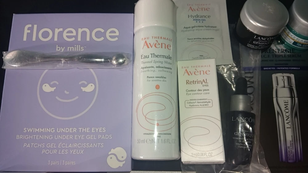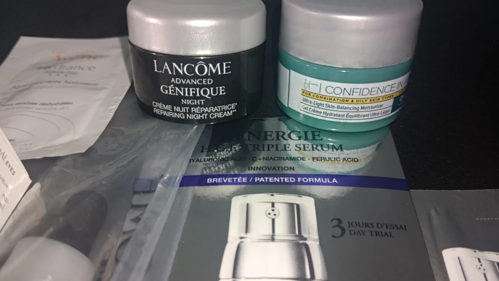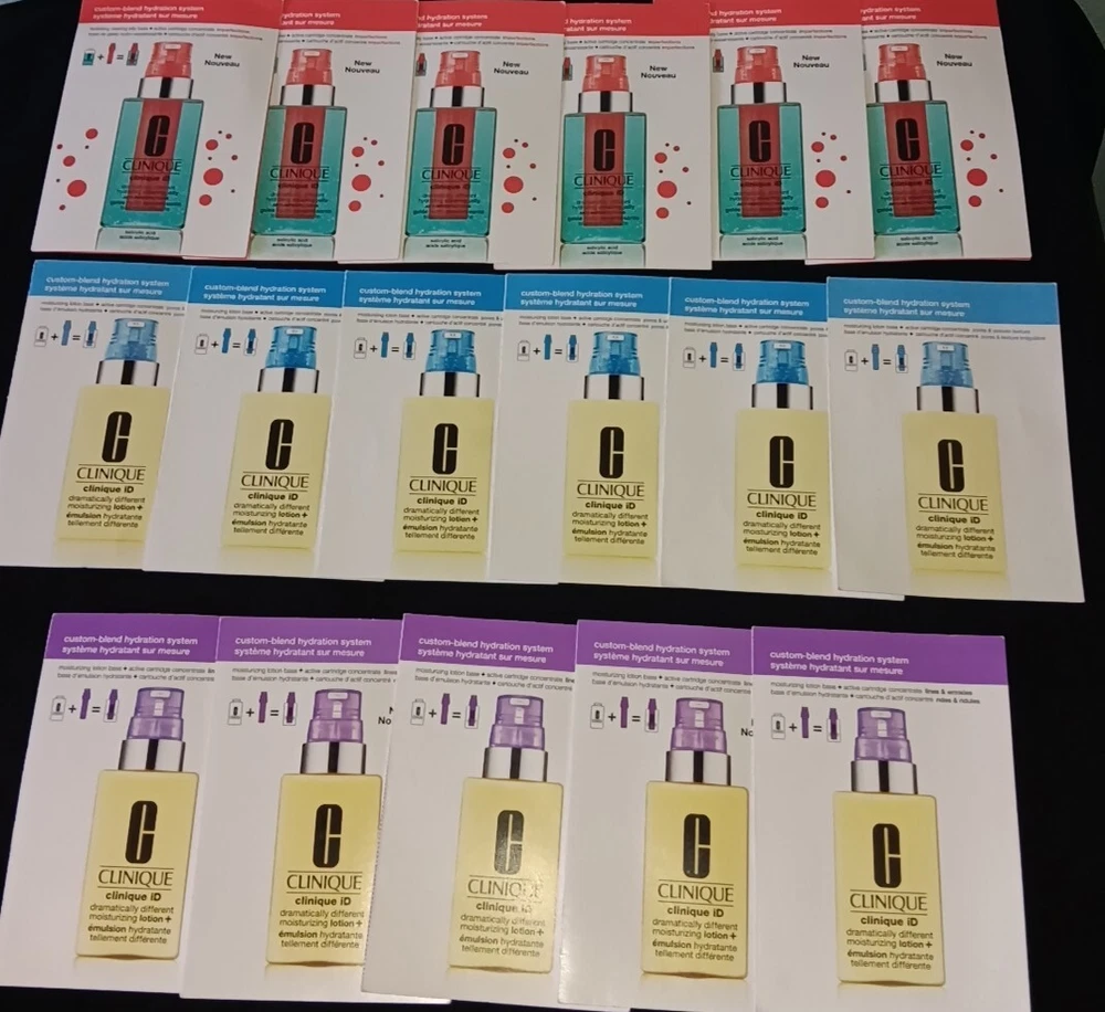 Large ulta beauty high end skincare lot for signs of aging & wrinkles (face &eyes) Everything shown in pictures is what you get Florence 3 pack brightening under eye gel patches Equilibrium hourglass eye balm Facial lifting massager tool Avené 3 piece 2 travel 1 sample size set Eau Thermale spring water Retinol serum Hudrance agua gel L'Oréal revitalift IT cosmetics eye balm travel size Dermatologicat 2 piece travel and sample size set Retinol serum Circular hydration serum Clarins 5 piece sample & Travel Size set Cryo flash cream mask sample size Double serum sample size Multi active nuit sample size Total eye lift sample size Multi active jour day cream travel size Shiseido 3 piece 1 travel size & 2 sample set Travel Size hydrating cream Benefiance wrinkle smoothing eye cream sample size Ultimune power infusing concentrate sample size Lancôme 5 piece 2 travel & 3 sample size set ×2 HCF triple serum sample size Advanced genifique serum travel size night creme Advanced genifique serum travel size serum Tonique facial toner sample size Clinique drastically different moisturizing lotion & hydrating clearing jelly 2 part samples (17 pouches) Purple pouch is for fine lines & wrinkles Blue pouch is for pores & uneven texture Red & blue pouch is for blemishes & imperfections Includes coach gift bag
