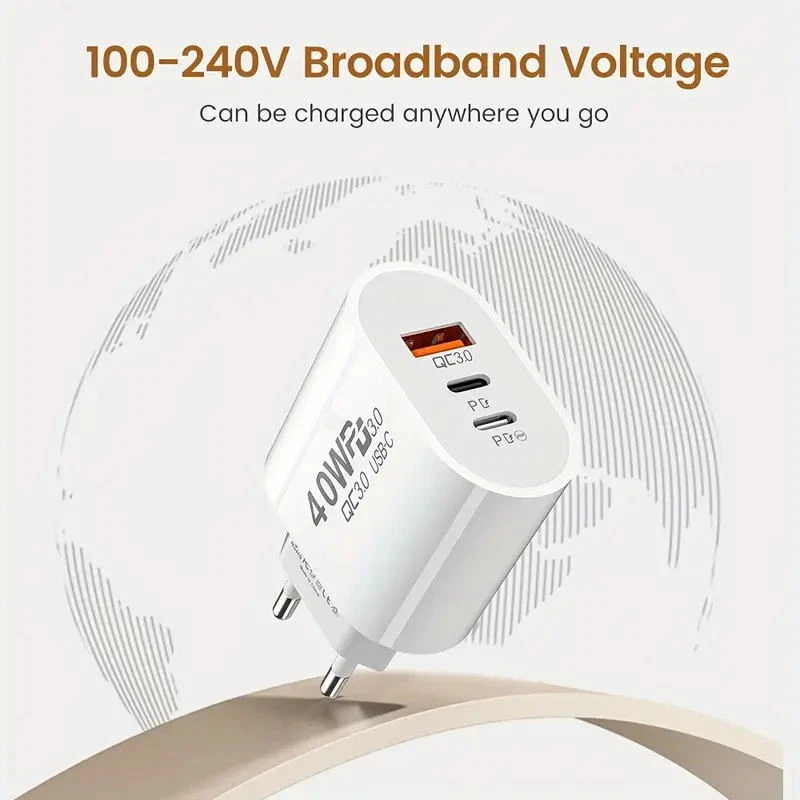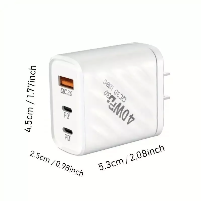 Features 【High Standard PC Fire Resistant Material】 This charger can provide multiple circuit protection for your device against overcurrent, overvoltage, overcharge, overdischarge and short circuit. 【Portable Design】 Our USB plugs are very convenient to carry during travel or other outdoor activities. 【Fast Charging】 Fast charging technology can provide your device with maximum charging efficiency. 【3 USB Ports】 Ensure the fastest charging speed for multiple devices at the same time by combining the 1 Quick Charger 3.0 port and 2 PD charging ports in one wall charger. 【Universal Compatibility】 for all devices, such as mobile phones, iPads, tablets, power banks, etc. (Mobile phone/pad and data cable need to be for fast charging to use the fast charging option) Specifications Item Type: Fast Charger USB 3.0 Wall Plug Material: ABS+PC USB Port Quantity: 3 Ports Product size: 45.5*28.5*67.5mm Input parameters: AC100-240V 50--60Hz; 0.5A Output parameter: PD(1) Output parameter: 5V/4A 9V/2.22A 12V/1.7A PD(2) Output parameters: 5V/4A 9V/2.22A 12V/1.7A Simultaneous output parameters: 5V/4A Each PD is 2A Package Included 1-100 PACK*40W Double PD Fast Charger Buyer Note: If you are satisfied with our service, we appreciate you leaving us a positive feedback and 5 star rating review! Your opinion is important to the success of our business. If you are not satisfied with the product or have not received the product for more than 35 days, please contact us to resolve, we will do our best to solve. We are sure to come up with a satisfactory solution. Please contact us first before leaving cold feedback or good feedback of 1-3 stars and opening the case. We'll do our best to solve your problem. Because we believe that everything can be solved through communication. Thank you very much!