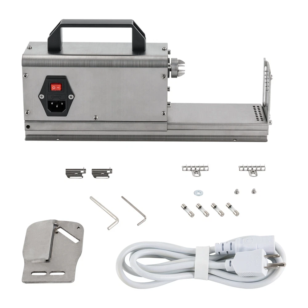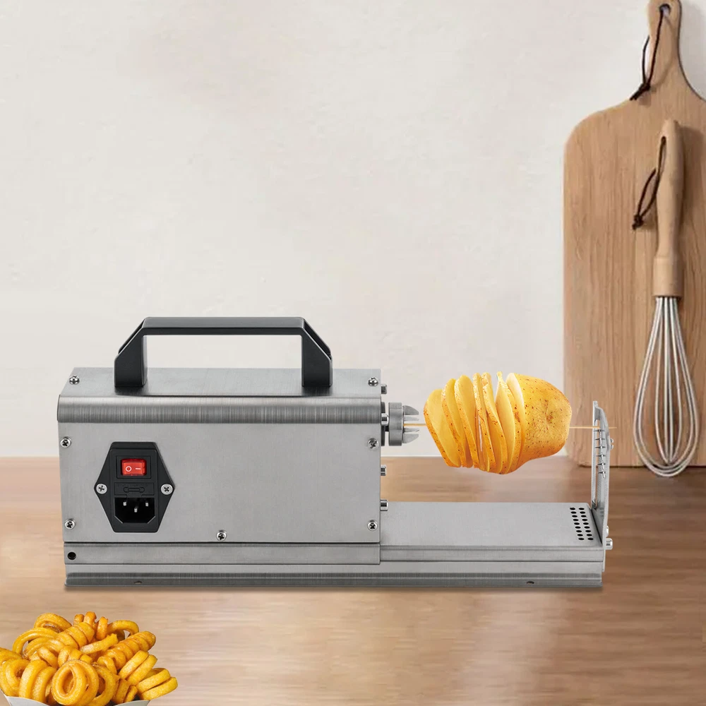 Specifications Model: 528-8(3 in 1) Color: Silver Style: Modern Shape: Rectangular Blade Shape: Round Material: Stainless Steel Process: CNC machining, Polishing, Stamping Recommended Uses For Product: Vegetable Operation Mode: Semi-Automatic Power Source: Corded Electric Plug: US Standard Voltage: 110V Frequency: 50/60Hz Power: 40W Rotate Speed: 200r/min Power Cord Length: 1.5m/4.9ft Blade Thickness: 2.7mm/0.1inch The Thickness of the Slice: 2mm/0.078inch, 2.5mm/0.098inch Product Size: 34.5*8.5*12cm/13.58*3.35*4.72inch Package Size: 42*19*15cm/16.5*7.48*5.9inch Net Weight: 3.2kg/7.05 lbs Gross Weight: 4kg/8.8 lbs Package Included 1* Electric Potato Twister 1* Handle 1* Sharp Blade 1* Power Cord Other Accessories for Installation 40W Electric Potato Cutter Twister Tomato Slicer Spiral Machine Stainless Steel Specifications Model: 528-8(3 in 1) Color: Silver Style: Modern Shape: Rectangular Blade Shape: Round Material: Stainless Steel Process: CNC machining, Polishing, Stamping Recommended Uses For Product: Vegetable Operation Mode: Semi-Automatic Power Source: Corded Electric Plug: US Standard Voltage: 110V Frequency: 50/60Hz Power: 40W Rotate Speed: 200r/min Power Cord Length: 1.5m/4.9ft Blade Thickness: 2.7mm/0.1inch The Thickness of the Slice: 2mm/0.078inch, 2.5mm/0.098inch Product Size: 34.5*8.5*12cm/13.58*3.35*4.72inch Package Size: 42*19*15cm/16.5*7.48*5.9inch Net Weight: 3.2kg/7.05 lbs Gross Weight: 4kg/8.8 lbs Package Included 1* Electric Potato Twister 1* Handle 1* Sharp Blade 1* Power Cord Other Accessories for Installation Description Come and enjoy the delicious food with your family and friends now! Our electric potato twister has high quality, exquisite workmanship, 3 in 1 functions, great cutting effect, and various thoughtful designs, making it convenient and easy to use. With it, your kids will eat their favorite potato chips or your customers will have more choices. Key Features 3 in 1 Electric Potato Twister: It can cut potatoes into spiral potato chips, curly fries, and potatoes wrapped around hot dogs, adding special dishes to your shop and satisfying the different needs of your customers. Efficient Cutting: Adopting an AC 110V motor with 200r/min speed and a high-strength blade, this machine can easily cut even and beautiful slices of 0.078" and 0.098", providing you with ideal potato chips. Easy to Install&Use : With the simple structure, complete accessories, and user-friendly buttons, you can install and use this machine easily. You can also secure it to the workbench through pre-drilled holes on the base to ensure stable use. Easy to Clean: Because of the smooth surface with a polishing treatment, you can wipe the dirt from this machine with a cloth. Protective Package: To prevent the product from being damaged and bumped during transportation, we packed it with environmental-friendly pearl cotton to protect your products to the maximum extent possible. Details Practical Handle: It allows for convenient operation while protecting your hands from hurting and ensures easy carrying with less effort. Powerful Accessories: The spare fuses and small blades ensure convenient and easy replacement when needed, which can save you money without additional purchase and prolong the machine's lifespan. Long Power Cord: The 4.9ft power cord allows you to have plenty of disposable lengths, thus reducing the limitation when you use it. Application It is specially designed for commercial and household use. It is ideal for homes, western restaurants, snack bars, fast food restaurants, hotels, apartments, booths, etc. to cut potatoes, yams, taros, white radishes, carrots, cucumber, onions, and other vegetables without kernels. How to Use Stick in the peeled potato with a bamboo stick(not included). Push the bamboo stick into the center of the hole. Connect the machine to the power supply and turn on the switch. Slowly and gently push the handle. The delicate potato tower is finished. Push the handle back to the proper position and turn off the power. Notes There is a blue plastic seal film around the entire unit to prevent the machine from scratches while shipping, please remove it before using. This machine is not suitable for foods that are too soft and have kernels. Please be careful not to put your fingers on the blade to avoid scratching during operation and cleaning. When cleaning and maintenance, the power should be cut off to prevent accidents. After the work is finished, please gently wipe the machine with a non-corrosive detergent and a wet towel. Please do not wash the machine directly with water! You can place a towel under this machine to prevent it from scratching the countertop. Please allow the slight color difference caused by the shooting light and 1-3cm error due to manual measurement, and make sure you do not mind before you order. Payment Delivery details Terms of sales About us Contact us Payment We accept ebay payment 。 Fees such as import duties, taxes are not included in the item price or shipping costs. These charges are the buyer's responsibility. Delivery details Shipping: 2-9 working days to: USA Terms of sales We maintain high standards of excellence and strive for hundred percent customer satisfaction. Feedback is very important to us. We hope that you contact us immediately before you give neutral or negative feedback, so that we can address your concerns. It is impossible to address issues if we do not know about them! About us Your satis faction is our ultimate goal. We work hard to earn your trust and future business. Our certified technicians have tested each item before shipping. The unit comes with 1 year limited warranty on all manufacturing defects. a) If you receive a defective item, you may return it or ask for a discount. Please contact us within 14 days after you receive the package. b) What you returned must be intact and in its original packaging as re? u. Customer is responsible for shipping costs of the returned item. c) We will cov
