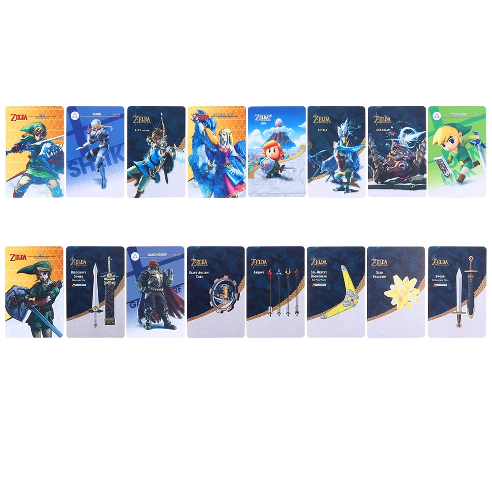 NOTE:Standard shipping service can't ship the item to the PO BOX address, so if you want it to your PO Box, please choose the Express shipping service (postage add $0.99 without tax) Introductions: This is a set of 38 Amiibo Compatible NFC Cards for use with Switch Breath of The Wild Tears of the Kingdom. They are NOT made by Amiibo but work just like them for a fraction of the price. They are firm cards that are about the size of card and have beautiful picture on them. They are very easy to carry in the case which is about the size of a small wallet. You have to activate Amiibo on Switch setting and you can you each card once a day. Each card will give you a Chest with a random treasure inside and plenty of food and supplies. It will make you adventure so much more fun since you won't have to waste so much time finding supplies like food, weapons and armor so you can focus on your exploration of the land. Cards Size:86mmx54mm For:Switch/Switch Oled/Switch Lite Package Includes: 38 pcs/set: No.1 Wolf Connection - 20 Hearts No.2 The Legend of - Connection Majora's Mask No.3 The Legend of - Connection Skyward Sword No.4 Super Crush Brothers - Sheik No.5 Super Crush Brothers - Ganondorf No.6 Super Crush Brothers - Link No.7 Breath of the Wild - Connection (Rider) No.8 The Legend of - Toon Connection The Breeze Waker No.9 Breath of the Wild - No.10 Breath of the Wild - Guardian No.11 Super Crush Brothers - Toon Link No.12 Super Crush Brothers - No.13 The Legend of - 8 Piece Link No.14 Breath of the Wild - Connection (Archer) No.15 Breath of the Wild - Bokoblin No.16 The Legend of - The Breeze Waker No.17 The Legend of - Connection Ocarina of Time No.18 The Legend of - Connection Nightfall Princess No.19 Breath of the Wild - Mipha No.20 Breath of the Wild - Revali No.21 Breath of the Wild - Daruk No.22 Breath of the Wild - Urbosa No.23 Super Crush Brothers - Youthful Link No.24 The Legend of - Connection's Awakening No.25 The Legend of - and Loftwing No.26 Ancient Weapons No.27 Falcon Bow No.28 Fierce Deity Sword No.29 Twilight Bow No.30 Star Fragments No.31 Gooddess Sword No.32 Biggoron's Sword No.33 Six Sage Sword No.34 Wang Clan Shield No.35 Bomb Arrow No.36 S ea-Breeze boomerang No.37 Bow No.38 Link No.39 Ganondorf No.40 Princess Zelda