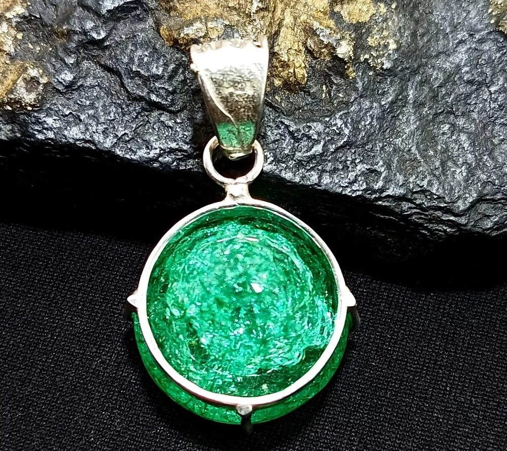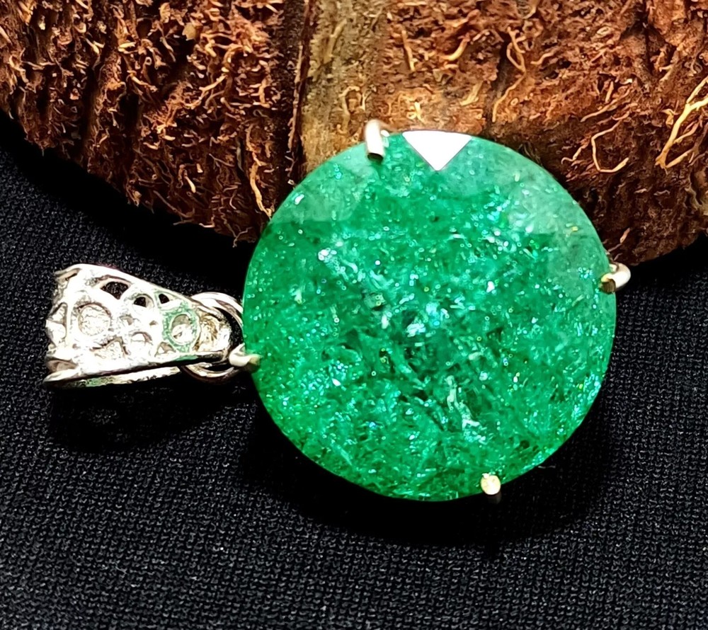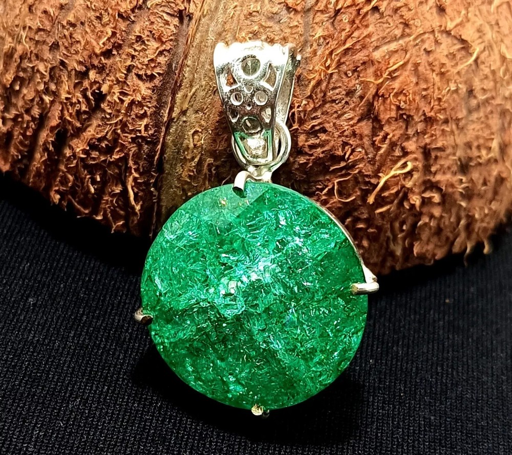 40.95 Ct Certified Emerald Silver Plated Round Locket Pendant Gemstone Jewelry