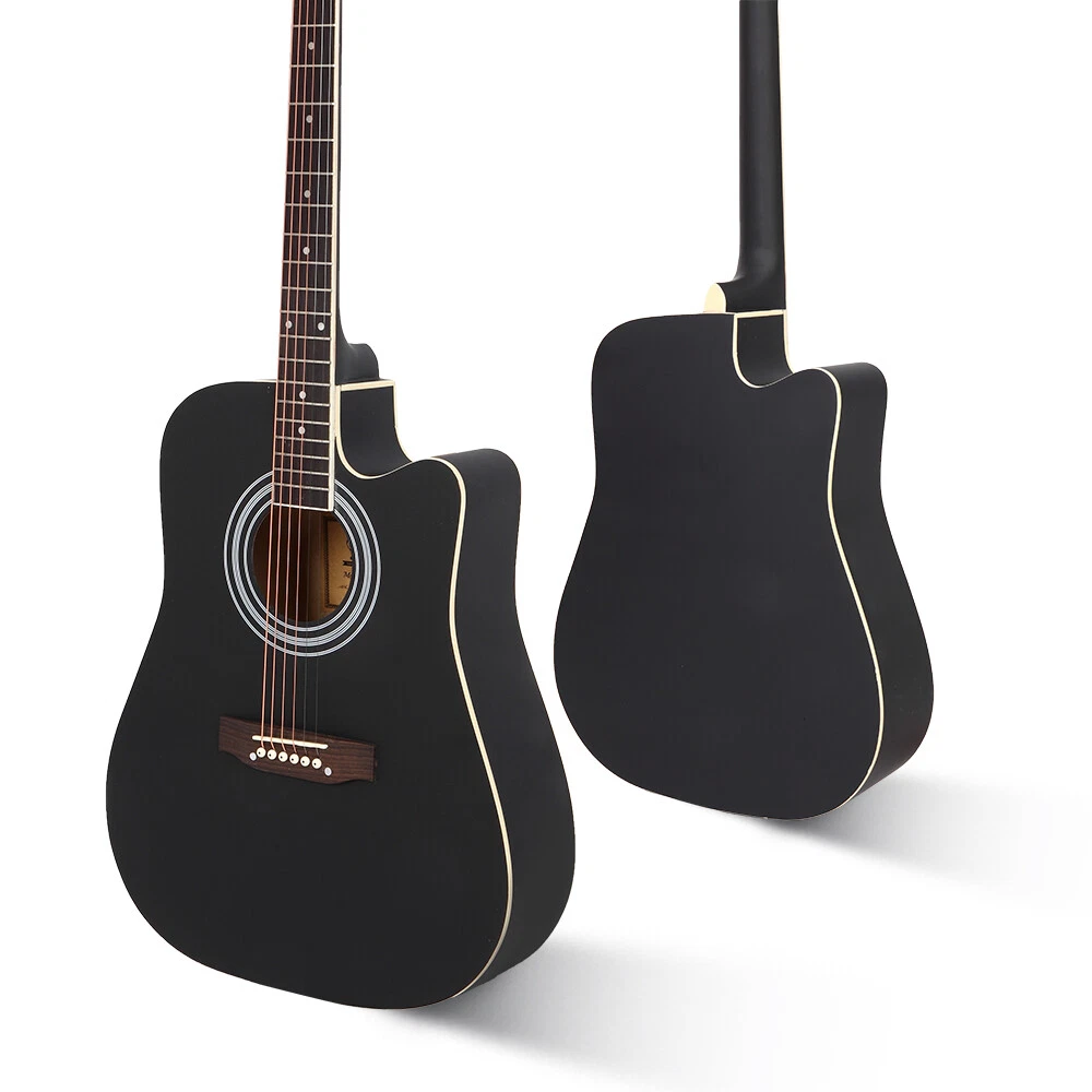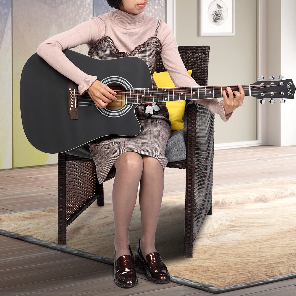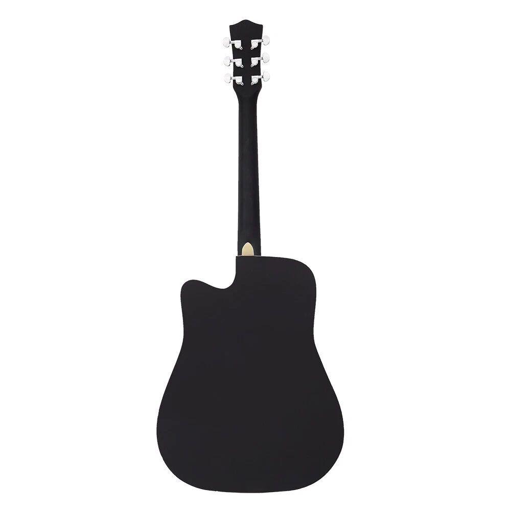 Introductions: Our Glarry GT502 41-Inch Notch Spruce Panel Matte Edging Folk Guitar are made of spruce panels and eucalyptus backings and sides. The spruce panel is sturdy and flexible, which makes the guitar's sound transmission faster and has a rich timbre change for a variety of occasions. This is suitable for students, beginners, professional performers, and all kinds of music lovers. The neck has an adjustable design, and with the wrench we have, we can adjust the curvature of the neck. Thanks to the fully enclosed knob design, the rust resistance is good and the life of the knob can be increased. What are you still hesitating about? Hurry and buy it! Features: 1. Full-size 41 inch cutaway dreadnought body for full and vibrant tone, suited for all styles of music 2. Right-hand design, spruce top and basswood back and sides bring you richer and brighter sound 3. Rosewood fingerboard and bridge, smooth, stable and impervious to string wear 4. Produce a nice mellow tone with crisp highs and powerful bass 5. Dreadnought body design with a single cutaway 6. Excellent intonation and sustain 7. Full enclosed knobs, single edging 8. Ideal for both students and Beginners 9. Come with a bag, a protective board and a wrench Specifications: 1. Brand: Glarry 2. Size:41" 3. Model:GT502 4. Type:Cutaway 5. Body Type:Dreadnought 6. Guitar Color: Black 7. Board Material: Spruce 8. Back Material: Basswood 9. Side Panel Material: Basswood 10. Fingerboard Material: Rosewood 11. Tuning Peg Material: Metal 12. Nut Material: ABS Plastic 13. Bridle Bridge Material: Rosewood 14. String Winder Peg Tool: Full Closed String Axis 15. String: Steel String 16. Number of Frets: 20 Frets 17. Nut Width:43mm 18. Scale Length: 25.4" 19. Unilateral: Package White Unilateral 20. Guitar Dimensions: (41 x 16.3 x 4.5)" / (104.14 x 41.4 x 11.43)cm(L x W x H) 21. Guitar Weight: 4.08lb / 1.85kg Package Includes: 1 x Guitar 1 x Guitar Bag 1 x Guard Board 1 x Wrench Tool