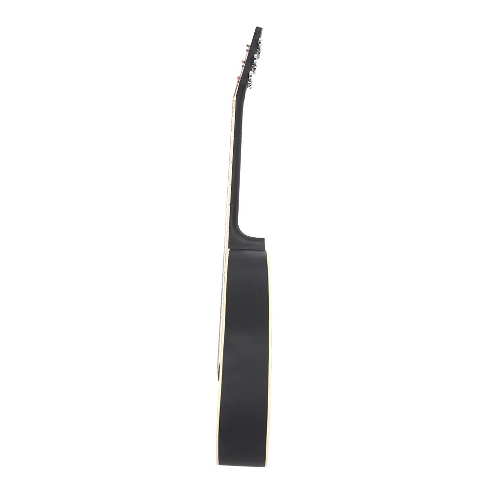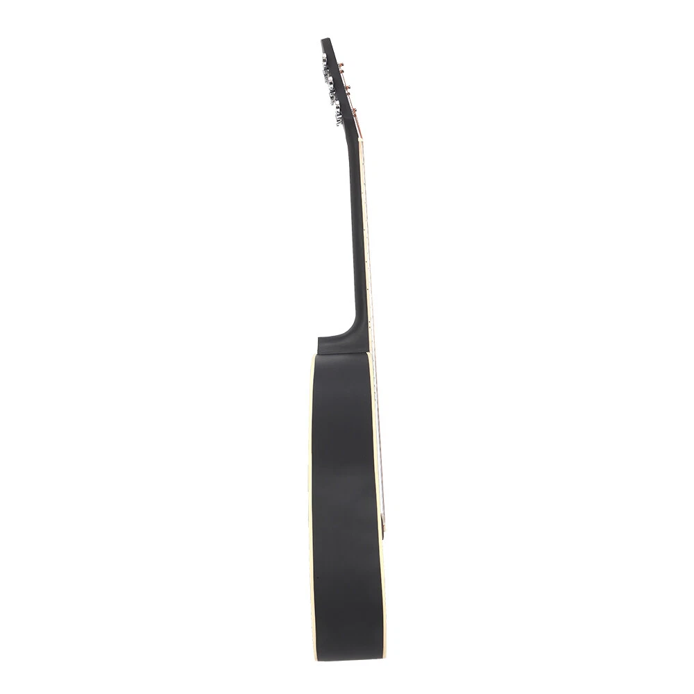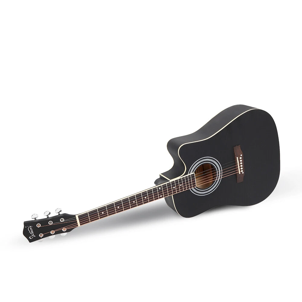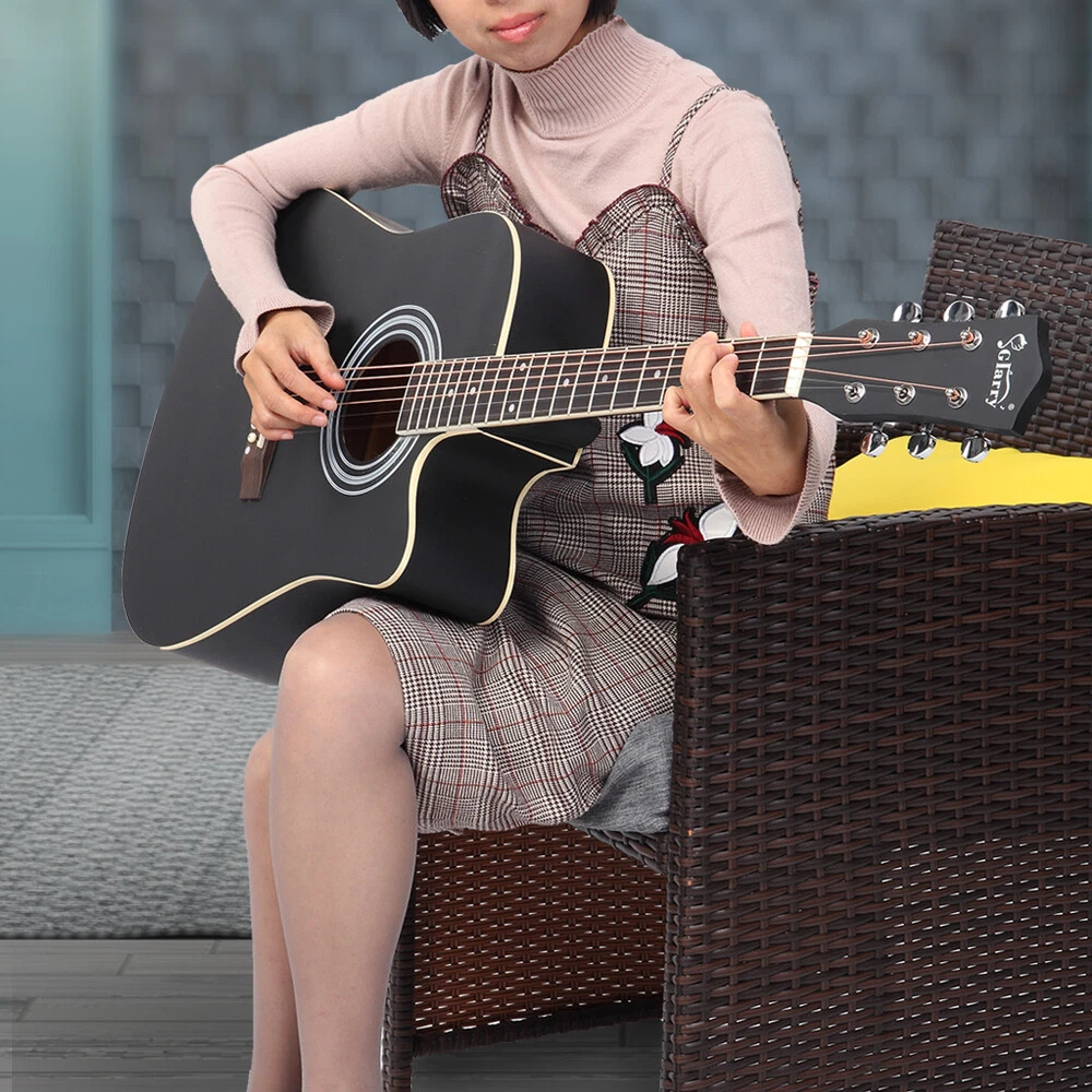 Introductions: Our Glarry GT502 41-Inch Notch Spruce Panel Matte Edging Folk Guitar are made of spruce panels and eucalyptus backings and sides. The spruce panel is sturdy and flexible, which makes the guitar's sound transmission faster and has a rich timbre change for a variety of occasions. This is suitable for students, beginners, professional performers, and all kinds of music lovers. The neck has an adjustable design, and with the wrench we have, we can adjust the curvature of the neck. Thanks to the fully enclosed knob design, the rust resistance is good and the life of the knob can be increased. What are you still hesitating about? Hurry and buy it! Features: 1. Full-size 41 inch cutaway dreadnought body for full and vibrant tone, suited for all styles of music 2. Right-hand design, spruce top and basswood back and sides bring you richer and brighter sound 3. Rosewood fingerboard and bridge, smooth, stable and impervious to string wear 4. Produce a nice mellow tone with crisp highs and powerful bass 5. Dreadnought body design with a single cutaway 6. Excellent intonation and sustain 7. Full enclosed knobs, single edging 8. Ideal for both students and Beginners 9. Come with a bag, a protective board and a wrench Specifications: 1. Brand: Glarry 2. Size:41" 3. Model:GT502 4. Type:Cutaway 5. Body Type:Dreadnought 6. Guitar Color: Black 7. Board Material: Spruce 8. Back Material: Basswood 9. Side Panel Material: Basswood 10. Fingerboard Material: Rosewood 11. Tuning Peg Material: Metal 12. Nut Material: ABS Plastic 13. Bridle Bridge Material: Rosewood 14. String Winder Peg Tool: Full Closed String Axis 15. String: Steel String 16. Number of Frets: 20 Frets 17. Nut Width:43mm 18. Scale Length: 25.4" 19. Unilateral: Package White Unilateral 20. Guitar Dimensions: (41 x 16.3 x 4.5)" / (104.14 x 41.4 x 11.43)cm(L x W x H) 21. Guitar Weight: 4.08lb / 1.85kg Package Includes: 1 x Guitar 1 x Guitar Bag 1 x Guard Board 1 x Wrench Tool