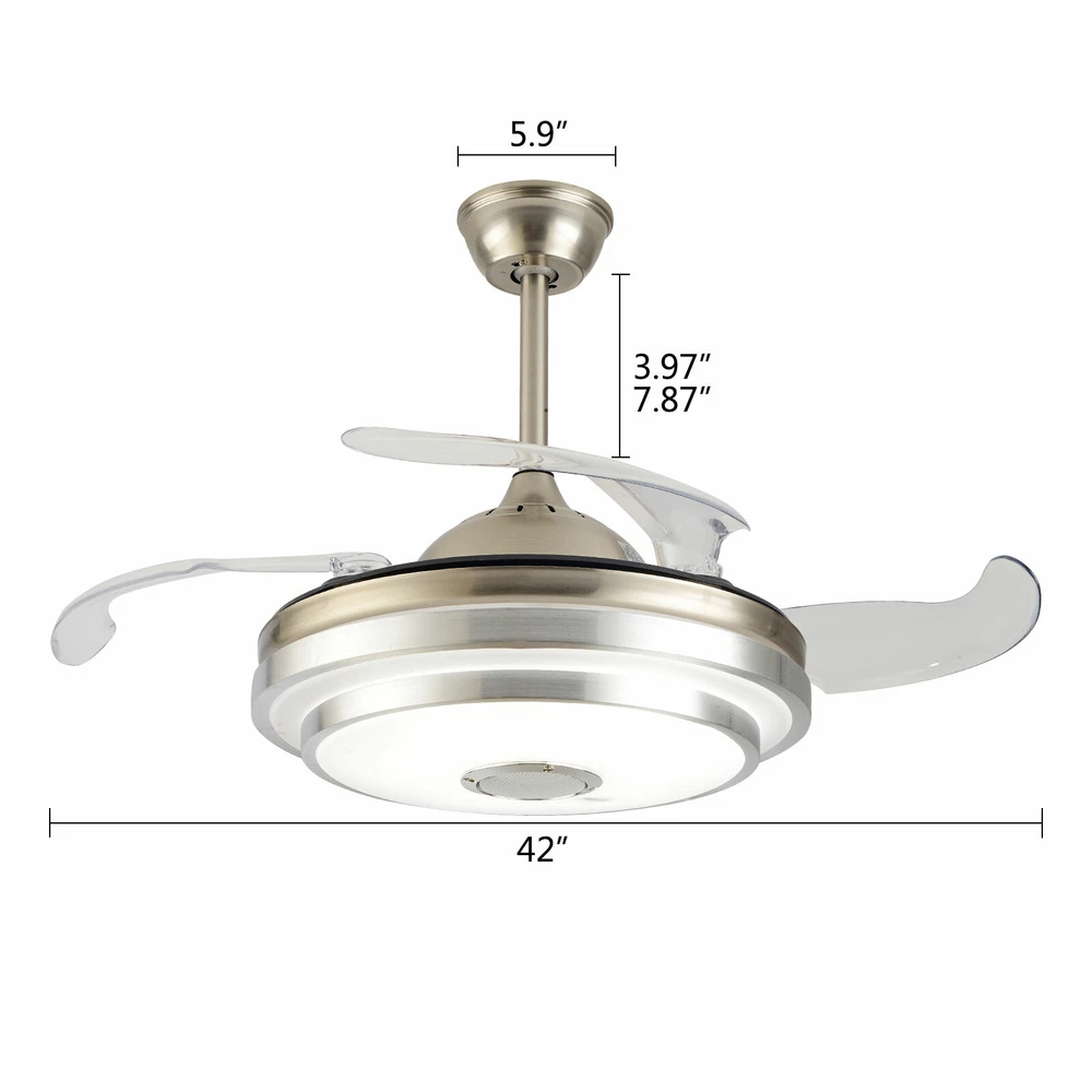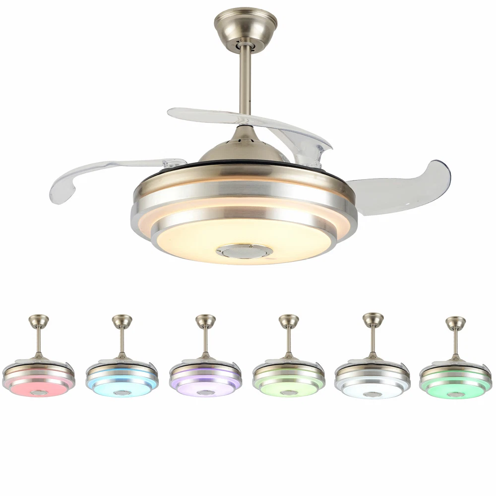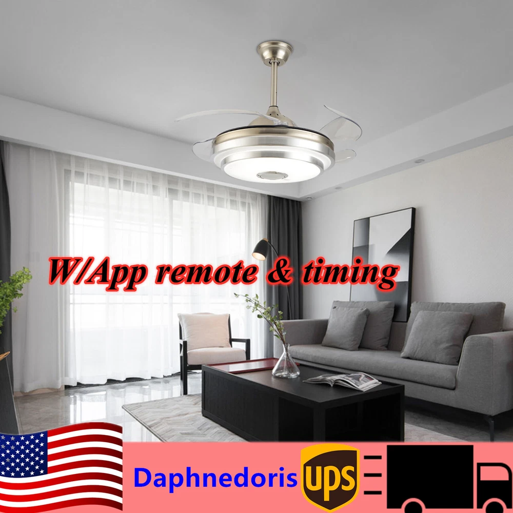 42" Modern Ceiling Fan Light 7 Color Change Remote Control w/Music Speakers 36W SKU:HG-HCXLST-4453-US About this item: 【3 in 1 Ceiling Fan with Light】: Modern ceiling fan / led color chandelier / Bluetooth speaker with 3 major function combinations. The fan blade is retractable, which can promote the air circulation. Modern ceiling fan / led color chandelier / Bluetooth speaker can work alone. 【Music Speakers and Color Change】: The built-in Bluetooth speaker of the music ceiling fan provides 3D stereo surround music with amazing sound quality. Use the i-lamp Bluetooth app,Support 7 color changes, you can set the color to automatically change with the melody of the music when attending a party. 【Remote Control】: The fan rotation speed and light of the fan chandelier can be controlled by 42" Ceiling Fan Light 7 Color LED Pedant Lamp Bluetooth Player 3 Speed w/RC 42" Modern Ceiling Fan Light 7 Color Change Remote Control w/Music Speakers 36W About this item: 【3 in 1 Ceiling Fan with Light】: Modern ceiling fan / led color chandelier / Bluetooth speaker with 3 major function combinations. The fan blade is retractable, which can promote the air circulation. Modern ceiling fan / led color chandelier / Bluetooth speaker can work alone. 【Music Speakers and Color Change】: The built-in Bluetooth speaker of the music ceiling fan provides 3D stereo surround music with amazing sound quality. Use the i-lamp Bluetooth app,Support 7 color changes, you can set the color to automatically change with the melody of the music when attending a party. 【Remote Control】: The fan rotation speed and light of the fan chandelier can be controlled by the remote control. The fan has 3 speed adjustments: high / medium / low, and supports timing (1/2/4/8 hours). 3 dimming methods: white light / warm white light / yellow light. The fan or lighting can be turned on separately. 【Silent Energy Saving】: The uniquely designed blade provides greater wind and less noise. With energy-saving purity copper silent motor, ceiling fan light provides a quiet sleeping environment for you and your family. Fan Chandelier Features: ★Material: Stainless Steel+ABS fan ★Style: modern ★ Size: 42in\107cm ★Type of Bulb:LED ★Average Life:50000 hours ★Voltage: 110V ★Power: 36W ★Control method: remote control ★App remote control: i-Lamp ★Use For:Indoor ★Fan timing: 1h \ 2h \ 4h \ 8h ★Fan speed: high \ medium \ low (fan and lighting can be controlled separately) ★ Is the fan blade reversible: No ★Applicable area: 15㎡-30㎡ What you get: ceiling fan x 1 Screws sets x 1 Down rods x 2 (1 0 CM & 2 0 CM) (2 rods available) Remote control x 1 Instruction Manual x 1 Payment Delivery details Terms of sales About us Contact us Payment We accept ebay payment 。 Fees such as import duties, taxes are not included in the item price or shipping costs. These charges are the buyer's responsibility. Delivery details Shipping: 2-9 working days to: USA Terms of sales We maintain high standards of excellence and strive for hundred percent customer satisfaction. Feedback is very important to us. We hope that you contact us immediately before you give neutral or negative feedback, so that we can address your concerns. It is impossible to address issues if we do not know about them! About us Your satis faction is our ultimate goal. We work hard to earn your trust and future business. Our certified technicians have tested each item before shipping. The unit comes with 1 year limited warranty on all manufacturing defects. a) If you receive a defective item, you may return it or ask for a discount. Please contact us within 14 days after you receive the package. b) What you returned must be intact and in its original packaging as re? u. Customer is responsible for shipping costs of the returned item. c) We will cover the cost of shipping back t with the shipping rate indicated in the registration page. We will send you a new unit or refund the full payment you paid. Thank you. Contact us Business Hour Business Hour: Monday To Friday: 8:30 AM to 5:00 PM (Beijing China time) Due to time zones, our reply to your questions may not be immediately. But within above working time, we will reply your email within 24 hours. If it's non-workdays, please kindly be patient and wait till Monday. Please contact us with ebay message. Please feel free to contact us if you have any questions. Monday To Friday: 8:30 AM to 5:00 PM (Beijing China time) Due to time zones, our reply to your questions may not be immediately. But within above working time, we will reply your email within 24 hours. If it's non-workdays, please kindly be patient and wait till Monday. Please contact us with ebay message. Please feel free to contact us if you have any questions. On Nov 18, 2024 at 02:41:39 PST, seller added the following information:
