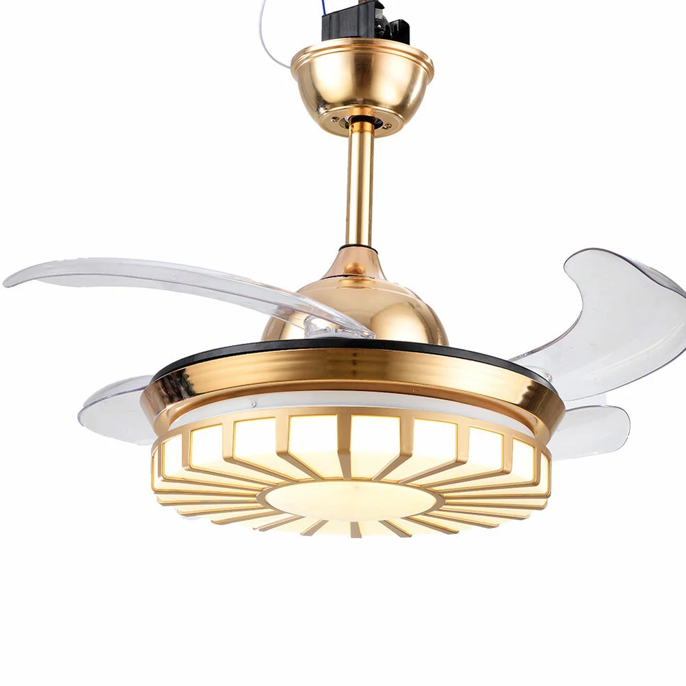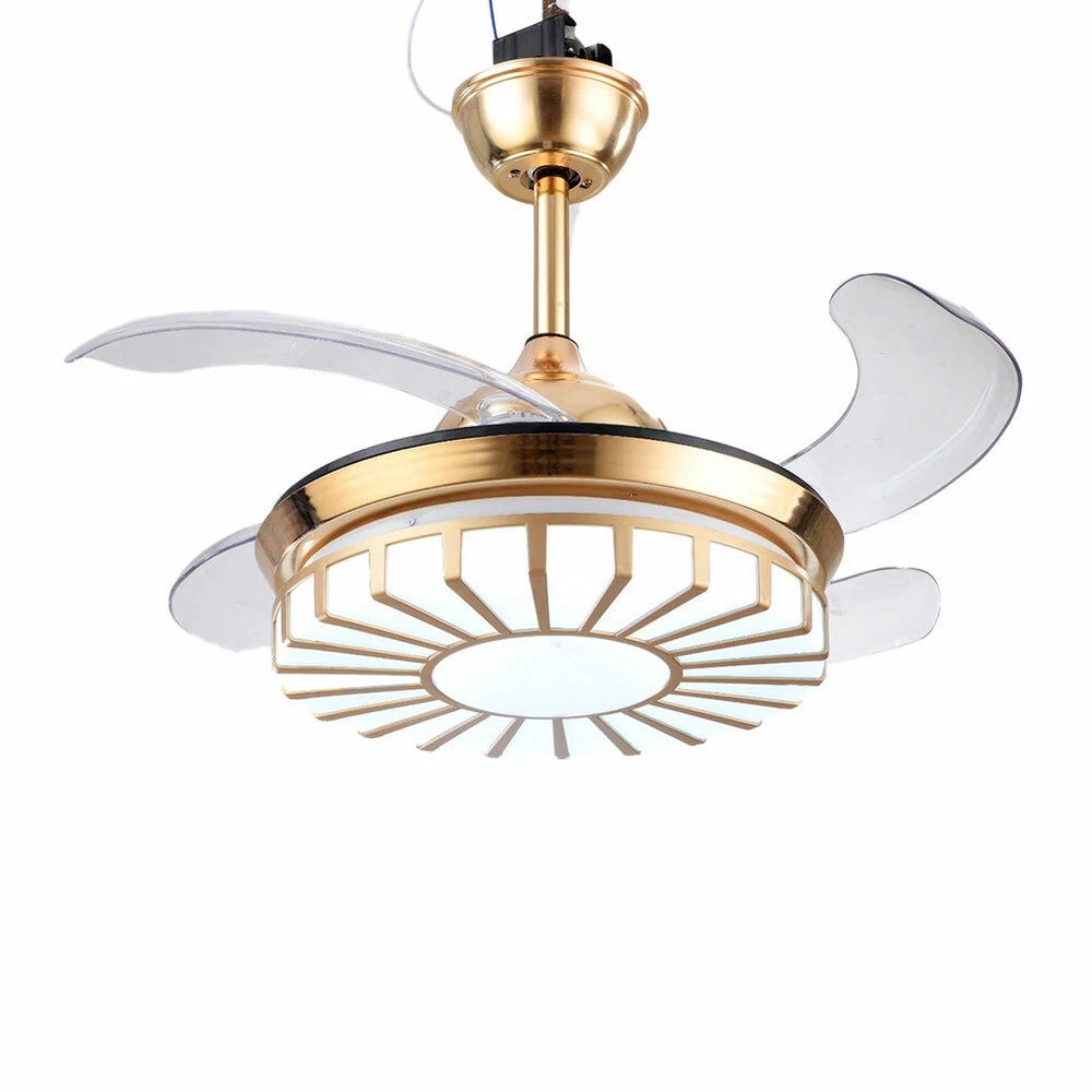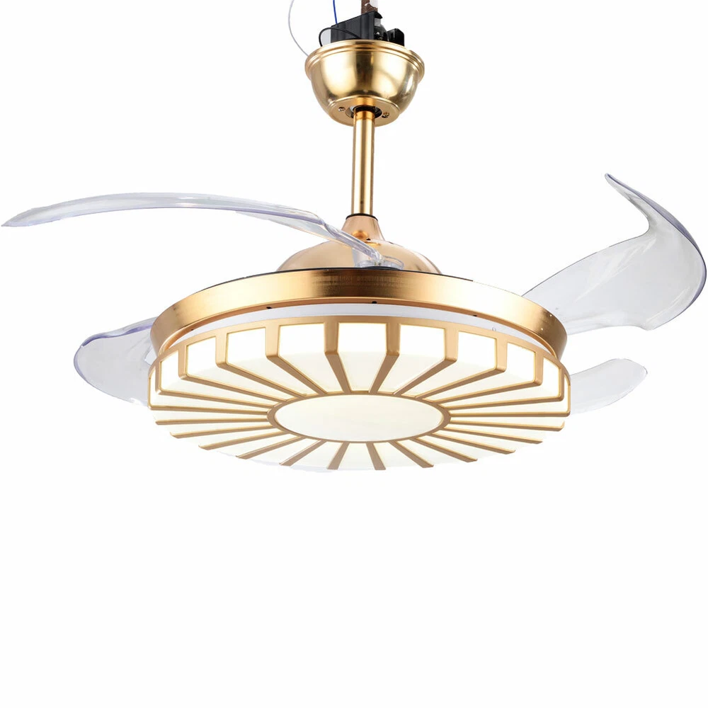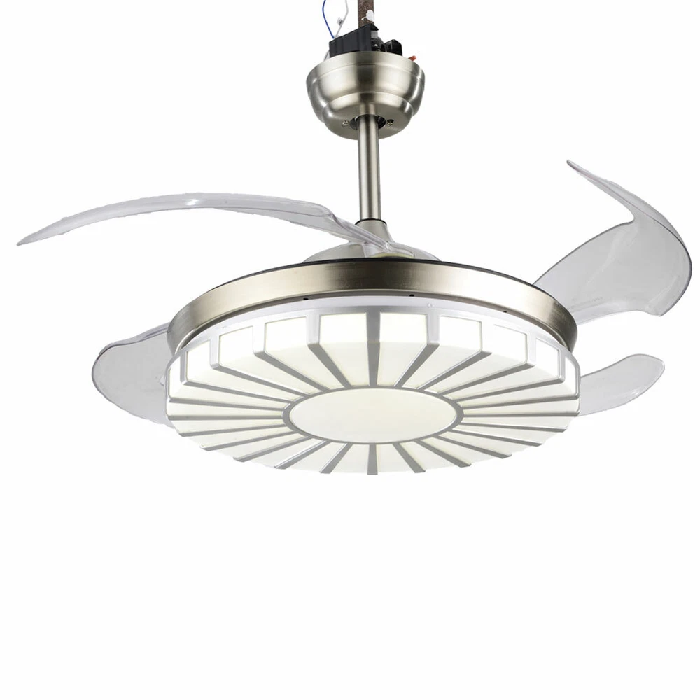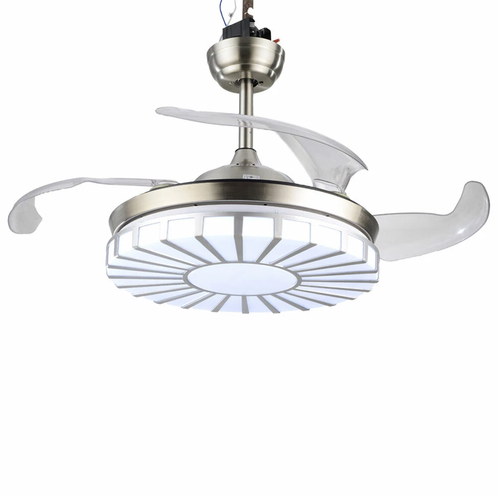 42" Crystal Ceiling Fan Light LED +Remote 4 Retractable Blade Lamp 3 Color speed