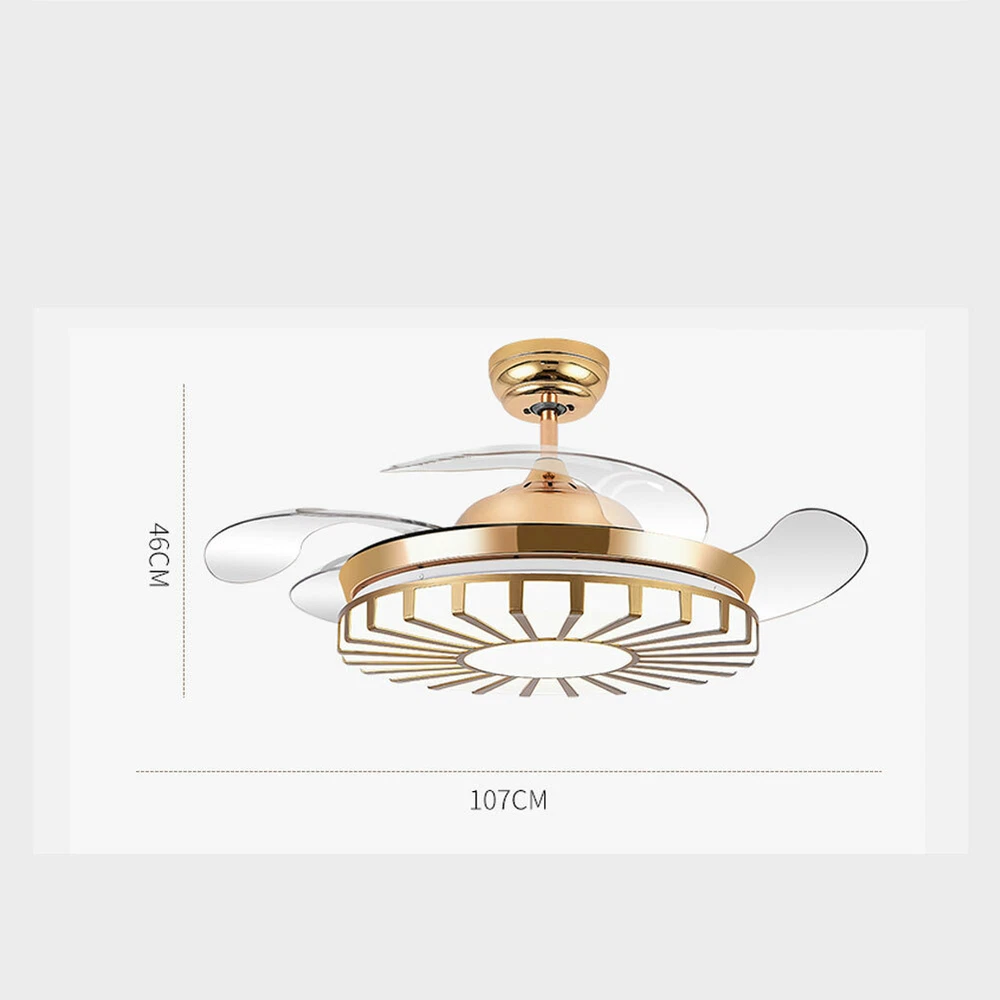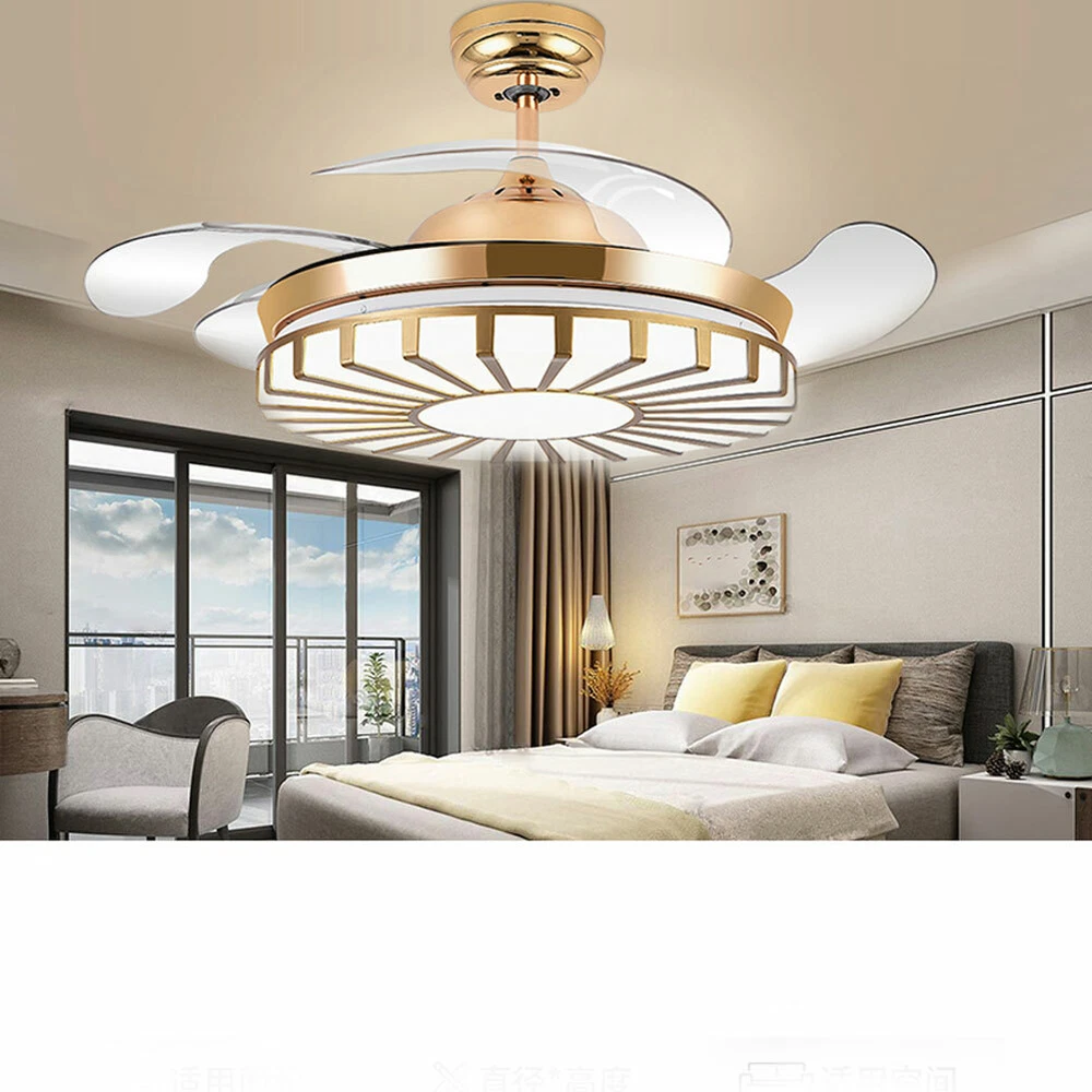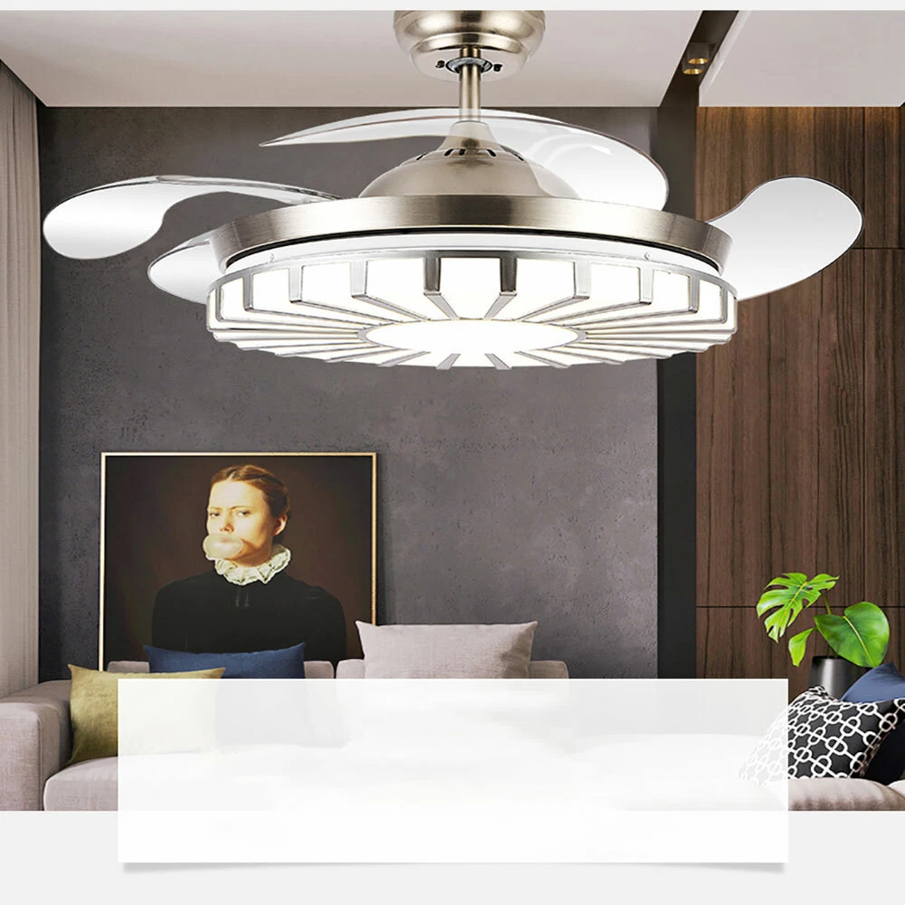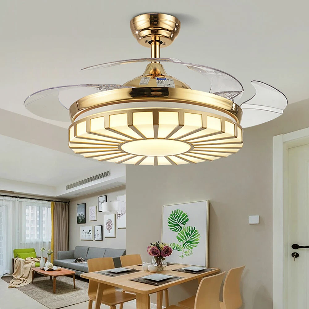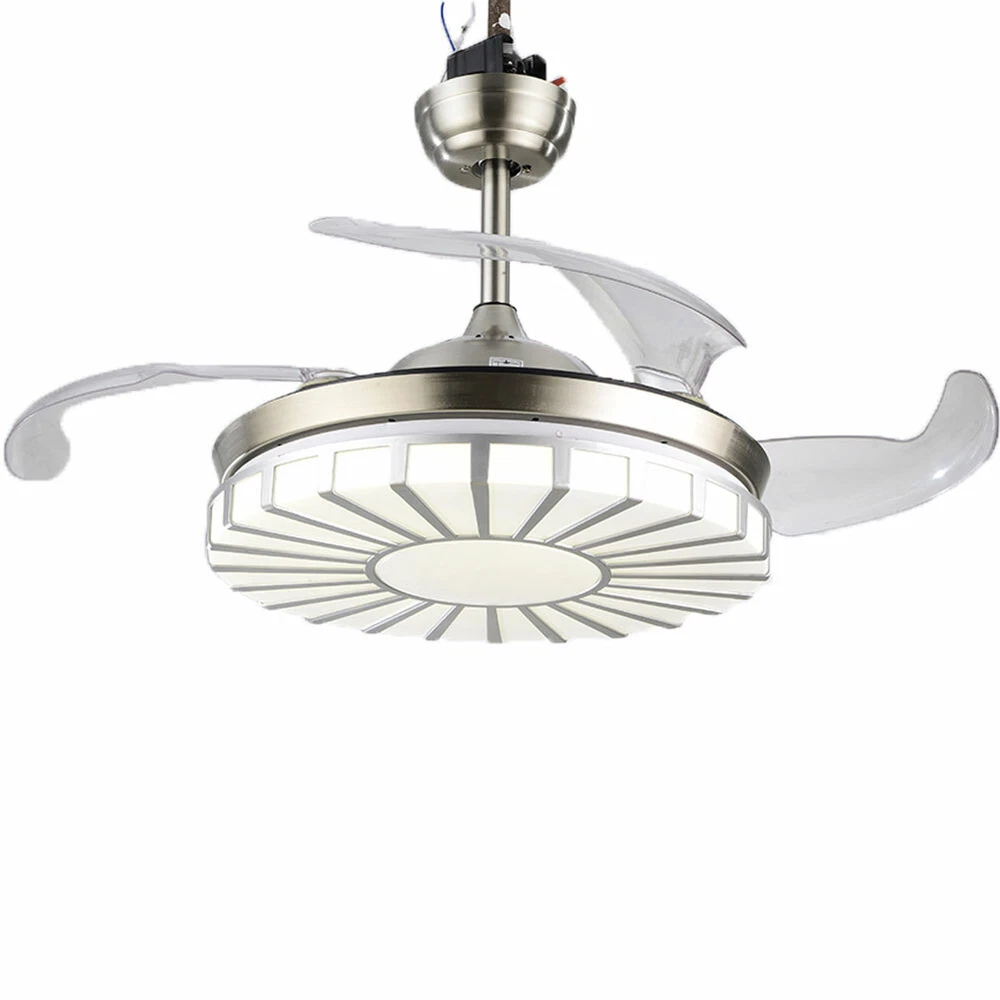 42" Crystal Ceiling Fan Light LED +Remote 4 Retractable Blade Lamp 3 Color speed