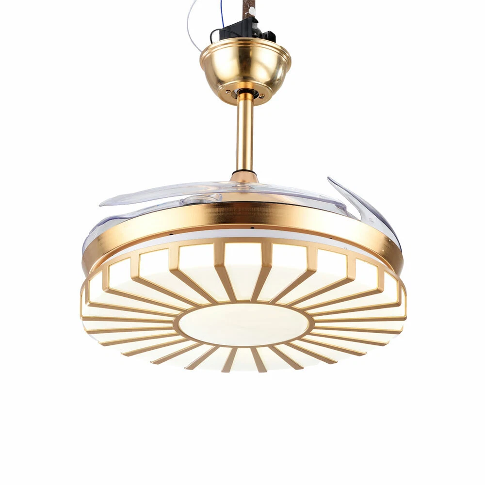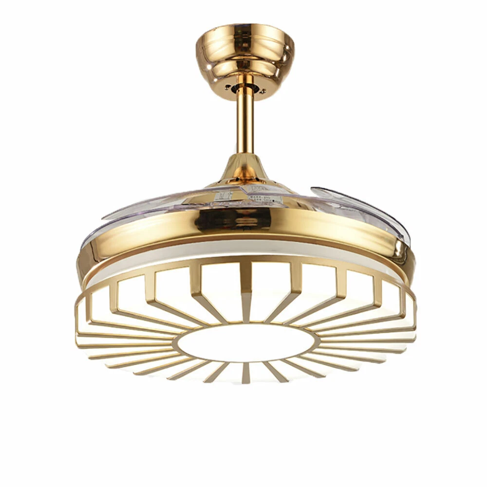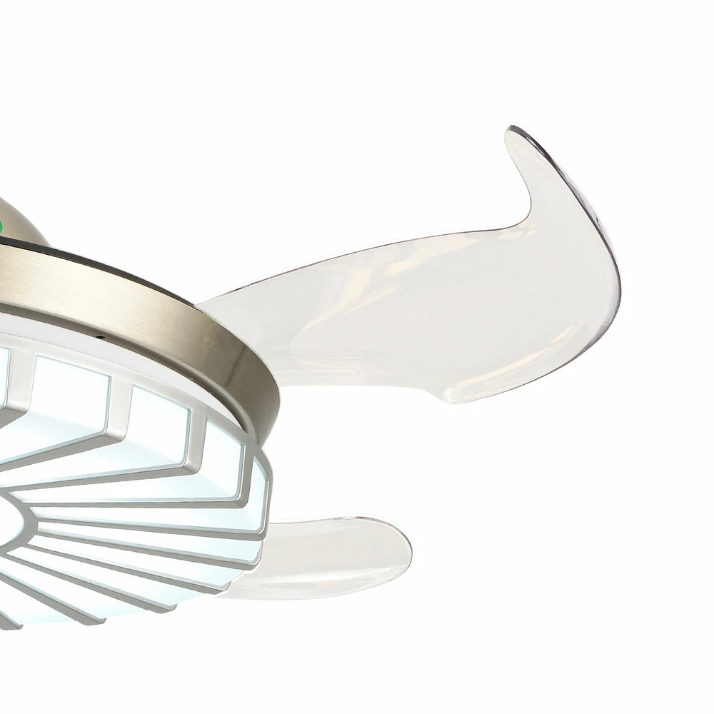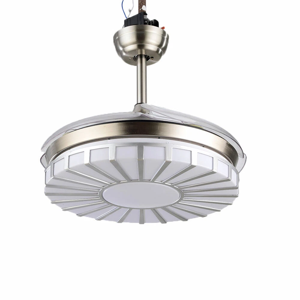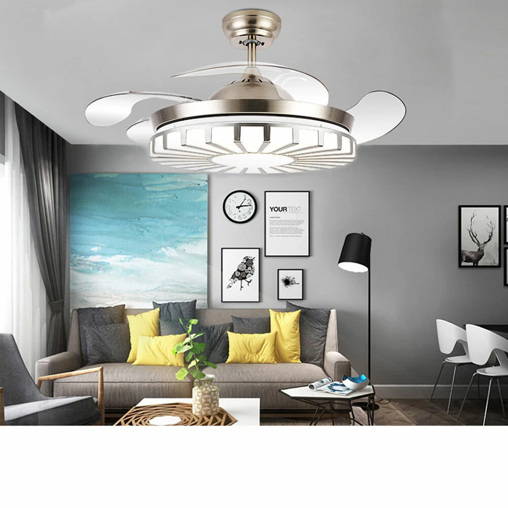 42" Crystal Ceiling Fan Light LED +Remote 4 Retractable Blade Lamp 3 Color speed