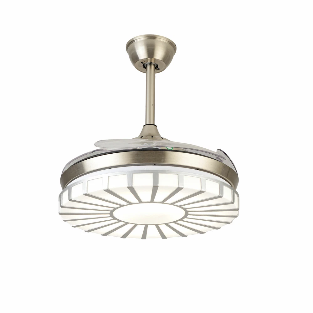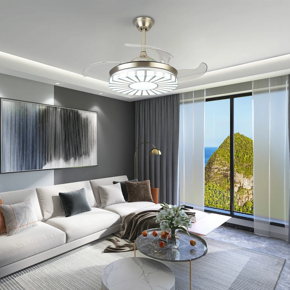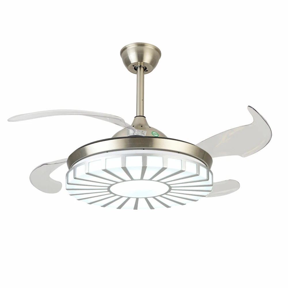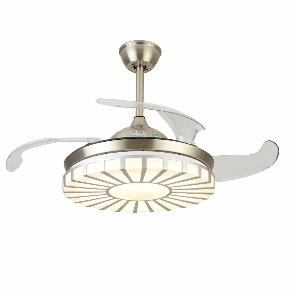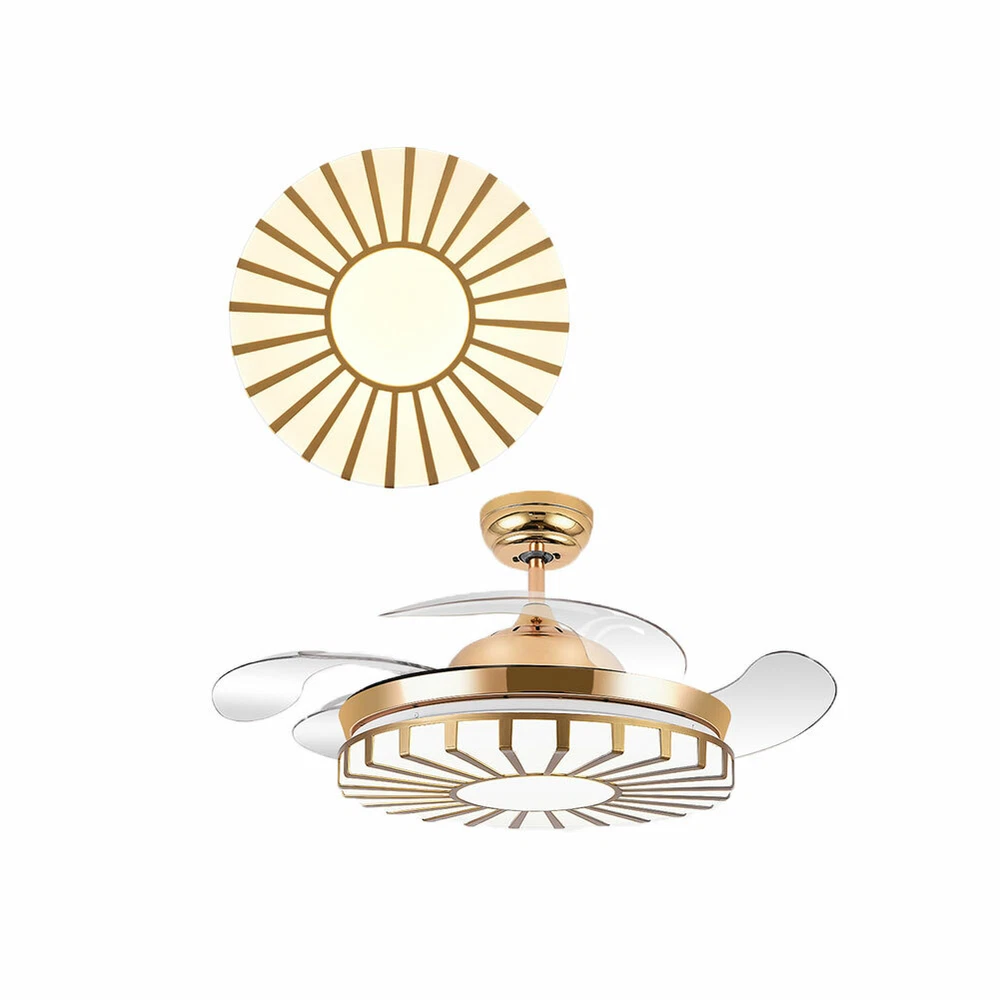 42" Crystal Ceiling Fan Light LED +Remote 4 Retractable Blade Lamp 3 Color speed