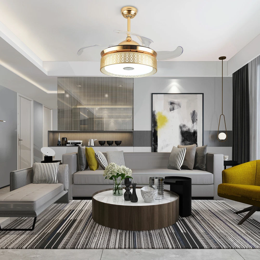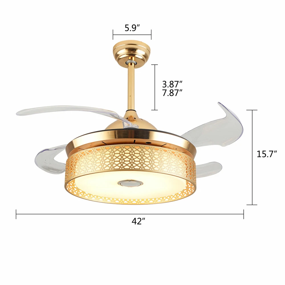 42" LED Chandelier Bluetooth Lamp Invisible Ceiling Fan Light Gold w/ Remote 3 in1 Invisible Ceiling Fan Light Bluetooth Speaker LED Colors Change Chandelier 【 3 in 1 Ceiling Fan with Light 】 : Modern ceiling fan / led chandelier / Bluetooth speaker with 3 major function combinations. The fan blade is retractable, which can promote the air circulation. Modern ceiling fan / led chandelier / speaker can work alone. 【 Music Speakers and Color Change 】 : The built-in speaker of the music ceiling fan provides 3D stereo surround music with amazing sound quality. 【 Remote Control 】 : The fan rotation speed and light of the fan chandelier can be controlled by the remote control. The fan has 3 speed adjustments: high / medium / low, and supports timing (1/2/4/8 hours). Light Souce: 48-watt LED panel, Color temperature can be changed from 3000K (Warm white)- 4500K (Day light) -with 6000K (Cool White). 【 Silent Energy Saving 】 : The uniquely designed blade provides greater wind and less noise. With energy-saving purity copper silent motor, ceiling fan light provides a quiet sleeping environment for you and your family. Bluetooth Fan Chandelier Features: ★ Material: Stainless Steel+ABS fan ★ Style: modern ★ Size: 42in\107cm ★ Type of Bulb : LED ★ Voltage: 110V ★ Power: 48W ★ Control method: remote control ★ App remote control: i-Lamp ★ Use For:Indoor ★ Fan timing: 1h \ 2h \ 4h \ 8h ★ Fan speed: high \ medium \ low (fan and lighting can be controlled separately) ★ Is the fan blade reversible: No ★ Rod length: 3.87\7.87inch (2 rods available) ★ Applicable area: 15 ㎡ -30 ㎡ What you get: ceiling fan x 1 Screws sets x 1 Down rods x 2 (10CM & 20CM) Remote control x 1 Instruction Manual x 1 Tips: -Please make sure the light is securely supported and is disconnected from power when installing. Payment Delivery details Terms of sales About us Contact us Payment We accept ebay payment 。 Fees such as import duties, taxes are not included in the item price or shipping costs. These charges are the buyer's responsibility. Delivery details Shipping: 2-9 working days to: USA Terms of sales We maintain high standards of excellence and strive for hundred percent customer satisfaction. Feedback is very important to us. We hope that you contact us immediately before you give neutral or negative feedback, so that we can address your concerns. It is impossible to address issues if we do not know about them! About us Your satis faction is our ultimate goal. We work hard to earn your trust and future business. Our certified technicians have tested each item before shipping. The unit comes with 1 year limited warranty on all manufacturing defects. a) If you receive a defective item, you may return it or ask for a discount. Please contact us within 14 days after you receive the package. b) What you returned must be intact and in its original packaging as re? u. Customer is responsible for shipping costs of the returned item. c) We will cover the cost of shipping back t with the shipping rate indicated in the registration page. We will send you a new unit or refund the full payment you paid. Thank you. Contact us Business Hour Business Hour: Monday To Friday: 8:30 AM to 5:00 PM (Beijing China time) Due to time zones, our reply to your questions may not be immediately. But within above working time, we will reply your email within 24 hours. If it's non-workdays, please kindly be patient and wait till Monday. Please contact us with ebay message. Please feel free to contact us if you have any questions. Monday To Friday: 8:30 AM to 5:00 PM (Beijing China time) Due to time zones, our reply to your questions may not be immediately. But within above working time, we will reply your email within 24 hours. If it's non-workdays, please kindly be patient and wait till Monday. Please contact us with ebay message. Please feel free to contact us if you have any questions. * Feature * high-performance,good stability,Convenient Use Feature 1 Easy installation,Convenient Use,Easy Operation Note: Do not send to Brazil Bundle Description: No shipping notice Can not ship to Puerto Rico,Alaska/Hawaii Item location: CA /NJ /Austell Transportation does not include: canarias shipping notice: Can not ship to Puerto Rico,Alaska/Hawaii Color Gold MPN Does Not Apply Brand Unbranded Style Modern Features Remote Control, With led light, Bluetooth Room Bar, Bedroom, Dining Room, Hallway, Home Office/Study, Kitchen, Living Room, Playroom Lighting Technology LED Type Ceiling Fan Material ABS, Metal, Stainless Steel Power Source Hardwired Voltage 110V Item Diameter 42 in Assembly Required Yes Power 48W Control method remote control App remote control i-Lamp Use For Indoor Fan timing 1h \ 2h \ 4h \ 8h Fan speed high \ medium \ low Is the fan blade reversible No Rod length 3.87\7.87inch (2 rods available) Applicable area 15㎡-30㎡ UPC Does not apply