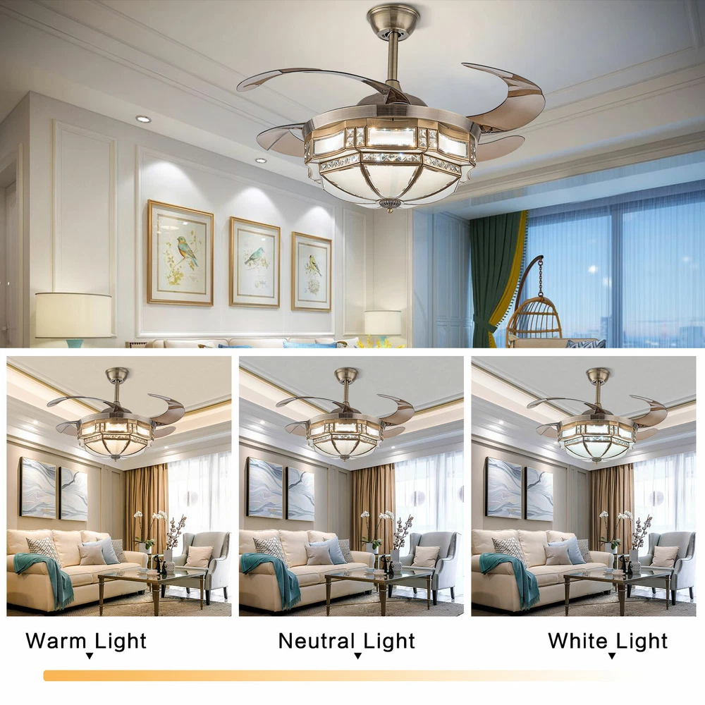 42” Tiffany Style Ceiling Fan W/ LED Light Chandelier Remote Control Fandelier Fan Modern Retractable Ceiling Fan Light for Indoor Dining Room Restaurant Bedroom Tiffany Remote Ceiling Fan with Light,3 Color Changing Chandelier Fan-3 down Rod,42 Inch gold bronze Product Name: Tiffany Style Ceiling Fans with Light Style: Classic / Modern Light Source: Led Lighting Board (Included) Shade Material:metal with Craft-made Colorful Painted Blade Material: Amber Acrylic ❤ Invisible Fan Chandelier: Fan and Chandelier Combined into One with Remote Control, Automatic Telescopic Fan Blade, Led Lamp Beads ❤ Ceiling Fan with Remote: . Dimmable Led Lights Have 3 Color Changes (White-warm-yellow), Fan Has 3 Speed Settings (Low-mid-high). All These Functions Can Be Easily Controlled by Remote ❤ Fan Light Chandelier: 42 Inches When the Fan Is Extended, and 19 Inches When the Fan Blade Is Retracted. Includes Two Lower Bars, One for 4.8 Inches and the Other for 9.8 Inches, You Can Choose One to Install ❤ Bedroom Ceiling Fans Material: Metal Body + Acrylic Lamp Cover + Abs Retractable Blades + Pure Copper Motor(Providing Powerful Air Flow, Quiet and Durable. with Vents, It Can Reduce the Internal Temperature of the Main Unit and Extend the Life of the Motor.) Ceiling Fan with Led Light: Replaceable Led Light Will Last a Longtime and save You the Most on Your Energy Bills. Ceiling Fan with Remote Control: Control the Light and Fan Speed Separately for Ease and Convenience. The Colored Lampshade Is Made of Pure Hand-sprayed Oil, It May Has Slight Chromatic Aberration and Color Unevenness on Different Fan. Color Temperature: Cct Dimmable (3 Light Cycles) Light Source Type: Led(Light Kit Included) Control: Remote Control Included Dimensions: 42 Inch, 4 Retractable Blades Light Wattage: 36w Motor Wattage: 56w Speed: 3 Voltage: Ac 110 -120 Volts Installation Instructions: Ceiling Chandelier Suitable for Flat Roof Concrete Ceiling House, for Gypsum Board and Wood Ceiling, You Need to Buy a Remodeling Bracket; Identify and Connect Electrical Wires; Ceiling Height Is Greater than 110", Lift 110 Pounds. What You Get: Retractable Ceiling Fan X 1 Screws Sets X 1 Down Rods X 2 (12cm & 25cm) Remote Control X 1 Instruction Manual X 1 Payment Delivery details Terms of sales About us Contact us Payment We accept ebay payment 。 Fees such as import duties, taxes are not included in the item price or shipping costs. These charges are the buyer's responsibility. Delivery details Shipping: 2-9 working days to: USA Terms of sales We maintain high standards of excellence and strive for hundred percent customer satisfaction. Feedback is very important to us. We hope that you contact us immediately before you give neutral or negative feedback, so that we can address your concerns. It is impossible to address issues if we do not know about them! About us Your satis faction is our ultimate goal. We work hard to earn your trust and future business. Our certified technicians have tested each item before shipping. The unit comes with 1 year limited warranty on all manufacturing defects. a) If you receive a defective item, you may return it or ask for a discount. Please contact us within 14 days after you receive the package. b) What you returned must be intact and in its original packaging as re? u. Customer is responsible for shipping costs of the returned item. c) We will cover the cost of shipping back t with the shipping rate indicated in the registration page. We will send you a new unit or refund the full payment you paid. Thank you. Contact us Business Hour Business Hour: Monday To Friday: 8:30 AM to 5:00 PM (Beijing China time) Due to time zones, our reply to your questions may not be immediately. But within above working time, we will reply your email within 24 hours. If it's non-workdays, please kindly be patient and wait till Monday. Please contact us with ebay message. Please feel free to contact us if you have any questions. Monday To Friday: 8:30 AM to 5:00 PM (Beijing China time) Due to time zones, our reply to your questions may not be immediately. But within above working time, we will reply your email within 24 hours. If it's non-workdays, please kindly be patient and wait till Monday. Please contact us with ebay message. Please feel free to contact us if you have any questions. Brand Unbranded MPN Does Not Apply Type Ceiling Fan Diameter 42inch Style Tiffany Color Brown Light Wattage 36W Motor Wattage 56W Shade Material Metal with Craft-made colorful painted Blade Material Amber acrylic Light Source LED lighting board (Included) Features 3-Light, Dimmable, Remote Control, 4 Retractable Blades, Adjustable, Easy To Clean, Best Ceiling Fan For Lighting, Quiet And Cool speed 3 Voltage AC 110 -120 Volts Room Bedroom, Dining Room, Laundry/Utility Room, Living Room, Playroom, Sunroom Material Metal with Craft-made colorful painted Finish Type Oil, Painted Special Feature Remote Control Sensor Type Light Lighting Technology LED Number of Settings 3 Finish N/A Light Color White Cord Color White Shade Shape Dome Power Source Wall Plug-In Installation Area Indoor Manufacturer N/A Energy Star 3 Stars Department Adults Control Style N/A LED String/Strip Type N/A EC Range A+ - G Fan Width N/A Number of Blades N/A Blade Color N/A Design N/A UPC Does not apply