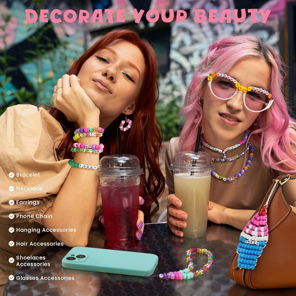 This bracelet kit is amazing—so many beads in vibrant colors and fun shapes! Perfect for making kandi bracelets, necklaces, and more. The elastic strings are strong, and the beads are smooth with no weird smell. Great for crafting with friends or solo creativity. Love the variety of letters, numbers, and hearts—endless design possibilities! Super value for the price, highly recommend for anyone who loves DIY jewelry.