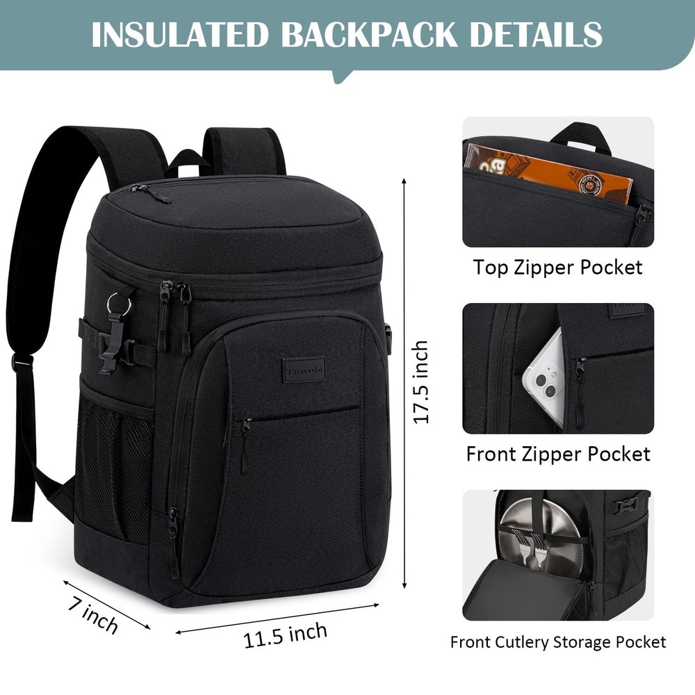 Cooler Backpack 42 Cans, Backpack Coolers Insulated Leak Proof for Men Women, Waterproof Soft Sided Lunch Camping Beach Travel Ice Chest Backpack Cooler Bag Black 【Insulated & Leak-proof】 insulated leak-proof cooler backpack has high density insulation material and premium leak-proof lining, which work together to provide excellent insulation. It ensures leak-proof insulation while keeping food and drinks fresh and cool for up to 20 hours. You can enjoy a cold beer, fresh fruit or food with friends or family anytime. 【Large Capacity & Multiple Compartments】 Available in two sizes - 10.5" x 7" x 16.5" (35 cans) or 11.5" x 7" x 17.5" (42 cans). This soft-sided cooler bag is roomy with one main cooler compartment and three other compartments, each zipped to hold food, drinks, fruit, ice, plates, utensils and more. Mesh pockets and adjustable buckles on both sides of the cooler keep items secure; the top compartment and front pocket hold snacks and small items, keeping everything organized and within reach. 【Soft & Comfortable Padding】This cute portable cooler bag for backpack features thick padding on the back panel and double shoulder straps, which can free your hands, avoid shoulder wearing and reduce fatigue during travelling, and make your travelling more relaxing and enjoyable! The top of the beer cooler features a hanging fabric loop with a built-in bottle opener for added convenience. 【Versatile Uses】Our cooler backpack for women is not only perfect for mums to take breast milk on the plane. It can also be used as a day pack, lunch backpack, perfect for work, beach, picnic, camping, hiking, fishing, boating, travelling and more. 【Warm Tips】 Please do not touch with open flame or cut with sharp knives. To avoid prolonged exposure to rain, humidity, sunlight exposure environment will affect the insulation effect. Cooler Backpack 35/42 Cans, Backpack Coolers Insulated Leak Proof for Men Women, Waterproof Soft Sided Lunch Camping Beach Travel Ice Chest Backpack Cooler Bag Shipping We offer FREE shipping on all orders! We ship within Three business days of payment, usually sooner. We use a selection of shipping services such as UPS, FedEx, USPS etc. We only ship to the lower 48 states, no APO/FPO addresses or PO Boxes allowed. Local pickups and combined shipping options are not provided at this time. Return You can return a product for up to 30 days from the date you purchased it. Any product you return must be in the same condition you received it and in the original packaging. Please keep the receipt. Payment We accept payment by any of the following methods: PayPal Please pay as soon as possible after winning an auction, as that will allow us to post your item to you sooner! Feedback Customer satisfaction is very important to us. If you have any problem with your order, please contact us and we will do our best to make you satisfied. Contact Us If you have any queries, please contact us via ebay. We usually respond within 24 hours on weekdays. Please visit our eBay store to check out other items for sale! Thank you for shopping at our store.