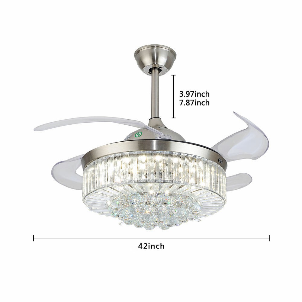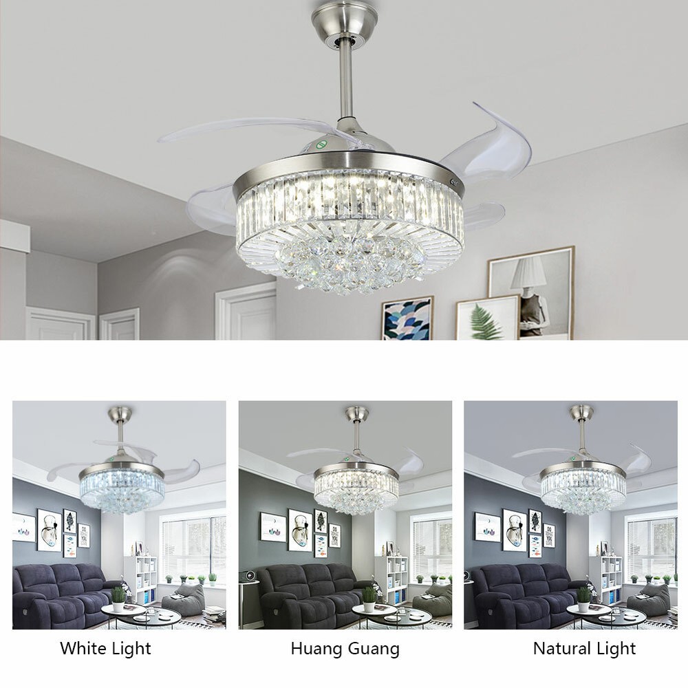 This stunning chandelier fan is a game-changer! The retractable crystal-clear blades look sleek when closed and deliver excellent airflow when open. The bright, adjustable LED panel offers perfect lighting for any mood—warm, daylight, or cool white. The premium metal body and high-quality K9 crystals add elegance, making it a gorgeous centerpiece. Remote control makes switching modes effortless. Installation is a breeze, though professional help is recommended. A perfect mix of style and function—total love!