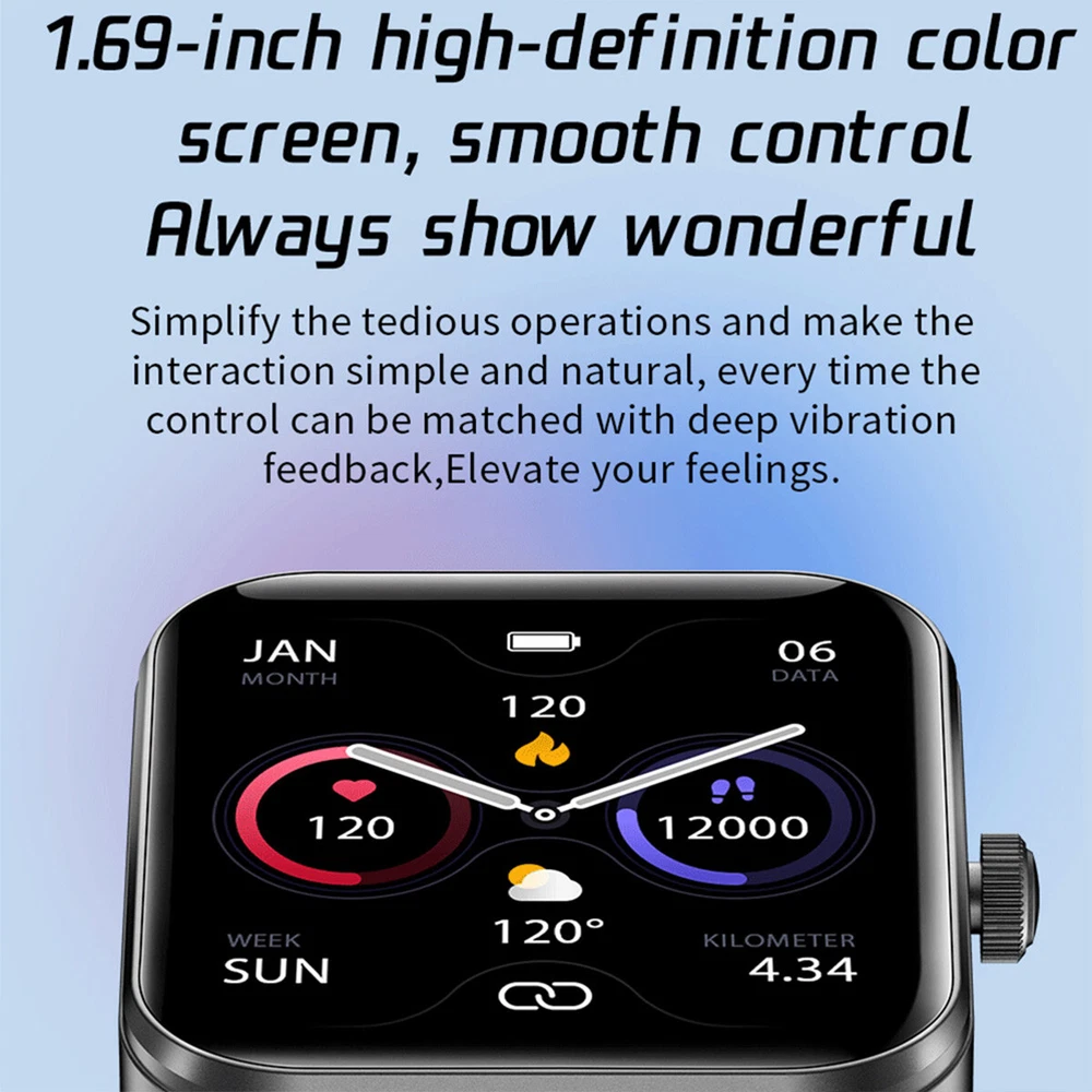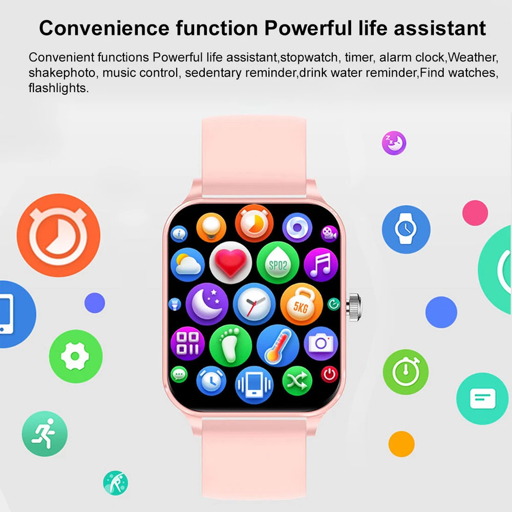 All-day Health Monitoring Fitness Tracker: Our smart watch is equipped with BIO3.0 PPG high precision optical sensor and powerful sensor engine, providing 24 hours heart rate monitoring, SpO2 measurement, blood pressure measurement and sleep quality detection (deep sleep, light sleep , rapid eye movement time), all-round presentation of your body's health indicators in the form of data. IP67 waterproof protects the watch from damage caused by water and sweat during your daily use and workouts. Long Battery Life: The fitness watch can last up to 7 days after charging for 2 hours.