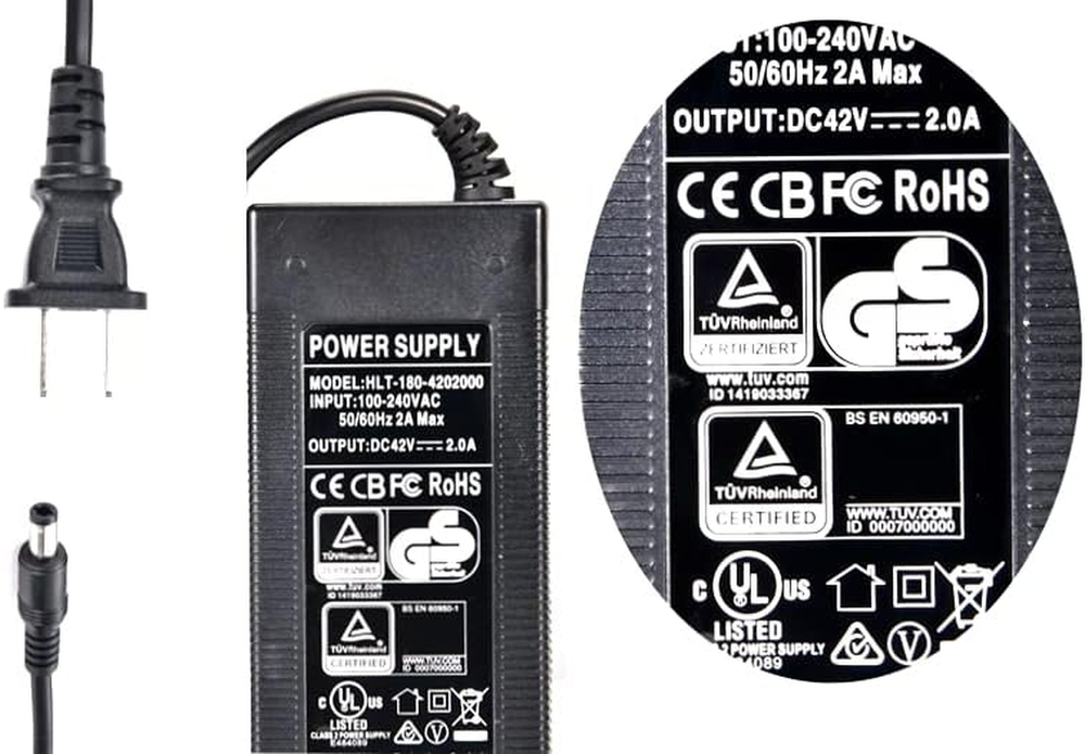 1.PARAMETER; 42V,2A.Note that the scooter with a battery voltage of 36V.The charger uses 42V voltage,The charger voltage must be greater than the battery voltage to charge normally. High current charge fast and short time. 2A>1.8A>1.5A. 2.SAFETY FRIST:If the charging is abnormal, please do not disassemble the charger without authorization.Please do not disassemble the charger without authorization.You should stop using it immediately And contact us. 3.DISPLAY: Indicates charging status with dual LED display. Red light means charging. Green light means charged/disconnect. Blinking light means start voltage is lower than the output start voltage.