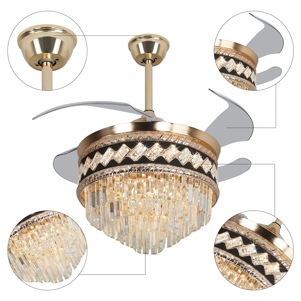 $ 72.99Modern Dimmable LED Ceiling Fan Light with Remote Crystal Chandelier