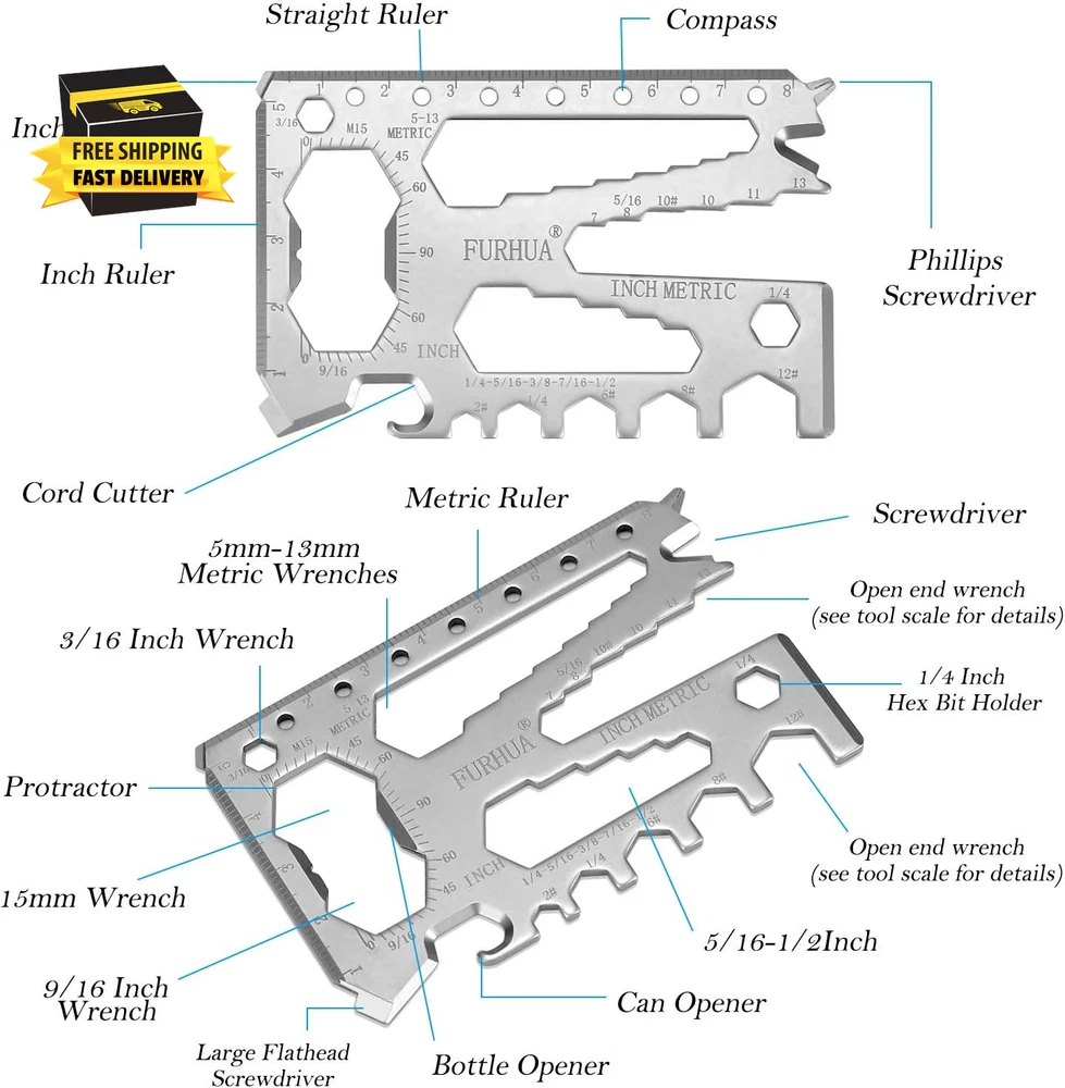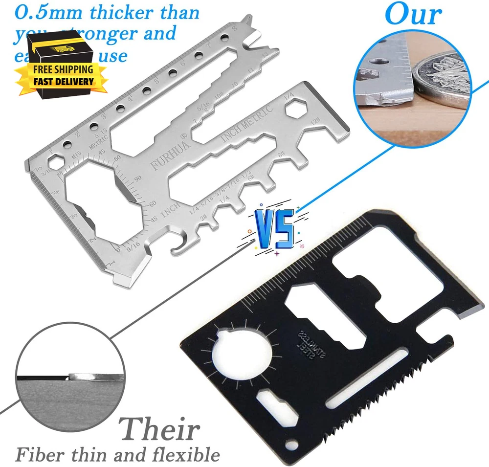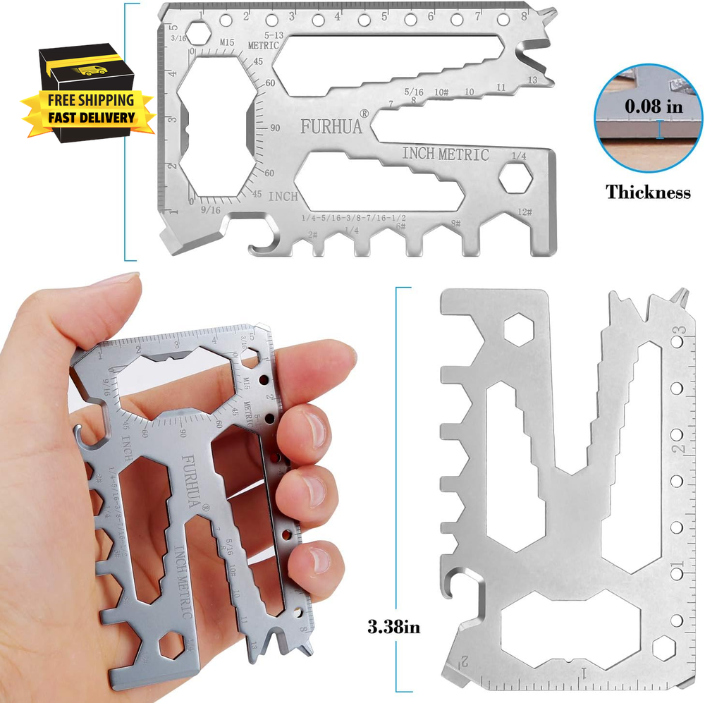 Store New Arrivals Add to Favorite View Feedback Contact Multitool Credit Card Sized Pocket Tool, 42-In-1 Wallet Multi Tool Card,Thicker and Harder, Gifts for Dad, Husband, Men - Bottle Opener | Cord Cutter | Screwdriver | Ruler | Scraper Etc. ⭐️⭐️⭐️⭐️⭐️ Description Item model number MT-001 Part Number MT-001 Batteries Required? No Number of Pieces 1 Color Silver Material Stainless Steel Country of Origin China Drive System Phillips Item Weight 1.76 ounces Batteries Included? No Folded Size credit card sized Included Components Bottle Opener Package Dimensions 5.8 x 3.8 x 0.5 inches Credit Card Survival Tool - 42 in One Multipurpose Beer Bottle Opener Portable Wallet Size Pocket Multitool - works as wrenches, screwdrivers, Inch & Metric Ruler, bottle opener, can opener, pry bar, cord cutter, hex bit driver, Phillips Screwdriver and more. Wonderful gift for DIY Handyman, Father/Dad, Husband Boyfriend, Valentine Gifts for Him Advantages: Pro improved tool card is 0.08 in thickness, 0.5mm thicker than others, sturdier High-Quality: Made of heat treated 420 stainless steel, ensuring maximum durability; satin finish, laser-etched permanent graphics Great tool to keep in wallet: Credit Card sized pocket multitool metal card, light enough to keep on you at all times, ideal for everyday use Worry-free service: Our products can provide a year of worry-free service. Product Description High-Quality: Made of heat treated 420 stainless steel, ensuring maximum durability; satin finish, laser-etched permanent graphics. Great tool to keep in wallet: Credit Card sized metal card, light enough to keep on you at all times, ideal for everyday use. Whether you’re working in the garage, around the house, or out in the woods you'll have a toolbox in your wallet. The Furhua Multifunctional Tool has 42 different functions and works as wrenches, screwdrivers, bottle opener, can opener, pry bar, cord cutter, hex bit driver, Phillips Screwdriver and more. No Sharp or Jagged Edges The smooth, flat edges provide plenty of gripping options when using the tools. Just grip it and torque it. Item Dimensions: L3.38'' * W2.16'' * H0.08'' Thicker and Sturdier Pro improved tool card is 0.08 in thickness. Easy to grip Protected cord cutter Won't cut your hand or wallet Won't snag in your pocket ABOUT US We offer the best prices around on high quality products. Our E-store includes media such as books, movies, music and games while offering electronics, toys, sporting apparel, clothing, tools, general home, garden items and more. SHIPPING We are always working hard to ensure your package arrives as soon as possible. Please understand that some factors like weather, high postal traffic, and the performance of shipping companies are outside of our control. We offer free shipping to the lower 48 states and ship within 2 business days of payment, usually sooner. We do not accept P.O. Boxes. Please provide a physical address. For shipping outside of the continental USA, we only use eBay's Global Shipping Program.The item is shipped to KY and then sent to the rest of the world. International customers are responsible for all duties and taxes. Continue to check out in order to calculate costs for shipping the item to your country. Messages regarding eBay's Global Shipping Program MUST be directed at eBay EXCLUSIVELY. RETURNS We offer a 30-Day Return Policy on items which you are not completely satisfied with. You have the option for a full-refund or an exchange of the item. No returns are available on items shipped outside of the USA. PAYMENT We accept PayPal. CONTACT US This page content is yet to come Please ad us to your favorite seller and visit again later Thank You CUSTOMER SATISFACTION We try our very best to make sure every customer is completely satisfied. If there's a problem, message us! We're happy to help. WE ACCEPT Copyright © 2021 AutoDS. | All Rights Reserved