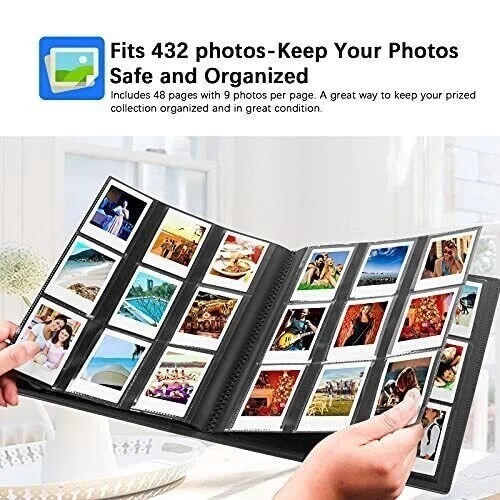 Brand Veicevol Occasion Mother's Day, Wedding, Anniversary, Birthday, Valentine's Day Color Black Material Poly Theme Christmas 【APPLICABLE MODEL】Designed for use with Fujifilm Instax Mini Series cameras. Suitable for fujifilm instax mini 11 12 90 70 50S 26 25 9 8+ 8 7S instax flim camera, mini LINK /Share SP-1 printer, for Polaroid Snap/ Snap Touch/ PIC-300/ Z2300 instant cameras & Mint and Zip photo printers. 【LARGE CAPACITY- STORE 432 PHOTOS】Hold 432 films in total, for Mini photo album contains 48 individual pages with 9 photos per page, opens like a book for easy viewing. A great way to keep your prized collection organized and in great condition. 【ULTIMATE PROTECTION YOUR FAVORITE PHOTOS】The album cover is constructed of sturdy yet flexible poly with very strong and not easy to tear. Side loading pocket design to prevent cards from easily falling out. Elastic strap holds the album shut when not in use. Protect your favorite