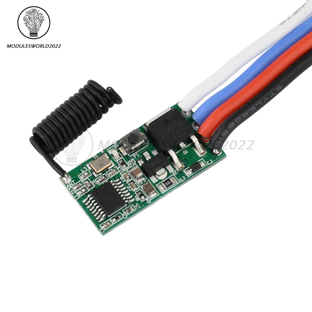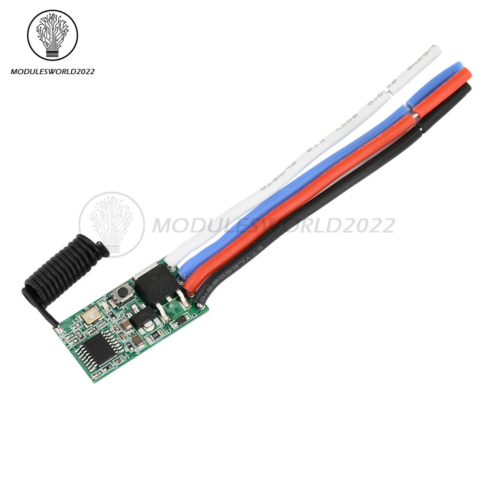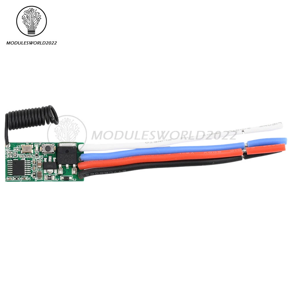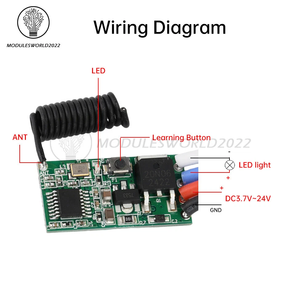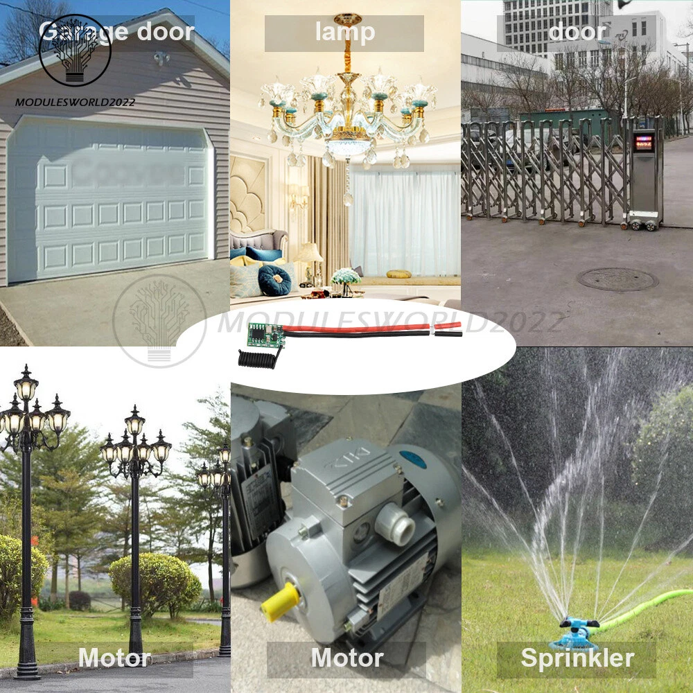 Store Categories Store Categories Other Product View Details Features 1. Easy to use, clear and simple wiring at a glance, stable and reliable performance, high sensitivity, long distance, low power consumption. 2. Extremely easy to set and reset, with 4 operation modes (momentary/toggle/locked/delay mode) programmable. 3. The signal of the wireless switch can pass through walls, floors and doors, and can control the receiver stably at a reliable distance. 4. High load capacity: Maximum load is 2A, which can effectively control high power LED lights and electrical appliances. 5.Application scope: wireless remote control switch, remote motor control, security system, access control system, smart home, etc. Specification Working voltage: Transmitter module: DC 3V-24V Receiver module: DC 3V-24V Frequency: 433-433.92MHz Transmit power: ≥10 dBm Transmitting distance: 100m-300m (open and unobstructed) Transmit power consumption: 5-6mA, no power consumption when not transmitting signals Package includes 1 x Module Shipping Policy Payment Method Returns Policy Shipping Policy Payment Method Returns Policy Home Payment Shipping About us Contact us Copyright©2018 datacaciques Home Payment Shipping About us Contact us Store Categories Store Categories Other Product View Details Features 1. Easy to use, clear and simple wiring at a glance, stable and reliable performance, high sensitivity, long distance, low power consumption. 2. Extremely easy to set and reset, with 4 operation modes (momentary/toggle/locked/delay mode) programmable. 3. The signal of the wireless switch can pass through walls, floors and doors, and can control the receiver stably at a reliable distance. 4. High load capacity: Maximum load is 2A, which can effectively control high power LED lights and electrical appliances. 5.Application scope: wireless remote control switch, remote motor control, security system, access control system, smart home, etc. Specification Working voltage: Transmitter module: DC 3V-24V Receiver module: DC 3V-24V Frequency: 433-433.92MHz Transmit power: ≥10 dBm Transmitting distance: 100m-300m (open and unobstructed) Transmit power consumption: 5-6mA, no power consumption when not transmitting signals Package includes 1 x Module Shipping Policy Payment Method Returns Policy Shipping Policy We will arrange shipping for you within 24 Hours after payment cleared except the holidays. -We ship items to Worldwide. Thank you! -we will ship out the order in 1-2 business days after payment cleared .Since it is international shipping ,delivery time is about 15--28 business days to arrive to most countries. Payment Method We accept PayPal payment ONLY, and must be received within 5 days from the date of purchase. 2. It is easy and safe for you to pay by credit cards, debit cards, bank transfers and PayPal account balances. 3.Buyers are responsible for import duties,custom fees and taxes, if any, please check your country. Returns Policy 1.We believe our items are so outstanding. We are convinced you will be happy with your Purchase. 2. If you do not satisfy with our items. Please simply return to us within 30 Days in original condition. Just pay for the returned postage. Then we can issue full refund or resend the item to you after the returned item arrived at our warehouse. 3. Please include your eBay ID and item number with any email requests.