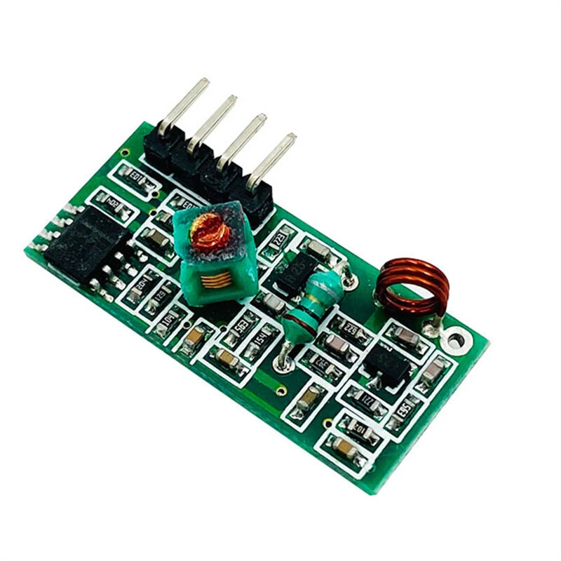 433Mhz RF Wireless Transmitter Module and Receiver Kit 5V DC 433MHZ Wireless For Arduino Raspberry Pi /ARM/MCU WL Diy Kit Product Features 1.Support ASK / OOK modulation, the receiver sensitivity of -108dBm; 2.Operating frequency: 433.92 MHz, bandwidth of about ± 150KHz; 3.mains input voltage range: 2.2V-5V; Working current: Type :2.1mA (Requirement:VDD=5V) ;Type :2.1mA (Requirement:VDD=3V) 4. Quiescent Current: 1uA 5. Low power consumption; 6. good selectivity and spurious radiation suppression, and easy to pass CE / Fcc international certification; 7. Good local oscillator radiation suppression, multiple receiver module to work with (ie, more than single income) and will not interfere with each other, used together without affecting the receiving distance; 8. multiple transmission rates, the general module for 2KHz, up to 10KHz; 9. Temperature range: -40-85 °C 10. ultra-small size of 30× 9× 1 (mm) (can be customized according to customer) 11.External antenna: 32CM single core wire, wound into a spiral 10. ultra-small size of 30× 9× 1 (mm) (can be customized according to customer) 11.External antenna: 32CM single core wire, wound into a spiral