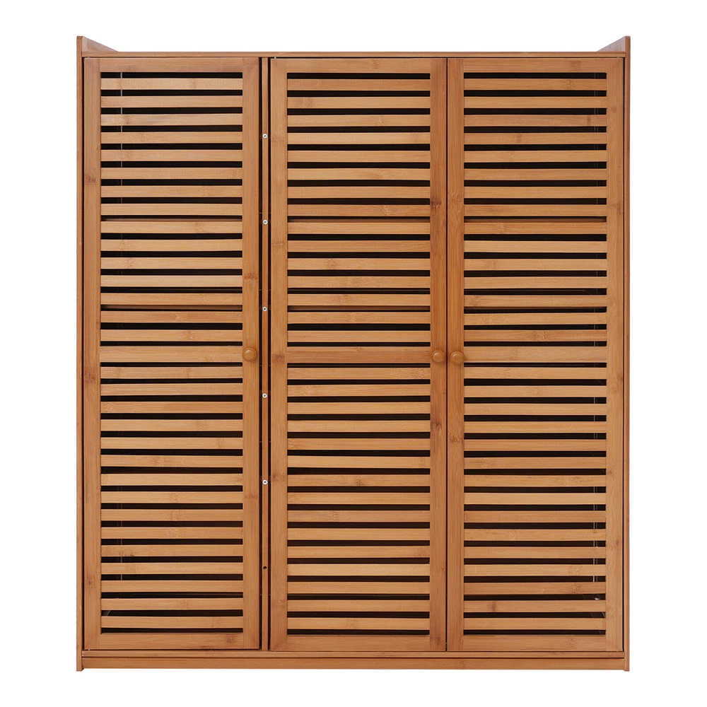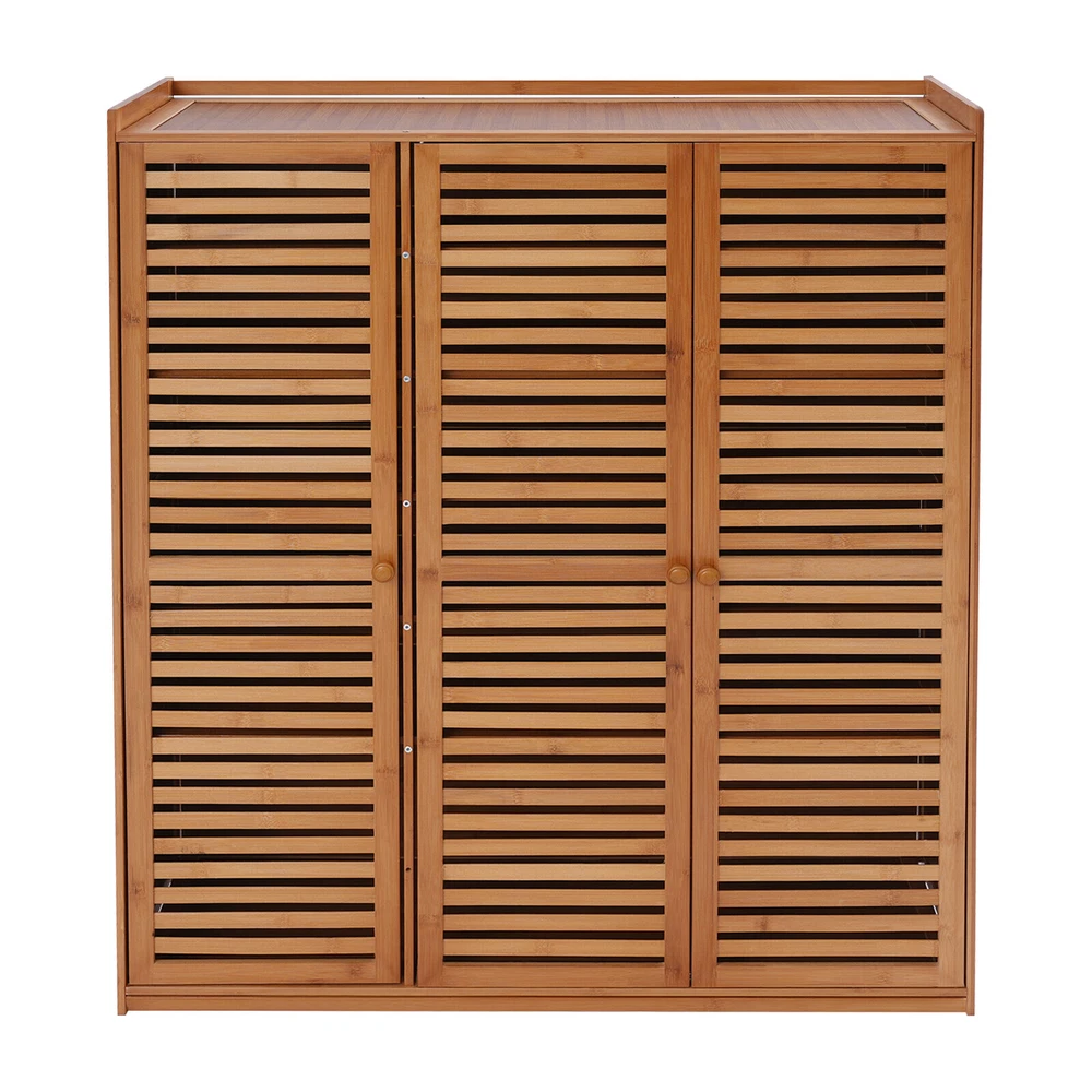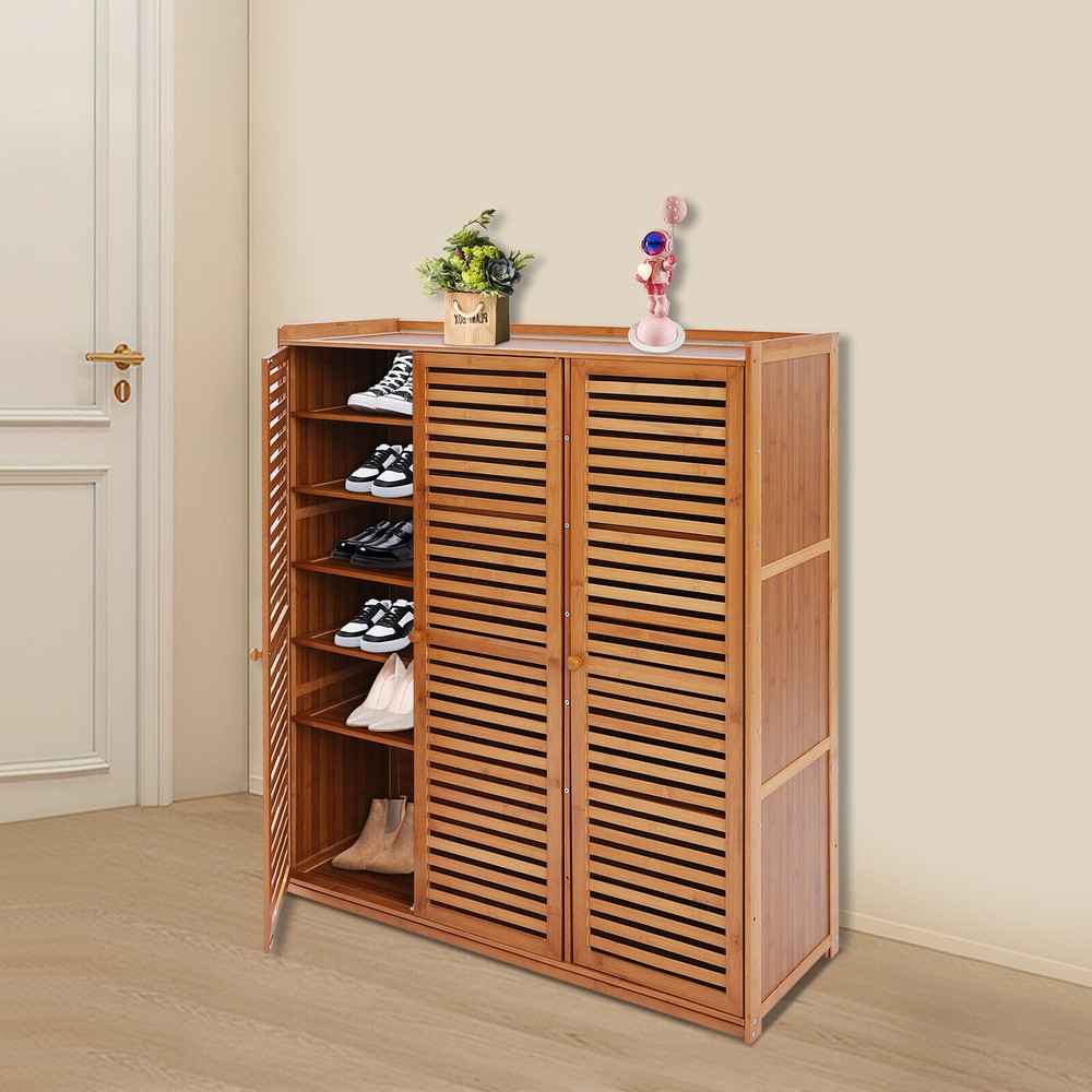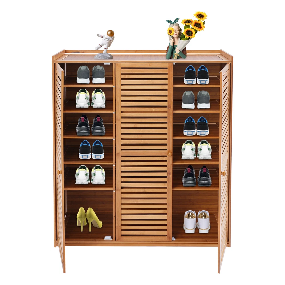 This shoe cabinet is a game-changer for keeping entryways tidy! The sturdy bamboo and density board construction feels premium, and the 7-tier design holds so many shoes without cluttering the space. The 3-door cabinet keeps everything hidden but easily accessible. Love how it adds a warm, stylish touch while keeping my home organized—perfect for small spaces!