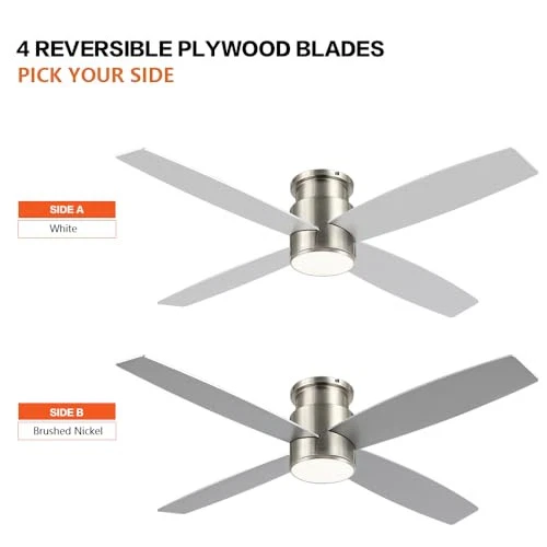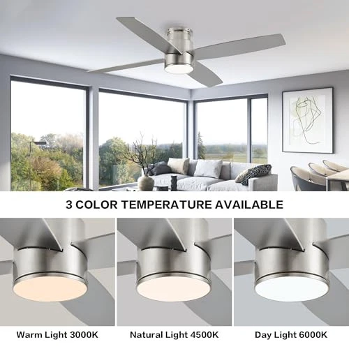 Menu 1. We require immediate payment. 2. We currently accept payment via eBay managed payments only. 3. Once payment is cleared, we will dispatch your shipment within 1-3 business days. Please refer to the "Shipping" tab for more information regarding shipping speed to your destination. 44 Inch Flush Mount DC Ceiling Fan with Lights and Remote, 4 Reversible Blades, Ultra Quiet 6-Speed DC Motor, Hugger Low Profile Indoor Ceiling Fan, Brushed Nickel Finish Product description MODERN / CONTEMPORARY: The hugger ceiling fan provides the modern look you long for with beautiful simplistic charm. Having a blade span of 44 inches, this fan is perfect for small to medium sized rooms such as bedrooms, kitchens, living rooms and much more. DUAL-FINISH REVERSIBLE BLADES: The style is up to you. This ceiling fan comes with a different finish on each side of the blades. One side comes in Silver finish, while the other side showcases White finish. Pick the look that best fits your space. QUIET & REVERSIBLE: Control the 6 speed settings of your fan as well as the light output all from the convenience of an easy-to-use remote control (included). Change the direction from downdraft mode during the summer to updraft mode during the winter. LED LIGHT KIT & DC MOTOR: Integrated 24watt LED module. Remote adjusts color temperature to 3000K, 4500K, or 6000K. The Fans are made with incredibly efficient and completely silent DC motors and are up to 70% more efficient than traditional fans. LOW PROFILE DESIGN: Specially designed low-profile housing fits flush to the ceiling making it ideal for use in rooms with low ceilings less than 9'. Hugger ceiling fan. Fan height is only 7.5" ceiling to blades, 9.3" ceiling to bottom of light. PLEASE MESSAGE US IF YOU HAVE ANY OTHER QUESTIONS, AND MANY THANKS FOR READING ALL OF THIS. Copyright ©#. All Rights Reserved.