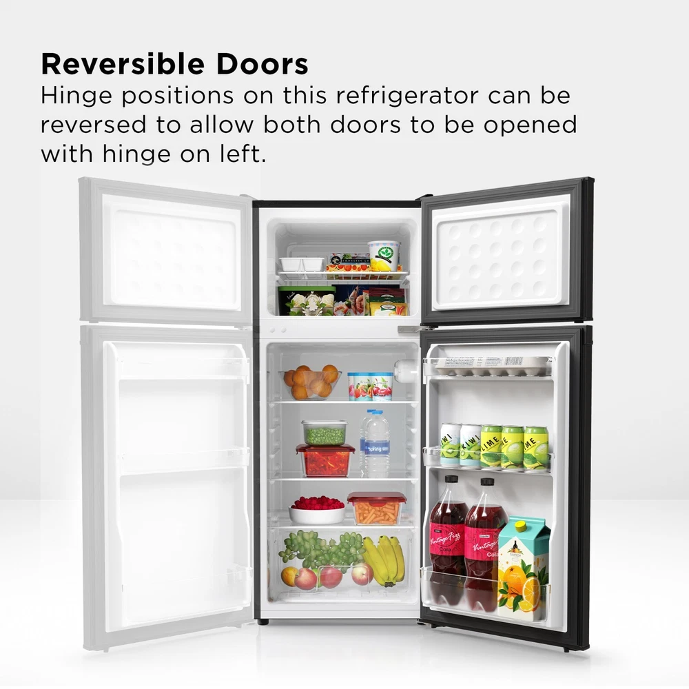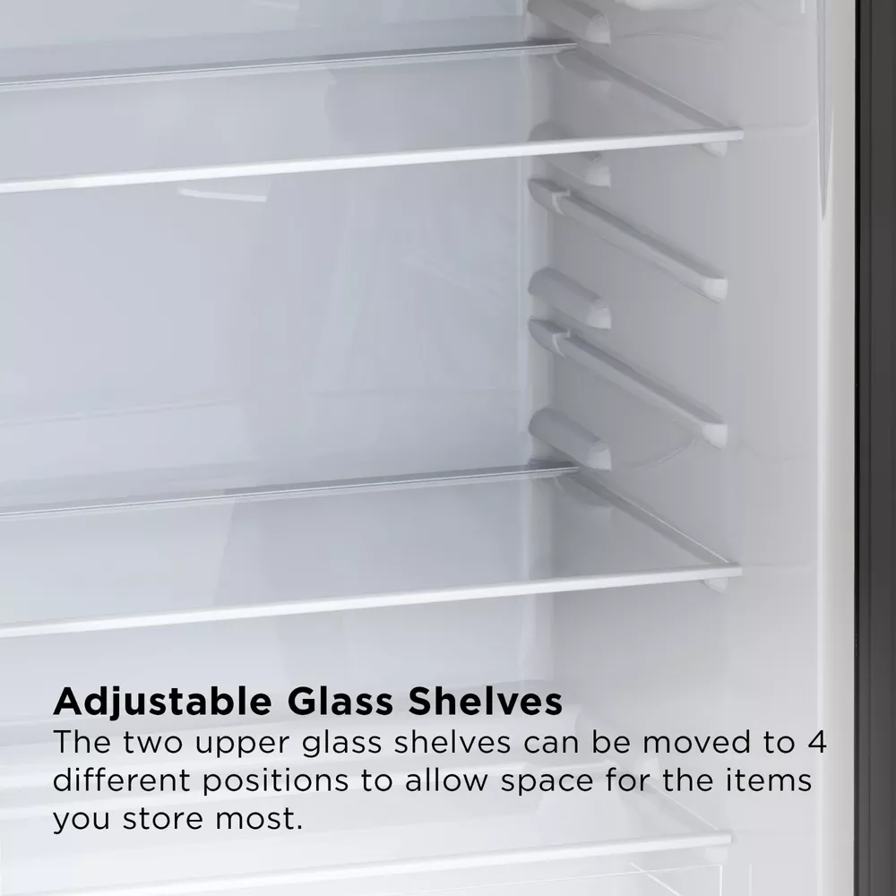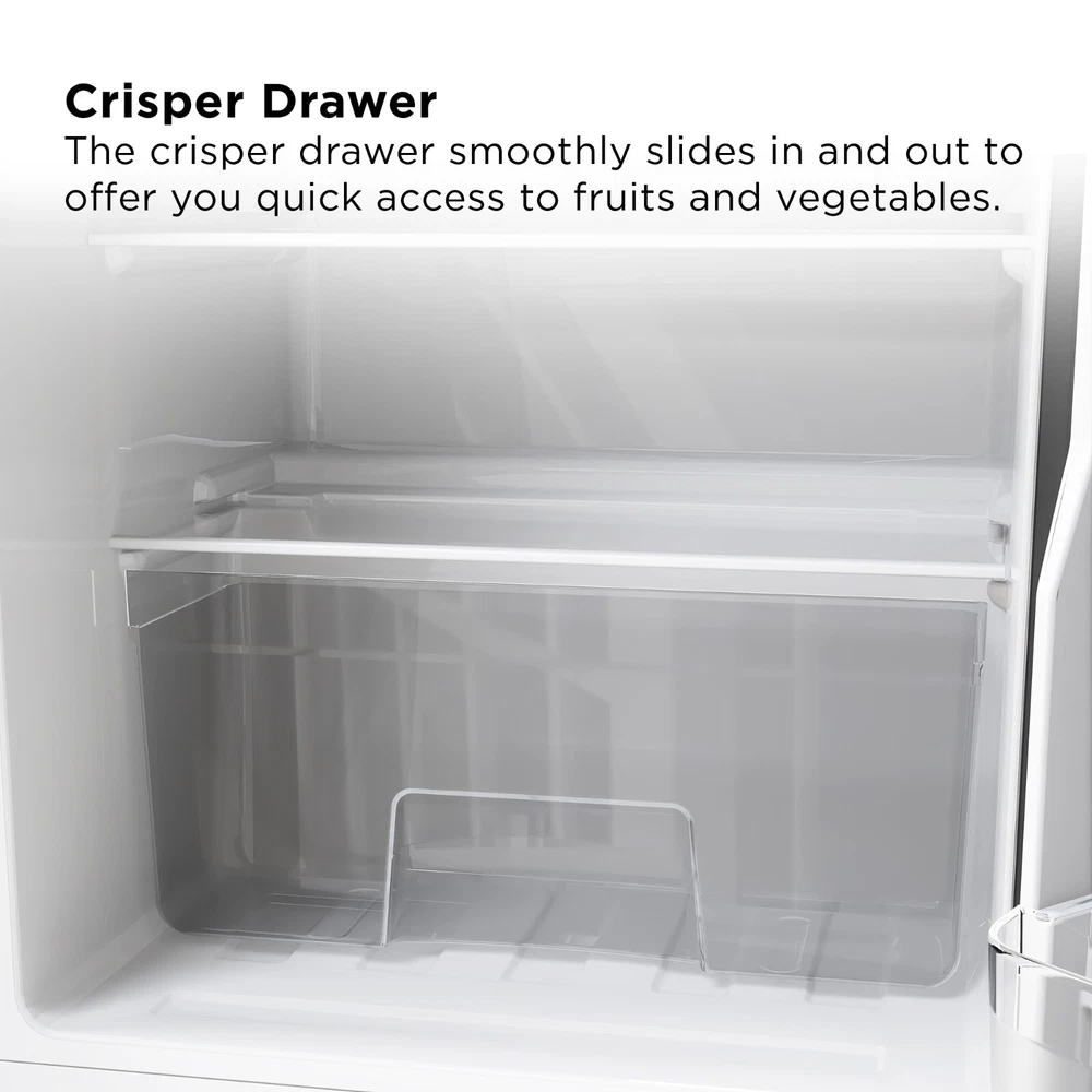 Product details TCL’s spacious 4.5 cubic foot capacity 2 door refrigerator model has separate compartments for fresh and frozen food items. With room for 2-liter bottles on the door, adjustable glass shelves, crisper drawer and freezer with wire shelf, there is space for plenty of food. Its compact size and reversible doors help this fridge fit into your space nicely. Whether at school, home or office, TCL compact refrigerators provide storage convenience and keep your foods cold and fresh Ample Food Storage – 4.5 Cu. Ft. Storage Capacity Versatile & Compact – Place TCL Mini-Fridges anywhere, whether that’s in your dorm room for quick access to food and drinks or in your living room for the ultimate entertainment experience. Reversible Door – Quickly and easily reverse the door swing Energy Star – Experience ultimate convenience in an energy-saving design. Temperature Control – Adjust the temperature to keep your drinks refreshingly cold and your food ready to heat. Frost-Free Refrigeration – Cooling design removes stall air and humidity to keep your drinks cold and frost-free