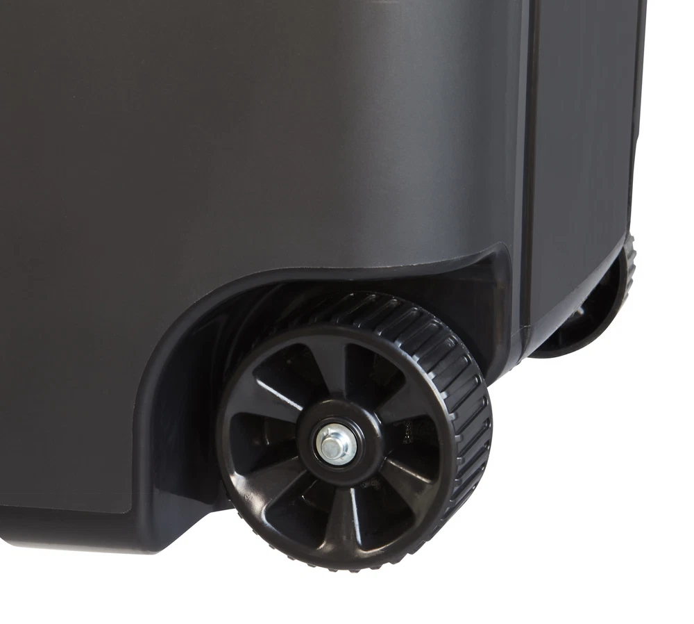 The 45 Gallon Wheeled Heavy Duty Plastic Garbage Can comes with a strongly secured lid attached with a convenient hinge. The attached lid clicks into place, ensuring the lid stays securely closed when not in use. Never worry about losing the lid in windy conditions. The easy grip handle with pass through divided handle design and the rugged wheels makes transporting your trash from the curb and back effortless. This heavy duty trash can is suitable for both indoor and outdoor storage. On Dec 22, 2024 at 17:41:45 PST, seller added the following information:
