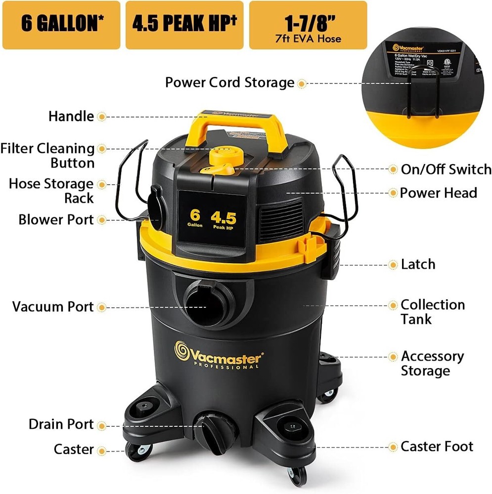 Compact 4.5 Peak HP Wet/Dry Vacuum with On-Board Accessories for All Floors ‹ › ‹ › ‹ › ‹ › ‹ › ‹ › ‹ › ‹ › Compact 4.5 Peak HP Wet/Dry Vacuum Perfect for All Floors Key Features: Powerful Performance: With 4.5 Peak HP, this vacuum delivers exceptional suction power for efficient cleaning. Generous Capacity: Equipped with a 6-gallon* polypropylene tank, designed for both wet and dry messes. Versatile Functionality: Easily converts into a blower, making it ideal for cleaning your workspace or yard. User Actuated Filter Cleaning System: Maintain optimal airflow and suction with a simple filter cleaning process, ensuring uninterrupted cleaning tasks. Organized Storage: On-board storage for hose, cord, and accessories keeps everything orderly and at your fingertips. Included Accessories: (1) 1-7/8-inch x 7-foot EVA Hose (2) Extension Wands (1) Floor Brush/Squeegee Nozzle (1) Utility Nozzle (1) Crevice Tool (1) Dust Bag (1) Fine Dust Cartridge Filter (1) Foam Wet Filter Why Choose Our Wet/Dry Vacuum? Transform your cleaning experience with our Compact 4.5 Peak HP Wet/Dry Vacuum. Designed to tackle the toughest tasks with ease, this powerful vacuum adapts seamlessly from jobsites to household cleaning. Its user-friendly filter cleaning system means you can maintain peak performance without interruptions. The handy organization of accessories ensures you are always prepared. Perfect for a variety of surfaces, it's your ultimate cleaning companion! Elevate your cleaning routine and order your Compact Wet/Dry Vacuum today! Shipping Free & Fast Shipping - We offer free shipping to most of the USA with a normal delivery time of 3-7 days. However, due to the current situation, additional delivery time (up to 3 weeks) may be required for some items. Alternative Carriers - We may use alternative carriers (e.g. USPS, FedEx, UPS, etc.) to ensure your package arrives safely and on time. Due to the use of multiple carriers, we are unable to provide a tracking number automatically. Handling Time - Orders are processed and shipped within 1-2 business days of receiving cleared payment. Shipping Restrictions - Shipping to Alaska, Hawaii, Puerto Rico, Guam, and other US territories may incur shipping charges or delivery restrictions. Please contact us before ordering, or your order can be refunded/cancelled. State Restrictions - There may be restrictions based on your state of purchase. For example, certain items may not be shipped to California due to state regulations. Contact for Tracking Updates - If you require tracking updates or have any concerns about the delivery of your order, please feel free to contact us, and we will be happy to assist you. Return Please see our eBay Return Policy. Thank you. Payment We accept all major credit cards, PayPal, and Apple Pay for your convenience. Your payment information is secure and encrypted to ensure a safe and seamless transaction. Please complete your payment within 3 days of purchase to avoid any delays in shipping. Feedback Your feedback is extremely important to us. We strive to provide the best products and customer service possible. If you are satisfied with your purchase, please take a moment to leave us a positive review. If you have any concerns or issues with your order, please contact us before leaving negative feedback. We are committed to resolving any problems and ensuring your satisfaction. Contact Us If you have any questions or concerns, please feel free to reach out to our customer support team. You can contact us through the eBay messaging system. We are available Monday to Friday, 9:00 am to 5:00 pm EST, and we will do our best to respond to your inquiry within 24 hours. Thank you for supporting our small family business! UPC: Not Set Unit Quantity: 6 gallon Features: Portable,Wet/Dry,On-Board Storage,Compact Design,Powerful Motor Included Accessories: Crevice Tool,Extension Wand,EVA Hose,Floor Brush/Squeegee Nozzle,Utility Nozzle,Dust Bag,Fine Dust Cartridge Filter,Foam Wet Filter,1-7/8-inch x 7-foot EVA Hose,2 Extension Wands,1 Floor Brush/Squeegee Nozzle,1 Utility Nozzle,1 Crevice Tool,1 Dust Bag,1 Fine Dust Cartridge Filter,1 Foam Wet Filter Brand: Unbranded Type: Canister/Cylinder Model: Wet Dry Vacuum Smart Home Protocol: Not Set Runtime: Not Set Smart Home Compatibility: Not Set Charge Time: Not Set MPN: Not Set Color: Black Power: 1320 W Filters: Cartridge Voltage: 120 V Country/Region of Manufacture: Not Set Capacity: 6 gallons Protection Plan: No Coverage Manufacturer Warranty: Not Set Item Weight: 20.1 lb Unit Type: Unit Cord Type: Not Set Bagged/Bagless: Not Set