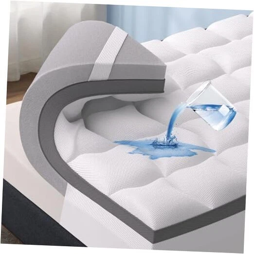 Return Policy Fast Delivery Trusted seller 4.5" Memory Foam Mattress Topper Queen Size, Dual Layer 2.5" Gel Memory Foam & 2" Waterproof Mattress Pad, Deep Pocket Fits 8"-21" Mattresses, Cooling Pillow Top Cover, Medium Support Product Description 【DUAL LAYER COMFORT DESIGN】 The gel memory foam mattress topper features a dual-layer design, combining 2 inches of extra soft BlendTek+ fiber pillow top with 2.5 inches of supportive gel memory foam. This innovative structure provides the perfect balance of support and softness, ensuring a restful and comfortable sleep every night. 【RELIEVE BACK PAIN & SUPPORT】 Our mattress topper is meticulously crafted to alleviate back pain by offering flexible support to every contour of your body. The high-density memory foam conforms to your body's natural curves and embraces every pressure point. This tailored support maintains proper spine alignment and enhances overall sleep quality, ensuring a rejuvenating rest each night. 【WATERPROOF BUT BREATHABILE】 The TPU waterproof layer protects your mattress while ensuring 360° breathability and softness, thanks to the air mesh fabric. Beneath the mattress protector, the gel-infused memory foam layer relieves cooling by dissipating heat and regulating temperature. This combination of waterproof protection and breathability prevents overheating and promotes better air circulation, creating a fresh sleeping environment for you. 【EXTRA DEEP POCKETS & STABILITY】 The mattress topper is equipped with extra deep pockets, accommodating mattresses up to 21 inches thick for easy installation and a secure fit. The non-slip straps ensure that both layers are firmly secured in place, preventing slipping or shifting during use. The bottom features all-around wider 1.5-inch elastic bands, providing long-lasting durability and ensuring the topper stays in place night after night. 【USAGE TIPS】 The detachable mattress pad is machine-washable for easy maintenance. To ensure proper use, wash only the mattress pad separately, as the memory foam layer is non-washable. Before use, lay flat at a ventilation opening for 48-72 hours to ensure it's fully stretched and odorless. Shipping Returns Payment Shipping Shipping is FREE to all addresses other than APO/PO boxes in the lower 48 states. All our stock ships from US-based warehouses. Shipped via USPS or UPS (depending on location and package weight) Unless stated otherwise, all orders will ship within 24-72 hours of your payment being processed. Check our feedback to see the great reviews of FAST shipping we offer. Returns Seller does not accept returns Payment We currently accept payment via eBay managed payments only. Once payment is cleared, we will dispatch your shipment within 1-3 business days. Please refer to the "Shipping" tab for more information regarding shipping speed to your destination.