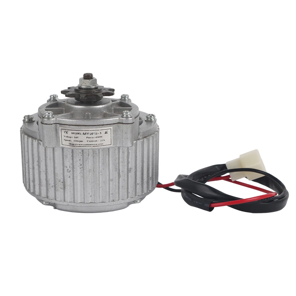 Feature: 1. DC brush motor, easy to control, can provide stable speed, sensitive braking and steering control. 2. The motor shell is made of durable metal material, strong and reliable, protect the internal circuit, good for heat dissipation and avoid thermal overload. 3. 9 - tooth sprocket for 410 chains, 1/2 inch (12.7 mm) pitch. 4. Suitable for DIY bike lover, the drive compatible with the standard bike chain (1/2 inch separation distance ). 5. Professional manufacturing, directly replace your old or broken one. 6. Equipped with 12# power cord, easy to install and operate Specification: Item type: Electric Motor Material: aluminum alloy Weight: Approx. 2210g Color: As picture shown Type: Brush. Rated voltage: 24V DC Output power: 450W Rated speed:420 RPM Rated current: 25A Chain wheel: 410-9T Transmission ratio: 7.18:1 Sprocket output : 1.43 N.m Package List: 1 x Electric Motor 1. Our listing price includes the value of goods,packaging cost,and export taxes,not including international duties. 2. duties,taxes,and charges are not included in the item price or shipping fee. 3. T he duties are buyers' responsibility .Please check with your country's customs office determine what these additional costs will be prior to your purchase. 4. All disputes arising from the duties will be submitted to ebay for solution. 1. Any questions, pls. contact us via ebay message or email us. We will reply your message within 48 hours. If you do not receive our reply within 48 hours, pls. post a message again because sometimes our message system may block some emails. 2. If you are satisfied with our service, pls. kindly leave us a positive feedback and give us the Detailed Seller Rating with all " 5 " in very area 3. Our aim is to provide Level Customer Service, your recognition will encourage us greatly and serve you better. We strive to keep all our customers satisfy. We will do our up most to exceed your expectations in customer service, communication and dispatching of your orders. On Jan 9, 2025 at 09:58:42 PST, seller added the following information: