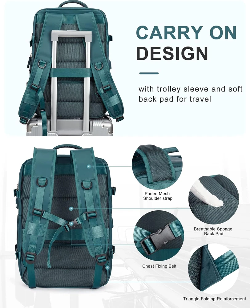 This backpack is a game-changer for travel and work! The spacious design fits everything I need, including my laptop, without feeling bulky. The quality materials and comfortable straps make it perfect for long trips, and it easily fits under plane seats. Love the sleek dark blue color—it looks professional yet stylish. Highly recommend for anyone who needs a durable, functional, and flight-approved bag!