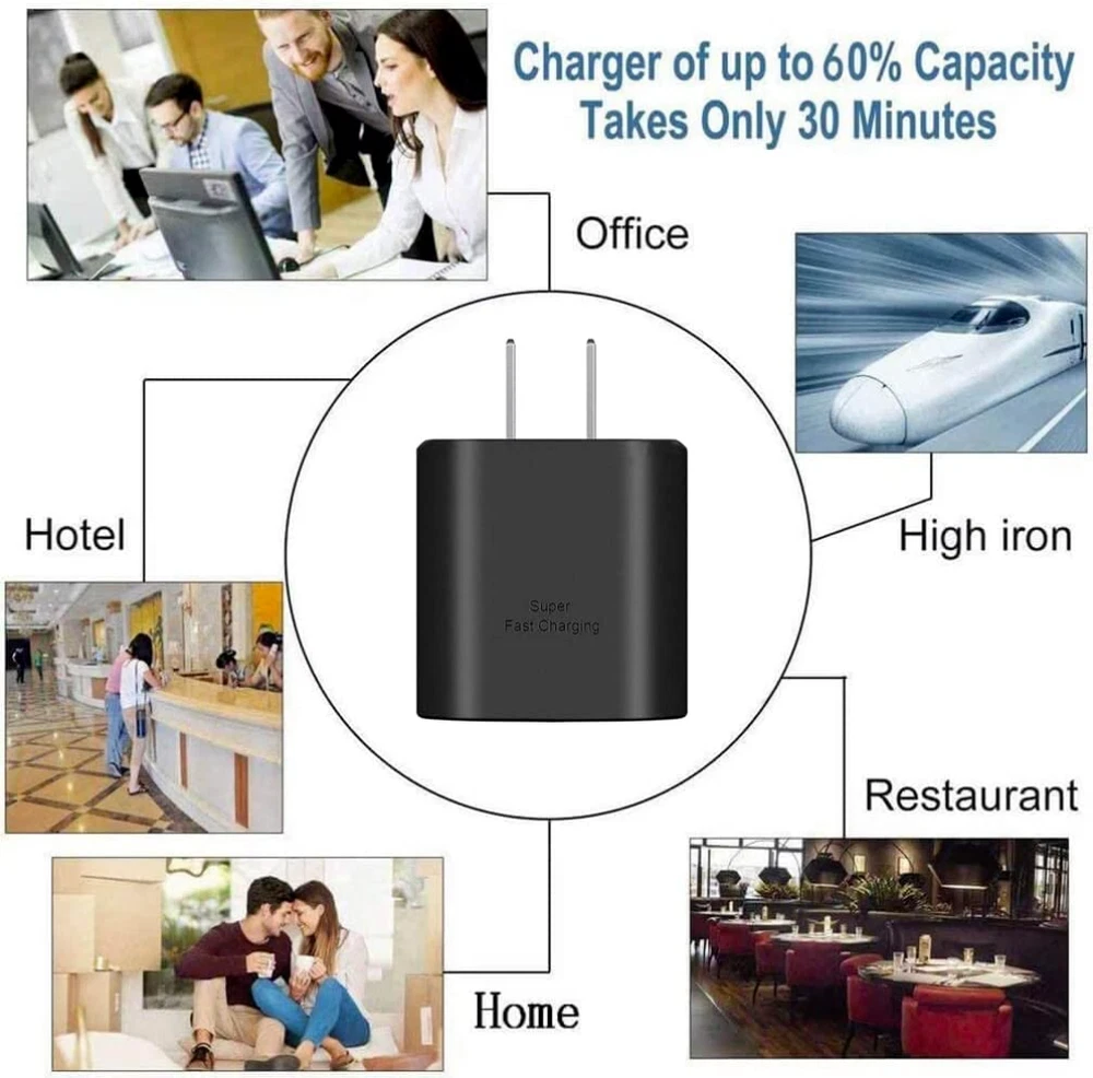 45W Wall Charger Specification: [Type]: 45W PD3.0 fast charge charger [Output power]: 45W [Material]: Fireproof ABS Plastic + PC [Port Type]: USB-C [Input voltage]: AC 100-240V 50-60Hz [Working temperature]: 0-70℃ [Output voltage]: PDO : 5V/3A or 9V/3A or 15V/3A or 20V/2.25A [Output current]: PPS : 4.05A(3.3-11V) or 2.8A(3.3-16V) or 2.1A(3.3-21V) [Output protection]: Over-current protection,short circuit protection, overvoltage protection, overheat protection. 45W Wall Charger Feature: USB-C PD3.0/QC3.0 Fast Charger 1.Universal Compatibility: 45W PD USB Type C wall Charger , PD3.0 QC3.0 dual technology perfect work compatible iPhone 14 series,iPhone 13 series/Samsung S22/Note 20 etc. 2.Safe Charging & Syncing -- Type C USB Awall adapter with intelligent chip automatically detects and delivers the optimal charging power for connected devices, to guarantee fast charging while protecting battery life. Over-current, over-voltage and short-circuit protection effectively protect your devices from damage and ensure the safer charging overnight. 3.Compact Size: comes in a pocket-friendly size, easily portable and lightweight, can go wherever the journey takes. 4.No Charging Cable in package, You need to use your original charging cable. Fast Charging Cable Features: 1. Type C to Type-C Cable: USB-C connector offers a user-friendly reversible design, fast Charging and transferring, Up to 480 Mbps data transfer speed; power output up to 3Amp. 2. Support QC and PD fast charge, support data transmission. Fast charging your USB-C laptops, tablets and smartphones by using 60W 45W 30W 18W 15W USB-C Power Adapters, suports PD 3.0 and QC 3.0 fast charging. Data transfer speed is up to 480Mbps. 【Note: Not support video output.】 3. Suitable for charging mobile phones, earphones, iPad, laptops (over 60W recommended 100W charging cable) 4. Strong toughness, not easy to break when bending 6. Anti-fracture design, upgraded 3D aluminum connector and unique laser welding technology can ensure that the metal parts will not break. 6. The high-quality nylon braided cable has increased durability and no tangles. The special stress relief design can withstand 10,000+ bending tests. Compatible device model: -For iPad Pro: For iPad Pro 12.9" 4th Gen (2020), iPad Pro 12.9" 3rd Gen (2018), iPad Pro 11" 4th Gen (2020), iPad Pro 11" 3rd Gen (2018) which is USB C port. -For Samsung: Galaxy S22/S22+/S22 Ultra, Galaxy S21/S21+/S21 Ultra, Galaxy S20 FE/S20/S20+/S20 Ultra, S10, S10+, S10e, S9, S9+ Plus, S8, S8+ Plus/Active, Note 20/20 Ultra, Note 9, Note 8, Note 7... -For Google: Pixel, Pixel 2, Pixel 3, Pixel 4, Pixel XL, Pixel 2XL, Pixel 3XL, Pixel 4XL, Pixel 3A, Pixel 3A XL... -For LG: G7 Thing, G6, G5, Stylo 4, V20, V30, V35, V30S, V40 ThinQ Plus... -For Motorola: Moto G6, G6 Plus, G7 Plus, G7 Power... -For other Type-C devices Package includes: 45W Wall Charger+3FT 5A Dual Type-C Fast Charging Cable