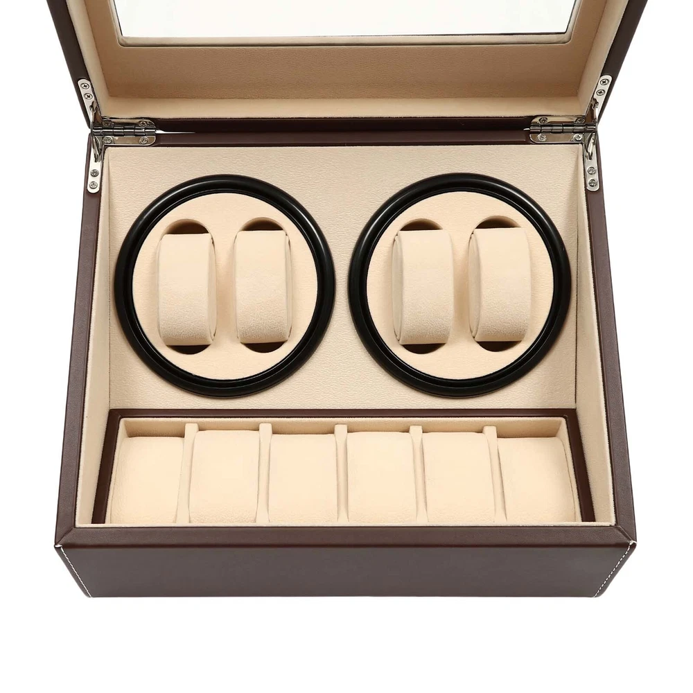 Specifications: Color: Black Box Material: Leather(Surface) + Beads Cashmere (Lining) Overall Dimensions: 12"x 9"x 7"(L x W x H) Removable Pillows Size: About 2 1/2"x 1 1/4" x 1 1/2"(L x W x H) Display Window Size: 10"x 6" (L x W ) Watch Slots Size: 2.75" x 1.25" x 2"(L x W x H) Package includes: 1 x 4+6 Automatic Watch Box 10 x Removable Pillows 1 x Power Cord 4+6 Automatic Rotation Leather Wood Watch Winder Storage Box Display Case Description Description: This Is Our Luxurious 4+6 Automatic Rotation Watch Box for Preserving All Your Fine Timeless Watch Piece. It Is Attractive for Its Special Fashion Design, First-class Workmanship and High Quality Material. It Can Display Tastefully Winds for Four Watches, While Offering Convenient Storage for an Additional Six Watches. It’s Perfect for Keeping and Displaying Your Watches Whatever in a Shop or on Your Dressing Table. It’s Also Ideal for Home Jewelry Decoration. It Will Be a Great Gift for Any Watch Enthusiast. Don’t Hesitant to Buy It! Features&Highlights: Brand New and High Quality 4+6 Automatic Rotation Watch Display Storage Box Special Fashion Design Compact and Elegant Appearance. Removable, Plush Pillows Make Room for Other Accessories. Keeping Watches Organized, Suit Your Needs Perfectly. Finished with Smooth Lines and Beautiful Craft Smooth Opening Hinged Lid Extremely Silent Motor Clear Glass Viewing Window Alternating Clockwise and Counterclockwise Movement(Rotates Clockwise for 2 Minutes, Rests for 6; Moves Counterclockwise for 2 Minutes, Rests for 6, and Repeats.) Specifications: Color: Black Box Material: Leather(Surface) + Beads Cashmere (Lining) Weights&Dimensions: Overall Dimensions: 12"X 9"X 7"(L X W X H) Removable Pillows Size: About 2 1/2"X 1 1/4" X 1 1/2"(L X W X H) Display Window Size: 10"X 6" (L X W ) Watch Slots Size: 2.75" X 1.25" X 2"(L X W X H) What's Included? 1 X 4+6 Automatic Watch Box 10 X Removable Pillows 1 X Power Cord Description Warm Note:The power cord is in the foam board, please be careful not to drop it directly. Welcom to ryxjanuary Payment Delivery details Terms of sales About us Contact us Payment We accept ebay payment 。 Fees such as import duties, taxes are not included in the item price or shipping costs. These charges are the buyer's responsibility. Delivery details Shipping: 2-9 working days to: USA Terms of sales We maintain high standards of excellence and strive for hundred percent customer satisfaction. Feedback is very important to us. We hope that you contact us immediately before you give neutral or negative feedback, so that we can address your concerns. It is impossible to address issues if we do not know about them! About us Your satis faction is our ultimate goal. We work hard to earn your trust and future business. Our certified technicians have tested each item before shipping. The unit comes with 1 year limited warranty on all manufacturing defects. a) If you receive a defective item, you may return it or ask for a discount. Please contact us within 14 days after you receive the package. b) What you returned must be intact and in its original packaging as re? u. Customer is responsible for shipping costs of the returned item. c) We will cover the cost of shipping back t with the shipping rate indicated in the registration page. We will send you a new unit or refund the full payment you paid. Thank you. Contact us Business Hour Business Hour: Monday To Friday: 8:30 AM to 5:00 PM (Beijing China time) Due to time zones, our reply to your questions may not be immediately. But within above working time, we will reply your email within 24 hours. If it's non-workdays, please kindly be patient and wait till Monday. Please contact us with ebay message. Please feel free to contact us if you have any questions. Monday To Friday: 8:30 AM to 5:00 PM (Beijing China time) Due to time zones, our reply to your questions may not be immediately. But within above working time, we will reply your email within 24 hours. If it's non-workdays, please kindly be patient and wait till Monday. Please contact us with ebay message. Please feel free to contact us if you have any questions. Feature 2 Special Fashion Design shipping notice Can not ship to Puerto Rico,Alaska/Hawaii !Features Compact Design,Unique Appearance,High quality Features ★Nice and Practical, High Quality Packaging★ Brand ( 品牌 ) SENDERPICK Feature Stable characteristics, high reliability Capacity 4+6 Material Leather Type Watch Cabinet Color Black Overall Dimensions 12"x 9"x 7" Brand SENDERPICK MPN Does not apply