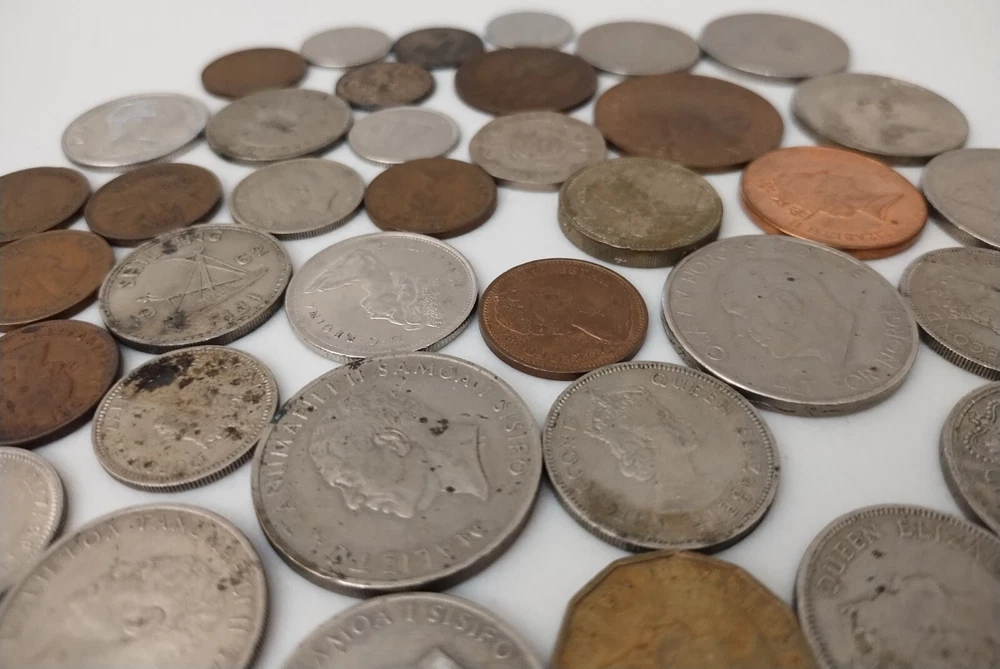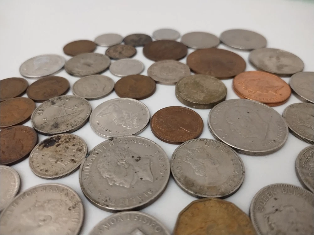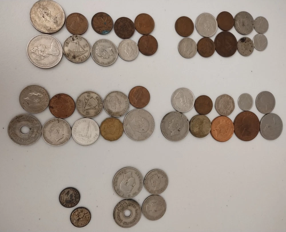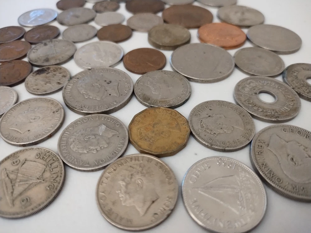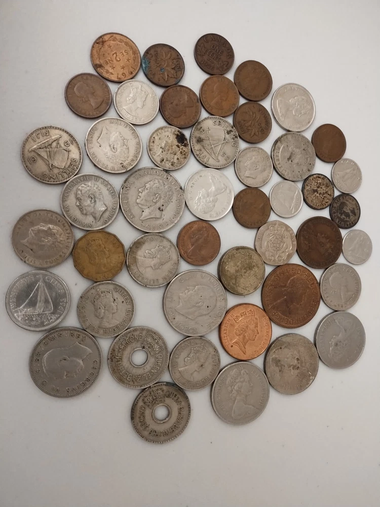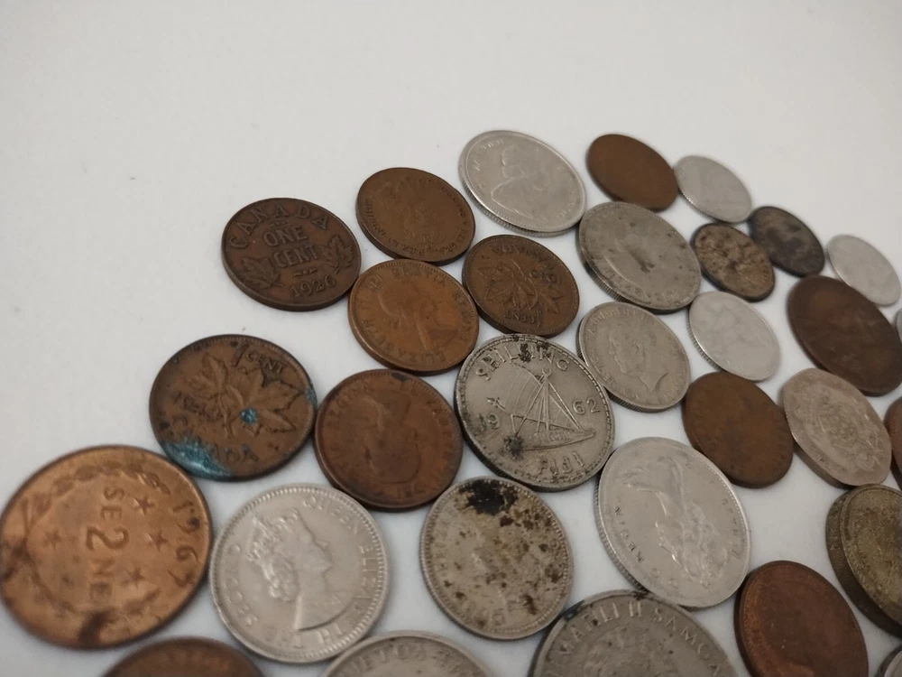 Total of 46 International Coins from: Britain Canada Bahamas Fiji Samoa Norway Couple coins have silver content