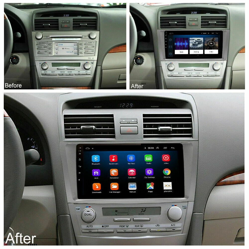 Note: If your car has the factory rearview camera or factory power amplifier, you need to pay extra $20 to get higher version cable with canbus. 4+64GB Android Auto CarPlay GPS Navi For Toyota Camry 2007-2011 Car Stereo Radio With powerful Android 13.0 system (4+64GB) , free download lots of apps. Compatible Vehicle: this car stereo is for Toyota Camry 2006, 2007, 2008, 2009, 2010, 2011 Wireless Carplay & Wireless Android Auto Wireless Carplay : You can choose wired connection or wireless connection to carplay, connect to Apple mobile phone, access mobile phone address book, mail, notification, map navigation, music, video and other information, and realize voice control. Wireless Android auto : The Wireless Android auto car system can closely integrate the user's Android phone and player, and realize navigation, make calls, send and receive information, listen to music and other operations through data cable connection; Support On-line map, such as google map, sygic and so on Support Hand-free phone calling and listen to Phone music through Bluetooth Build-in wifi module,can connect to your phone hot spots Support steering wheel control, you can set the buttons in SETUP menu. Find obstacles in time, give you a safe driving environment Specifications General - Power Supply: DC 12V - Max. Current: 10A Screen Size: 9inch Type - 2 Din System - Operation System: Android 13 - CPU: Quad Core - ROM: 64GB - RAM: 4GB - Extended USB: Support USB Disk up to 32GB Display - Touch Screen: Yes - Resolution: 1024*600 - Capacitive or Resistance Screen: Capacitive - Built-in Clock and Calendar: Yes, show real time and can use network-provided time - Main Menu Status Bar display: Can be changed to Music/Radio/Stereo Player and Clock/Date/Week WiFi - WiFi: Built-in WiFi Modem, support 802.11b/g/n Internet - Explorer: Opera, UCWeb, SkyFile, Dolphin and more explorer for your selection - Online Entertainment: Online Video, TV, Movie, Music, Radio, Video Chat - Online Navigation: Online Google Maps Navigating - Online Games: Yes, online play or you can download it from google play store - Online Communication: WeChat, Twitter, Facebook, Skype, Gmail, Whatsapp etc. - Read and edit Office Software: Yes, support Word, Excel, Powerpoint, PDF, TXT Audio - Format: MP3/WMA/MP2/OGG/AAC/MA4/FLAC/APE/WAV etc. Could play via song list - Record: MP3, WMA - Other: LRC synchronized display; ID3 search; Search by files; Album Picture; User-defined audio effect - Audio IC: Top Global Cirrus IC, independent audio decoding - SNR: Noise rations:=90dB Video - Format: Support AVI (H.264, DIVX, XVID), RM, RMVB, MKV (H.264, DIVX, XVID). WMA, MOV, MP4 (H.264, MPEG, DIVX, XVID). DAT (VCD format). VOB (DVD format). PMP, MPEG, MPG. FLV (H.263, H.264). ASF, TS, TP, 3GP, MPG etc. =30 formats, Playing internet video directly (while downloading) - Play: Up to 1920*1080 Pixels, 30Mb. Fluent play without light spot GPS - Operation System: Android 13 - Support Maps: IGO, Sygic, Google Map etc. - Voice Guidance: Yes - Support 2D/3D Map Views: Yes - Dual Zone: Yes, navigating while music playing Online Navi: Yes, support google maps online navigating Call - Hands Free: Yes - A2DP (Stereo Music): Yes, can play stereo music - Music Control: Yes, play/pause/previous/next - PB-Download: Yes, can download phonebook from mobile to this unit - PB-Search: Yes, can use the first letter to search contact member in PB-Listings - Calling Records: Yes, Dialed Call, Received Call, Missed Call - Setup: Auto Answer, Auto connect, Device name - Built-in Microphone: Yes, on the front panel Radio - FM Tuning Range: 87.5-108MHz USB - Position: 2 USB Port, can be connected with Media/Camera/DAB+ Box/Smartphone - Play MP5 Videos: Yes, can play RMVB Videos up to 1080P - Touch Music Title to play directly: Yes DAB(+)-IN - Support?DAB+ BOX NEED TO BUY SEPARATELY? Additional - Textbook: Could change font, font color, background color, bookmark, reading E-book while listening music - Support Torque Pro(OBD2 &Car): Yes, you can connect a OBD2 Scanner Tool to use this function - Support Mirror Link function: Yes, support screen mirroring from iPhone and android smartphone - Support TPMS: YES (Not Included) Setup - WiFi/Hotspot: Yes - Languages and Input: more than 70 Languages and choose input method - Backup and Reset: Yes - Date and Time: Setting Date&Time by yourself or choose GPS/network-provided time - GPS: Yes, GPS application options/monitoring/sound mode/mixing ratio - Steering Wheel Control: Yes - About Device: Display Parameter Info. - OSD language: English, Russian, German, French, Italian, Spanish, Arabic, Japanese, Czech, Portuguese, Romanian, Turkish, Korean etc. Accessories -1 x Car MP5 player -1 x GPS Cable -2 x USB Cable -1 x Power Cable -1 x RCA Cable -1 x Camera I f your dash looks the same as the one in the photo then the GPS unit should fit. If you are not sure, please send me a well lit photo of your dashboard to confirm.