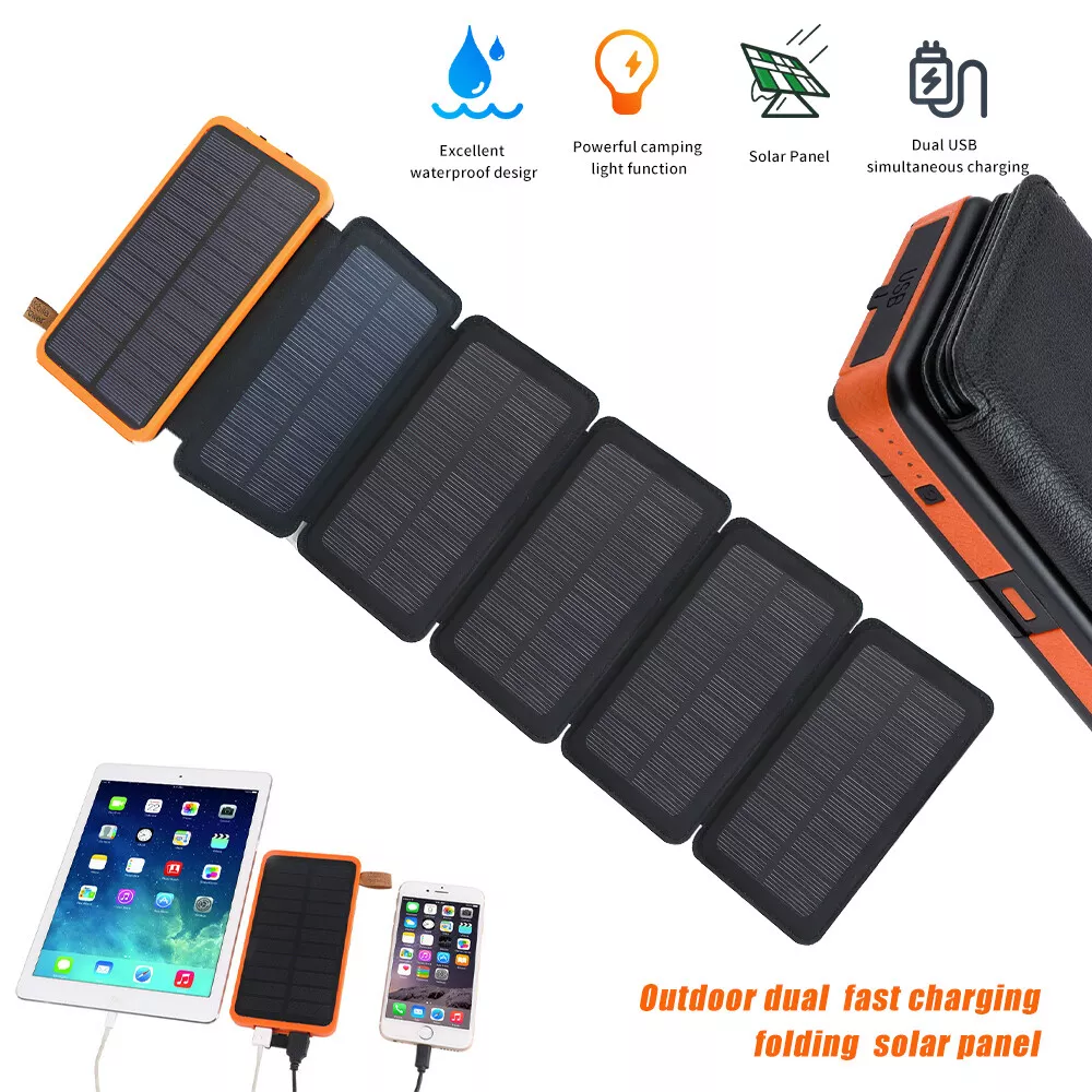 Portable Solar Pow er Bank Mobile Phone Charger Panel Waterproof Outdoor Camping Feat ure : 【46800mAh Solar Powerbank 】 4 68 00mAh high capacity external battery provides excellent battery backup for your device, charging Galaxy S8 5 times and other Android devices several times. Suitable for travel, hiking, camping, business trips, etc. 【1+5 in 1 Portable Solar Powerbank】 The solar powerbank with 5 unique foldable solar modules combined to ensure the fastest charging than other single solar powerbank. The one-button design makes it easy to carry these foldable solar panels in multiple situations. It is great for use as. emergency outdoor power supply. (Also supports charging via wall outlet). 【Two USB Outputs + One Micro USB Input】. With the built-in exclusive SmartIC technology chip, our solar charger with two USB outputs (2.1A and 1A) + One Micro USB input 2.1A ,it detects your device to ensure the fastest possible charging speed Through stable charging ( up to 3.1 A total ). It is not possible to charge batteries with ≤ 0.08A. 【Outdoor Powerbank】 There are three LED flashlight functions. Press the on / off button for 3 seconds, work as a flashlight, press the button again, flash as SOS signal light, press the button again, fast flashing strobe light follows SOS light. Designed for camping, hiking, fishing and other outdoor activities. 【What you get】 Delivery contents: 1 * solar power bank, 1 * USB charging cable, 1 * user manual. Specifica tion : Battery capacity: 468 00mAh/20000mAh Battery type: lithium polymer battery. Extended size: 360 * 23mm Folded size: 190 * 114 * 40mm Gross weight: 0.66kg Color: Black Interfaces: Micro USB input: 5V / 2.1A USB output 1: 5V / 2.0A USB output 2: 5V / 2,1A Inclu ded : 1 x 46800mAh/20000mAh solar charger. 1 x USB charging cable 1 x user manual 202 3 Super 20000mAh M ini USB Portable Charger Solar Power Bank For Cell Phone Feat ures : - Portable Power Bank: It comes with iPhone/micro/Type-C charging cables to fit all commonly used devices, a necessity for travel. - Fast Charging: The 2.1A fast charging provides 50% faster charging than before and the smart chips reduce energy consumption and increase power conversion rates. The Li-polymer battery provides a large power capacity and robust cycle life. - 4 in 1 Output Ports: It has one data cable, one mini-cable type C data cable, one iPhone date cable and one USB output port, suitable for all types of mobile phones. - Ultra-thin: This power bank is 10mm thin, portable to carry and store. - Safe and Reliable: Built-in Li-polymer battery, this solar power bank is twice as safe as Li-ion battery chargers. Specific ations : Capacity: 20000mah Input: 5V/2A (max) Output: 5V/2.1A Battery: Lithium Polymer Charging Time: 8-10h Weight: 260 g Pack age : 1x USB Power Bank 1x USB Charger Cable 1x Packing Box