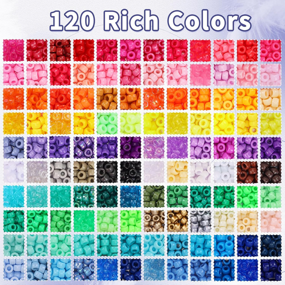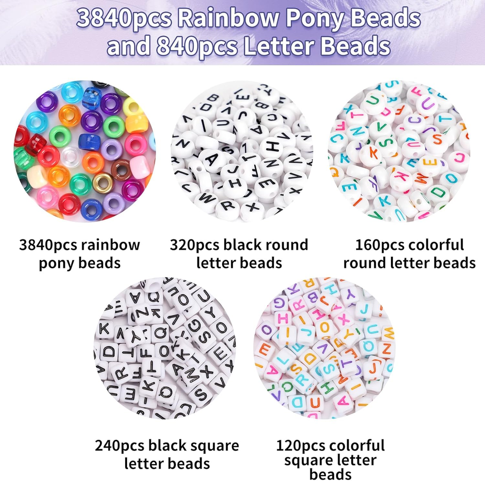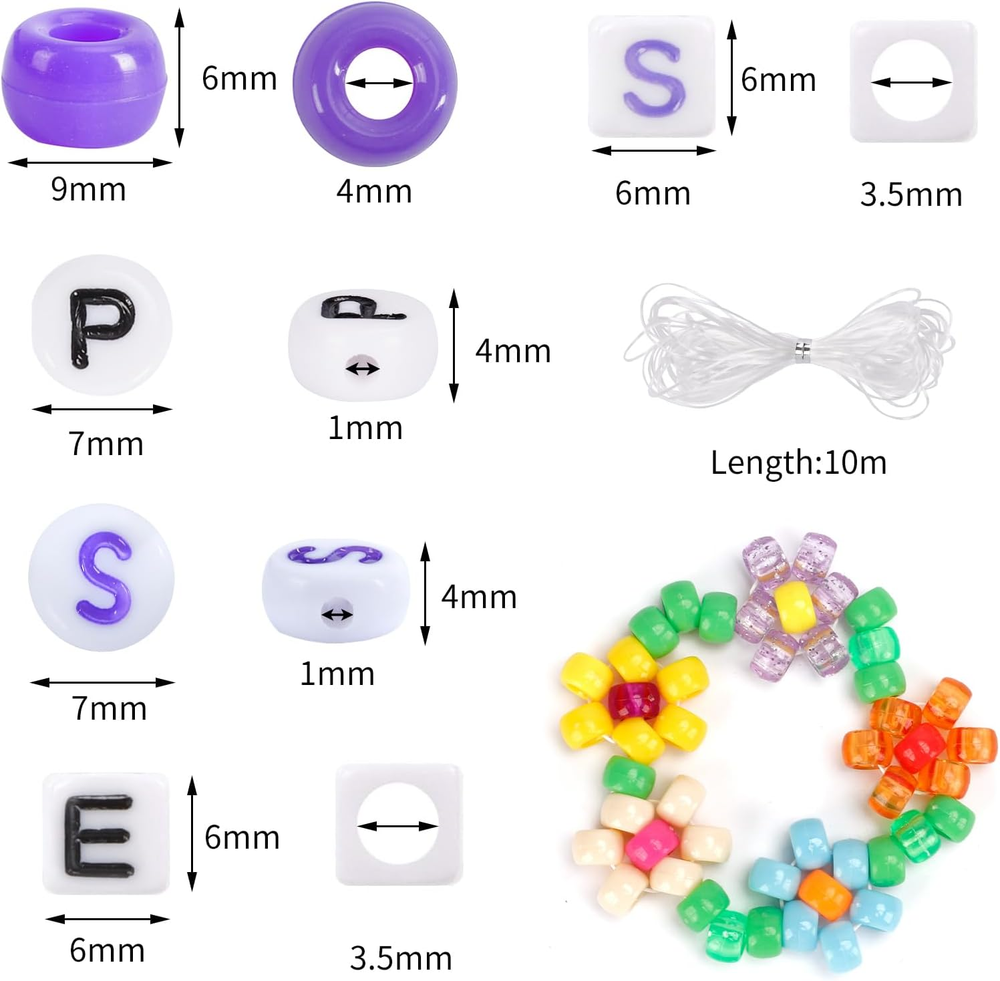 RICH COLORS: This set has a total of 120 colors pony beads. For the same pay you can get more colors. Each color is completely different, which can create more possibilities. DIVERSE STYLE: Beads have 5 styles for you to choose from: solid color, pearl color, transparent color, flash color, AB dazzling. We also provide you with 32 sets of letter beads in two styles (flat round and square), which can be made very suitable for jewelry and handicrafts. APPROPRIATE SIZE: The size of the pony beads is 6x9mm, and the hole diameter is 4mm. This size of the beads is relatively large, which is a good choice for beginners. Premium Quality: These pony beads are made from premium quality acrylic. The surface is smooth, shiny, strong and sturdy, and not easy to fade. VERSATILE: Rainbow bead sets can be used not only to make beautiful necklaces and bracelets, but also cute cartoons or animal images. Use them with letter beads to make distinctive and meaningful friendship bracelets and souvenirs. Product Description QUEFE is founded by a group of young entrepreneurs, and everyone has a strong and eager heart to make progress. QUEFE is committed to providing customers with various beads with good quality. Maybe you want to have a unique jewelry, or maybe you want to show your creativity, then make your unique beaded works with your own hands. Choose QUEFE to add a wonderful part to your life. Kit contains everything you need: 3840pcs 120 colors pony beads 320 flat round black letter beads 160 flat round colorful letter beads 240 square black letter beads 120 square colorful letter beads 2 rolls of white elastic string Kit contains 120colors pony beads, 480pcs round letter beads, 360pcs square letter beads, 2 elastic strings. The size of the rainbow craft beads is 6*9mm, and the hole diameter is 4mm, which are especially good for the elastic string in the kit. This vibrant kandi beads kit is a great choice for you to make necklaces, bracelets, braids, and cute cartoon or animal figures.