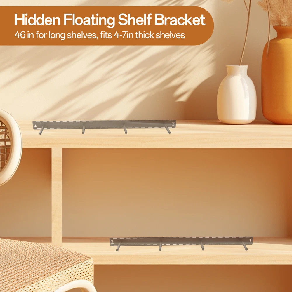 Store category Sign Up Now ! You may also like Product Description Bullet Points: Safe Material: Constructed with excellent quality steel, these floating shelf brackets offer a stylish and robust storage option that enhances your living space's aesthetic appeal. Unmatched Resilience: By utilizing excellent craftsmanship and welding precision, our set of 2 floating shelf brackets offer stronger and more long-lasting floating shelves in key areas compared to conventional options. Wide Application: Seamlessly blend functionality with styles in the living room by using these brackets to mount shelves that serve as chic storage for books, decorations, and more. Excellent Gift: Enhance any space with our set of 2 floating shelf brackets: an ideal surprise for women and men on special holidays like Thanksgiving, Christmas, or birthdays. Easy Mounting: Create a beautiful ambiance with our set of 2 floating shelf brackets. The installation is cost-effective with clamps and hassle-free, outperforming standalone products in strength. Our steel floating shelf bracket is crafted with selected material and excellent craftsmanship, making it sturdy and durable. Ideal for women to install shelves in the kitchen, it's easy to install and adds a touch of elegance to any room. Properties: color: black Material: steel Product dimensions: 46 x 6 x 3 inches Installation type: Wall-mounted installation Product List: 2pcs*bracket (include accessories: Drill dies, router bits, auger bits, wiring jigs, screws) Payment Delivery details Terms of sales About us Feedback & DSRs Payment Before you palce an order, please kindly make sure that you have a paypal account. We accept PAYPAL payment only. Payment should be completed within 2 days after auction closed, or unpaid dispute will be filed for an closing auction. An unpaid case will be filled after 4 days. Delivery details We ship to your eBay address. Each package will be shipped to US by UPS Regular Parcel with tracking number. Please check your shipping address carefully before checkout, it can't be changed if order completed. All items will be shipped within 1-2 business day upon receipt of payment.Orders placed on weekend will be shipped within 3 days. If you do not receive your item in 7-10 business days.please contact us immediately for further assistance. We will be responsible for any damages or losses incurred in the shipping process. About us We maintain high standards of excellence FIVE STAR and strive for 100% customer satisfaction! Positive Feedback is very important to us. We hope that you contact us immediately Before you give us neutral or negative feedback, so that we can satisfactorily address your concerns. We promise to offer the lowest price and high quality produce. Our working time: From Monday to Friday(9:30 am to 18:00pm), we don't working on holidays ,hope you can understand and know that , thank you. Please always talk to us via ebay Message. We appreciate your business and look forward to growing our e-Bay sales with satisfied customers. Feedback Contact us If you have any questions, please feel free to contact with us by ebay Message during our business hours ( 9:30a.m. to 5:30 p.m.), or email us through eBay, we will try our best to help you to resolve it. For any presale or after-sale questions,please do feel free to email us! Due to the time difference, each email will be replied within 1 working day,and weekend will be delayed a bit. Feedback