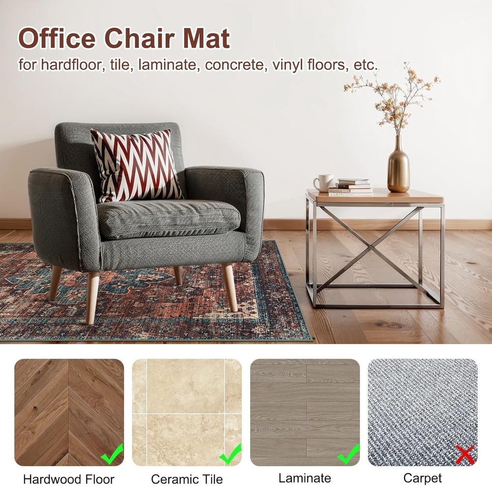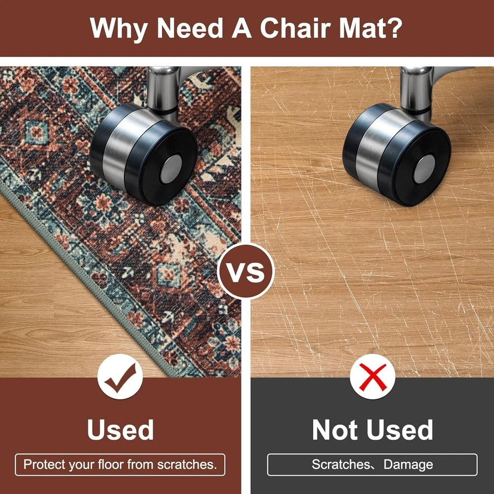 This chair mat is a game-changer for my home office! The large size gives me plenty of room to move, and the stylish design actually makes my workspace look better while protecting my floors. It's sturdy yet comfortable underfoot, and my chair glides smoothly without catching. The perfect mix of function and fashion!