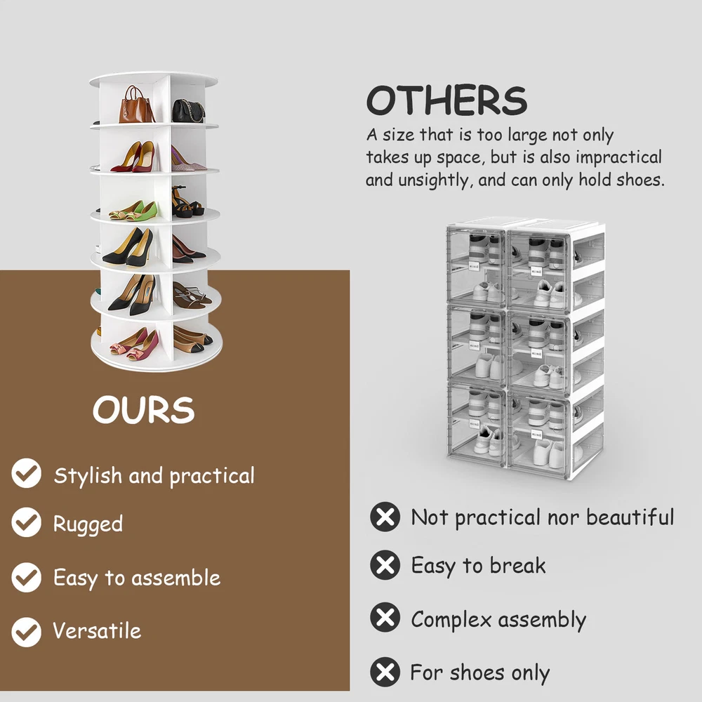 4-7 Tier 360° Rotating Shoe Rack Tower with Book Storage