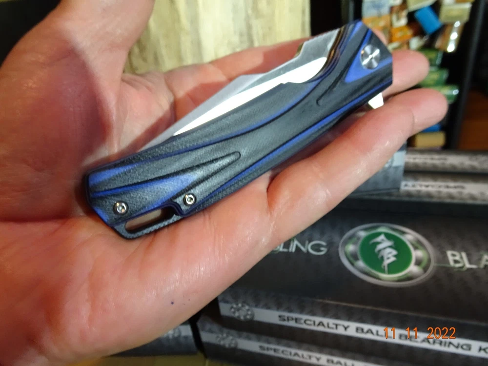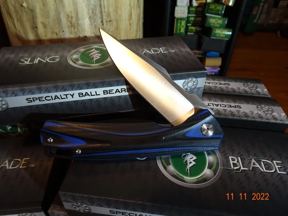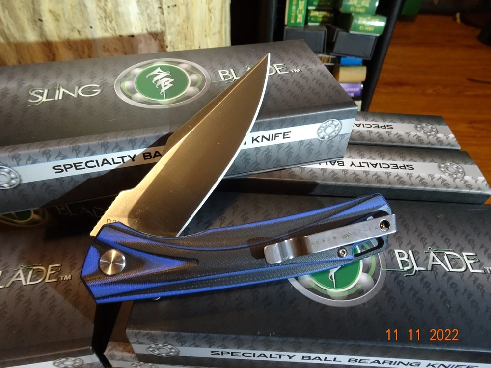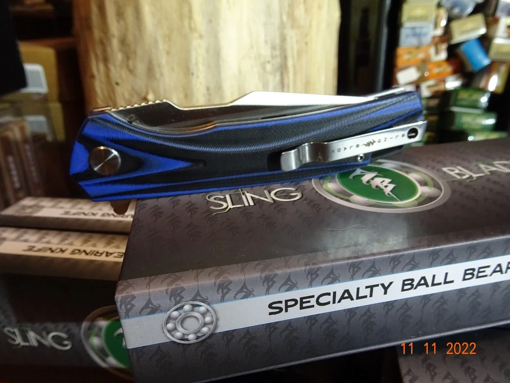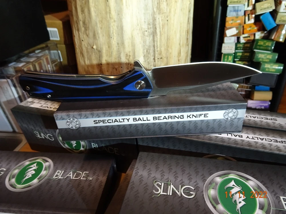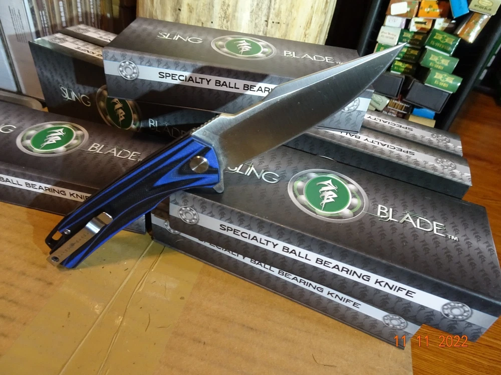 WE JUST ADDED 1 MORE BRAND NEW **SLING BLADE** TO OUR INVENTORY, MODEL# SBL-49BL/G10. These are super strong G-10 is one of if not the strongest man-made materials, so the handle is basically unbreakable, the colors are Black and Blue The Blade is also way up there D2 TOOL STEEL again rated in the top alloys for cutlery. Our very best brands of knives have D2 Blades. This blade is Spear Point 4" long 1" wide & 1/8" thick and has an inch of tooling on the spine for safety, power cutting, precision cutting, and is assisted opening with a flipper, plus has a pocket clip, and has a frame lock (safety) the frame is stainless steel along with all of the other parts. The blade has no movement this entire knife is nice and tight. Built with the precision of CNC technology so you will never need to worry about defects or workmanship. It also features an 18 Ball-Bearing Pivot System for smooth fast blade deployment, Rockwell 58 61 hardness. We just saw this knife with a D2 blade selling for 149.95 from a wholesaler on 4/3/24, any thoughts. We have been selling the Sling Blade series for 3-4 years now, I need to update all of my listing for these knives. The Sling Blade series is fast becoming the preferred pocket knife for Hunting, Fishing, Camping, and everyday use what we call a Do-All knife. Frost was the 1st to make this knife now over 50 different manuf. are making all of the same styles and depending on who's name is on the knife, well you should honestly have a look over $300.00 for this knife I can not list all of the manuf. but I can tell you Frost has the best price on the exact same knife. One of the worst things listing on eBay is when we sell out of an item and need to relist it we lose its sales history. Nearly every Sling Blade this has now happened to, this is the 3rd time we had to relist this knife, we sold 4, then 8 and now just listed 8 more yet sales show 0. It also comes with a blade tightener or loosen using a star wrench. It comes in a display case fully liner for safe keeping. Lastly there's an extended tang so you can tie it down. To help you get one we will give you $$$$$$$$$$$$$$$$$$$ FREE SHIPPING $$$$$$$$$$$$$$$$$$$$$ WE THANK YOU AND GOD BLESS YOU,- STAY SAFE. by adding my eBay Store to your Favorites, . - Sign up and receive our emails, why SALES that is the only email we will ever send to you. We are always trying to get different knives into your hands, so by saving you some money maybe you will try out a new brand. Plus every listing we have is put on sale from the highest to the lowest priced items, and lastly many times we put knives that there are only 1 or 2 left in our stock by receiving our email you will get first shot at these items, Thank you Greg