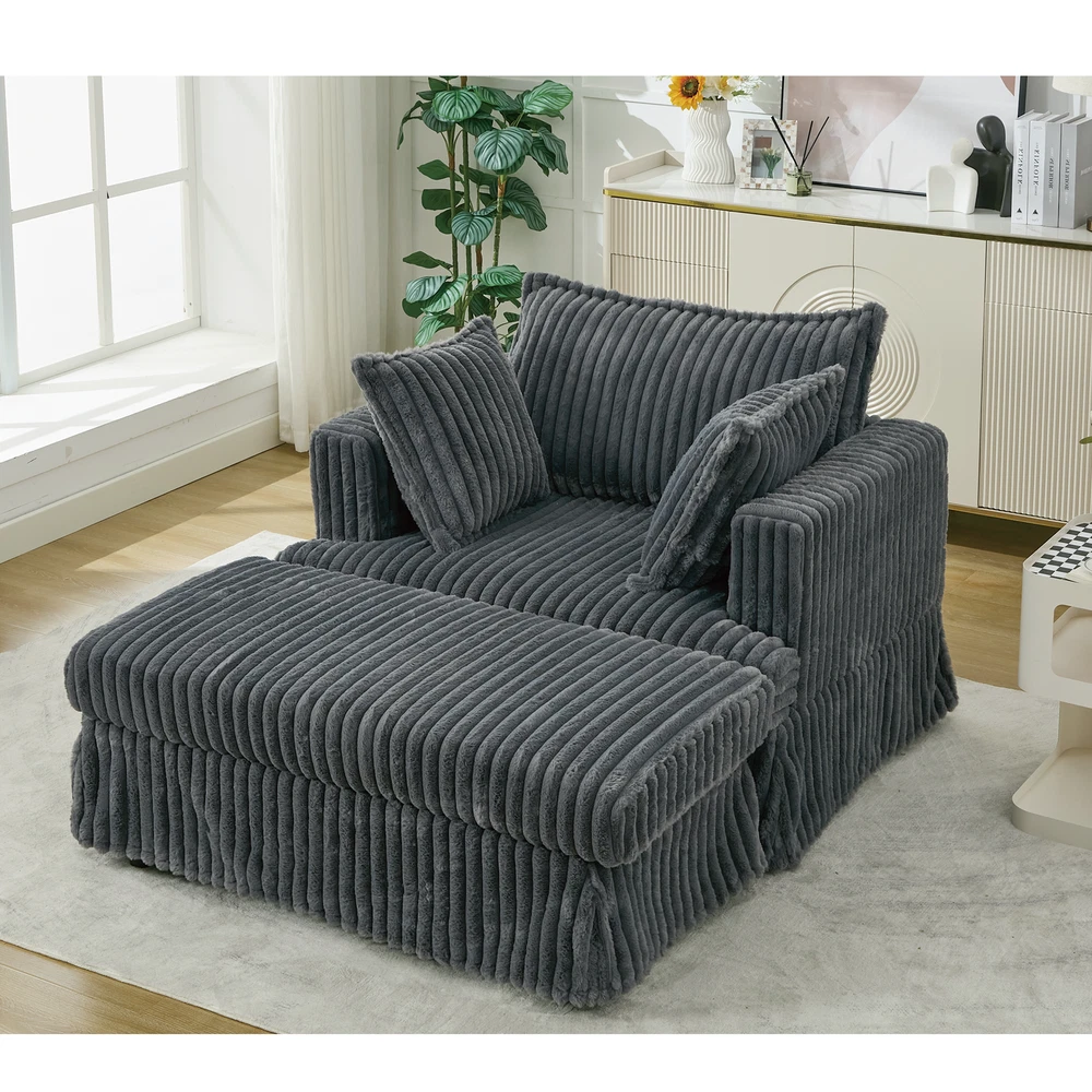 This chaise longue is a dream for small spaces! The deep corduroy seat is incredibly cozy, and the included pillows and ottoman add extra comfort. The minimalist design looks sleek while providing plenty of room to stretch out. Perfect for lounging, reading, or napping—so stylish and functional!