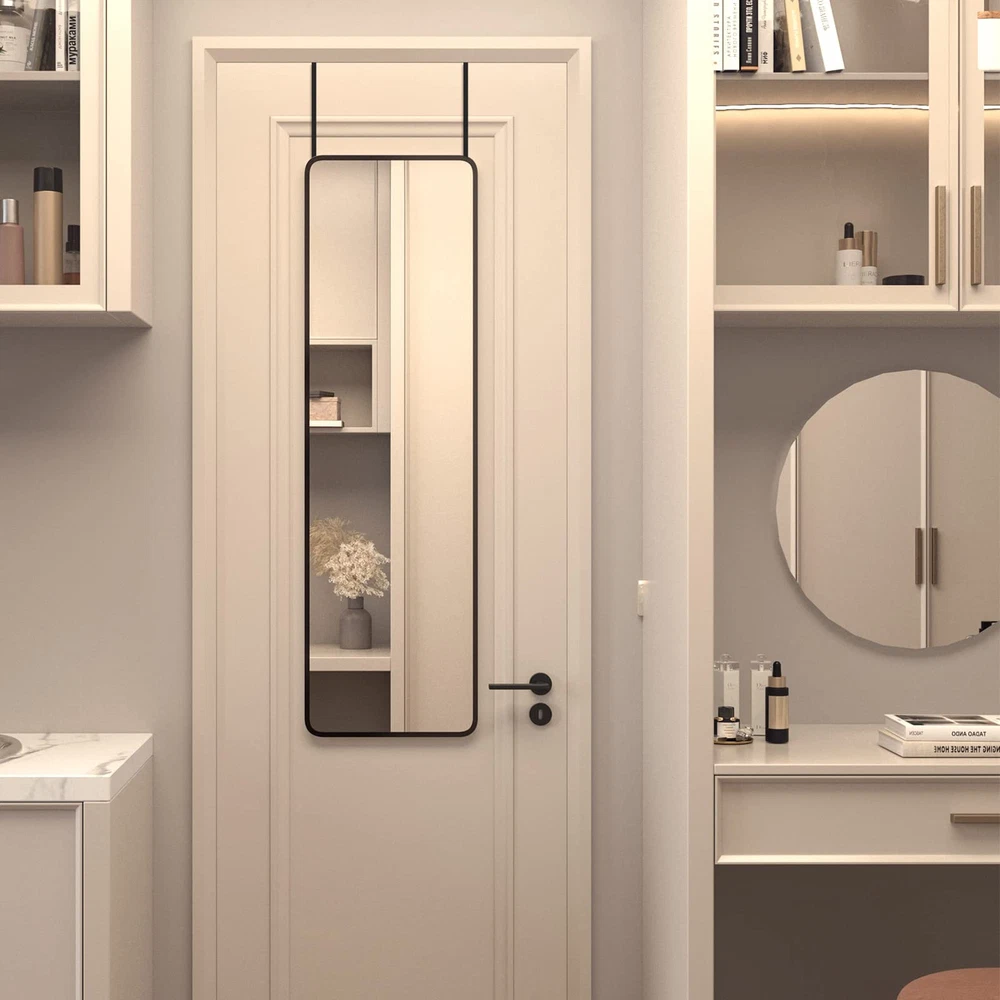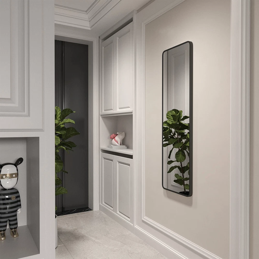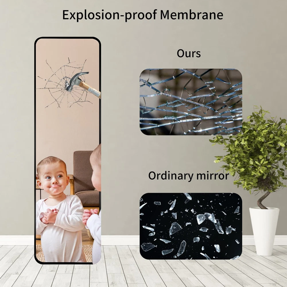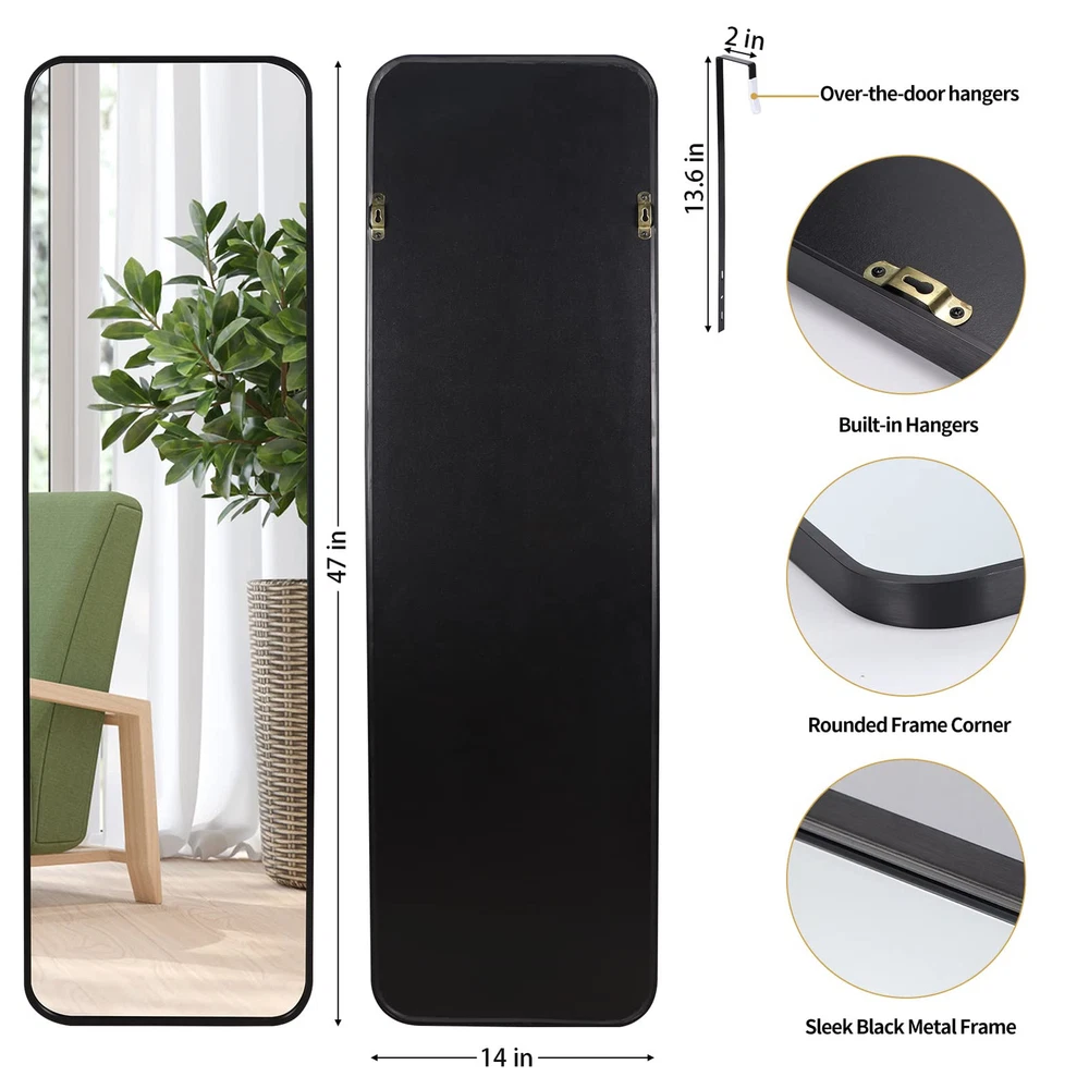 Chic Black Mirror: The sleek aluminum frame and glossy black finish make for an elegant and minimal mirror piece. The real glass has great clarity without distortion. Sturdy Mirror: The back plate and mounting brackets are upgraded to be more stronger than old version! The explosion-proof membrane prevent the glass from bursting and flying off. This mirror was surrounded in styrofoam package. Full Body View: The overall size is 14x47 inches. Once you set it up, this full length mirror stands 47 inches tall, it will obviously reflect the entire body and should work for people of most heights. Hanging this full-length-mirror on the wall or over door in a compact smaller space to save floor space. Easy to Install: Come with necessary hardware of wall anchors and screws for wall mounting, 2 additional over-the-door hangers for door hanging. The assembly will be a breeze for you with an installation instruction. Nice Room Decor: You can install this beautiful full body mirror on the bedroom, foyer, hallyway, closet, bathroom, living room. Adding an elegant touch to your department and house room decor!