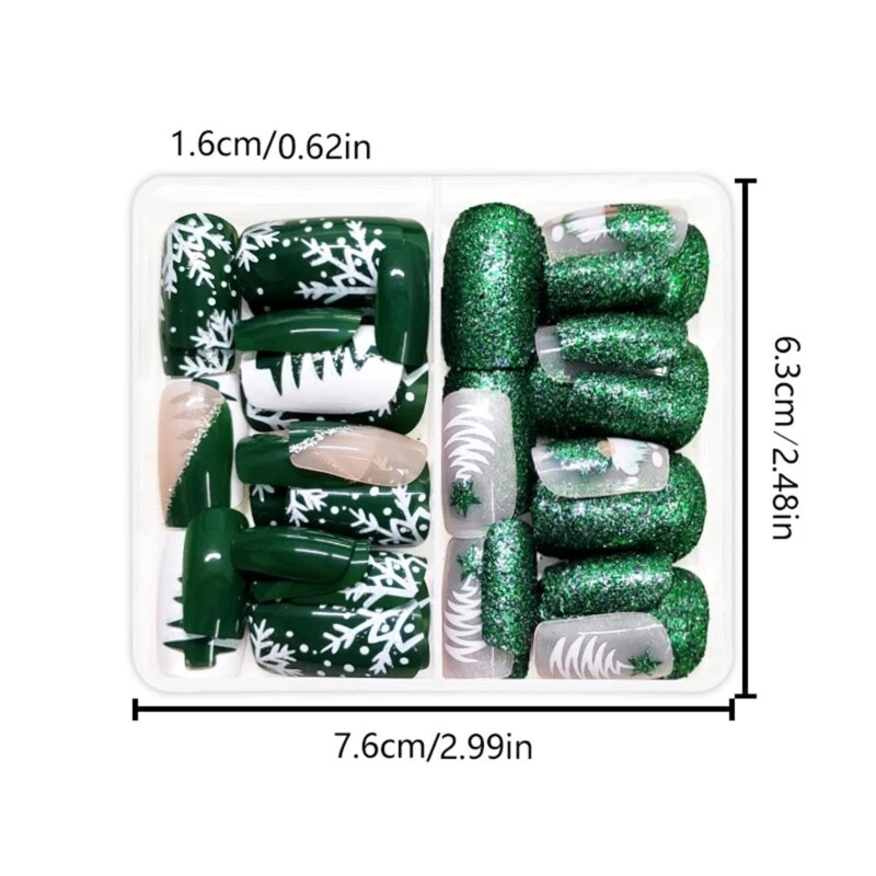 Features: Christmas press on nails are suitable for enthusiasts, beauty salons, and anyone who loves to experiment with their look. Short Short Square false nails with snowflake designs is beautiful, which will add elegant feeling to your Green full cover on nails is suitable for enthusiasts who want professional results. These false nails are suitable for everyday wear. Funny to decorate nails with your family and friend when family gathering and party, enjoy your special look and the good for time. Gglittering false nails is suitable for various occasions like parties, weddings, and daily life, these false nails will add a touch of confidence and charm to your overall look. Specifications: Component: ABS Package Includes: 48 Pcs/Set False Nails note: Please allow 1-3cm errors due to manual measurement. Due to the difference betweeen different monitors,the picture may not reflect the actual color of the item.